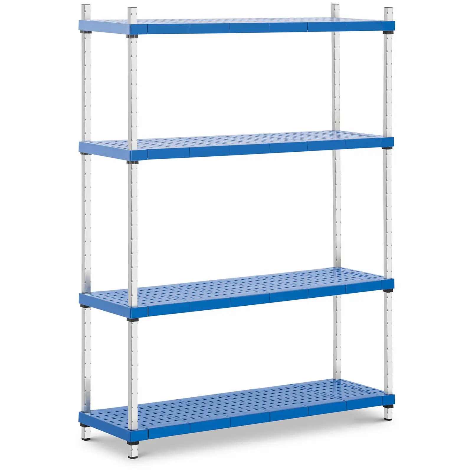 Ammatti- ja yksityiskäyttöön suunnitellun varastohyllyn RC-SR4L1190 valmistaja on ammattimaisiin ravintolalaitteisiin erikoistunut yritys Royal Catering. Tässä erittäin kestävässä teräshyllyssä on ruhtinaallisesti säilytystilaa. Tilavan teräshyllyn neljälle, mitoiltaan 121 x 37 cm:n tuuletusreiälliselle säilytystasolle mahtuu paljon tavaraa. Tämä varastohylly sopii hotelleihin, korjaamoihin, ravintoloihin, myymälöihin tai yhtä lailla kotikäyttöön autotallissa, keittiössä tai kellarissa. Jokaisen säilytystason kantavuus on 40 kg, joten koko hylly kestää enintään 160 kg:n kuormituksen. Hyllyn avoimen rakenteen ansiosta pääset tavaroihin käsiksi sen kaikilta puolilta. Säilytyshyllyn kokoaminen sujuu käden käänteessä ilman työkaluja, sillä sinun tarvitsee vain ripustaa yksittäiset hyllyt paikalleen ja antaa niiden loksahtaa kiinni. Teräspäätyjensä ja PP-muovisten liitososiensa ansiosta hylly on kuitenkin vähintään yhtä tukeva kuin ruuvein koottavat mallit. Hyllyn materiaalit tekevät siitä ihanteellisen sekä kuivaan että kosteaan ympäristöön. Materiaali ei ole herkkä korroosiolle eikä sille helposti kerry pinttynyttä likaa. Ruostumattoman teräksen sileä pinta on helppo puhdistaa, sillä varastohyllyn rakenne on avoin.