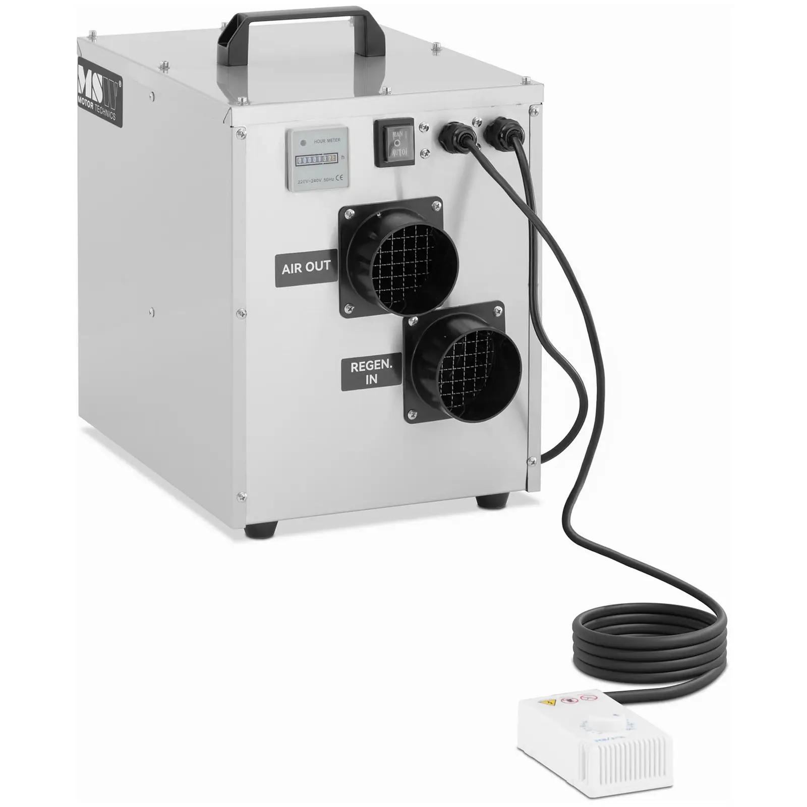 Monet perinteiset ilmankuivaimet pienentävät ilmankosteuden vain n. 50 %:iin saakka. Jos tätä alhaisemmat kosteuslukemat ovat kuitenkin sinulle tärkeitä, ota käyttöön adsorptiokuivain, joka pienentää ilmankosteutta huomattavasti tehokkaammin. Näin ehkäiset korroosiota tuotantoprosessien aikana tai estät kondenssivettä vahingoittamasta tuotteitasi. Laitteen hiljaisen toiminnan ansiosta voit käyttää sitä myös sisätiloissa, esimerkiksi vesivahingon korjaustöihin ilman, että sen ääni muodostuu häiritseväksi tekijäksi. Absorptiokuivain on helppokäyttöinen, kätevä ja ennen kaikkea tehokas! Käytännöllisen kahvan ansiosta voit helposti kuljettaa tämän kompaktin laitteen juuri sinne, missä haluat vähentää ilmankosteutta merkittävästi. Jatkuvassa käytössä kuivain poistaa ilmasta jopa 21 l kosteutta päivässä. Laitteen sisällä on pyörivä, ilmankosteutta imevä pyörä. Absorptiokuivain tekee vaikutuksen tehokkaalla ilmavirrallaan 100 m³/h. Sen vahva suorituskyky tarkoittaa, että voit käyttää sitä ihanteellisesti työpajoissa ja varastotiloissa, joiden pinta-ala on enintään 20 – 30 m². Lämpötila-alueen -10 – 50 °C ansiosta voit käyttää absorptiokuivainta luotettavasti jopa matalissa, noin 0 °C:n lämpötiloissa. Kun valitset manuaalisen käytön, ilmankuivain toimii keskeytyksettä, kunnes sammutat sen. Automaattitilassa laite sammuu heti kun se on saavuttanut asettamasi ilmankosteuden raja-arvon. Käytön aikana huoneen lämpötila nousee jopa 10 °C, mikä helpottaa kuivausta. Näin sinulla on aina käytössäsi joustava ratkaisu tilaan kuin tilaan.
