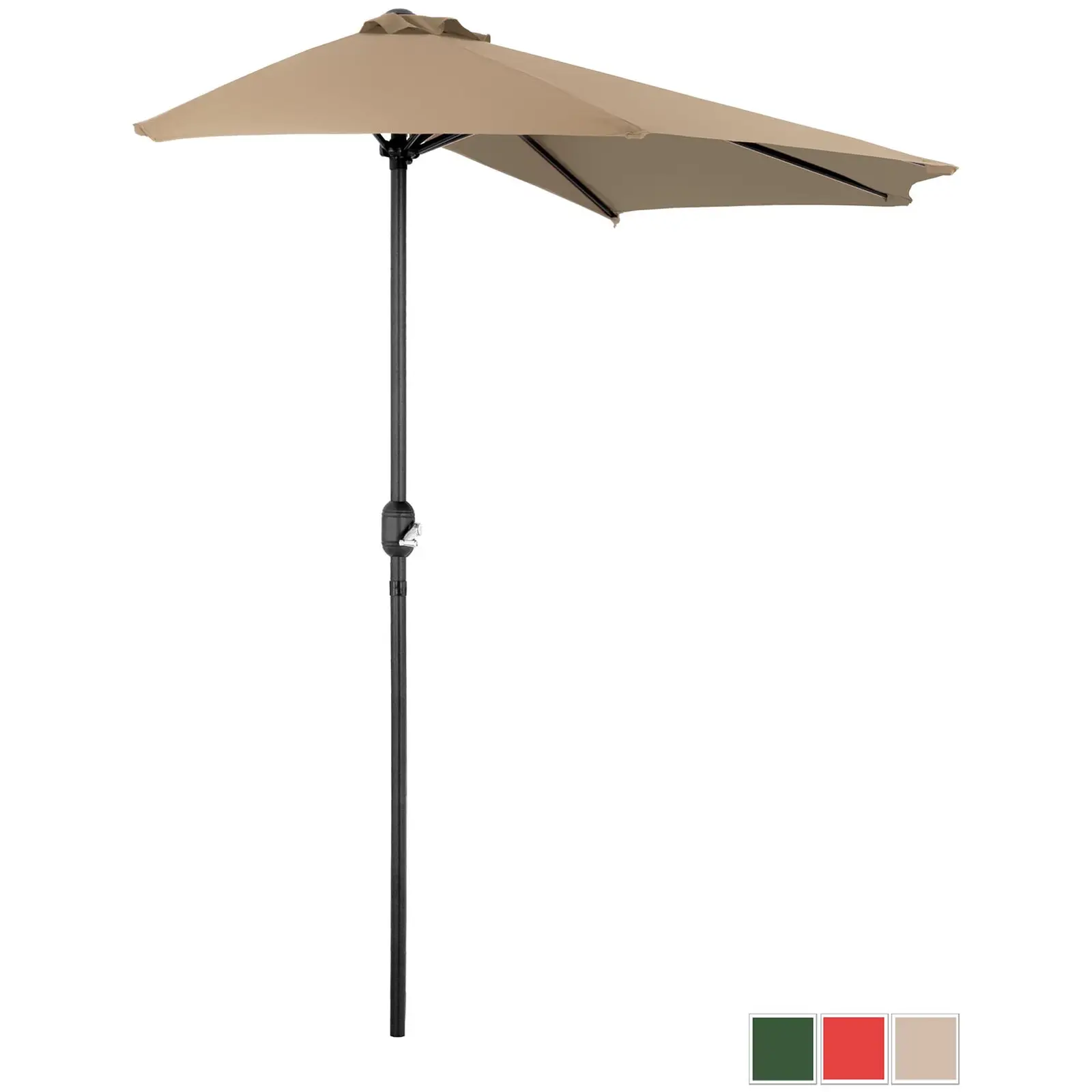 Etsitkö puolikasta aurinkovarjoa? Uniprodon viisikulmainen, jänneväliltään 270 x 135 cm oleva aurinkovarjo luo reilun, auringolta ja kuumuudelta luotettavasti suojaavan varjon. Varjon UV-suojakerroin on UPF 50+, joten se suojaa jopa 98 prosenttisesti kaikelta UV-säteilyltä. Täten voit nauttia vieraidesi kanssa ruuasta ja juomasta turvallisesti ja huoletta. Vankalla, tiheydeltään 180 g/m² olevalla polyesterikankaallaan puolikas varjo luo varjoisen paikan sinulle ja vieraillesi monen kesän ajan. Materiaalilla on suuri veto- ja repäisylujuus, se on pitkäikäinen, UV-kestävä ja erittäin helppo puhdistaa. Integroidulla käsikammella voit avata ja sulkea aurinkovarjon nopeasti ja vaivattomasti. Rakenne ja materiaali tekevät vaikutuksen erityisellä kestävyydellään ja vakaudellaan – myös epäsuotuisissa olosuhteissa. Halkaisijaltaan 38 mm oleva aurinkovarjon tanko on korroosionkestävää alumiinia ja 5 ruodetta terästä, joten ne kestävät erityisen hyvin mekaanisia vaikutteita. Tuulensuojausjärjestelmä takaa paremman ilmankierron lisäksi myös vakauden tuulisella säällä. Lisää vankkuutta sekä joustavuutta varjon pystytykseen antavat sopivat aurinkovarjon jalat, jotka löydät expondon valikoimasta.