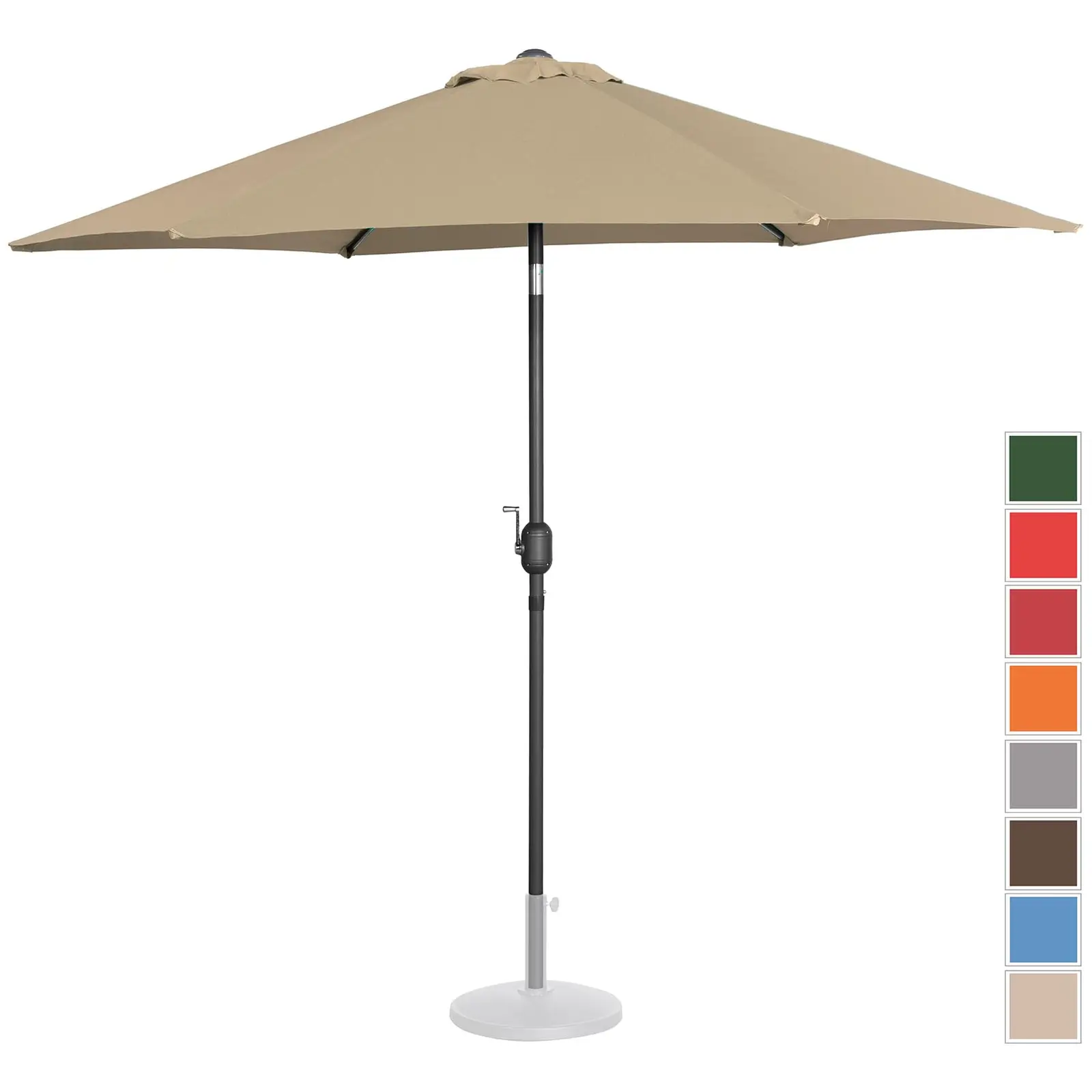 Suuri aurinkovarjo tarjoaa varjoisan paikan rentoutua kesällä terasseilla tai puutarhassa. Uniprodon ammattilaitevalikoimasta löytyvät puutarhalaitteisiin lukeutuvat aurinkovarjot terassille, puutarhaan tai parvekkeelle vakuuttavat laadukkaalla, modernilla suunnittelullaan ja erityisellä pitkäikäisyydellään. Etsitkö suurta aurinkovarjoa? Kuusikulmainen, halkaisijaltaan 270 cm oleva ruskeanharmaa aurinkovarjo luo reilun, auringolta ja kuumuudelta luotettavasti suojaavan varjon. Ajattoman muotoilunsa ansiosta tämä tilava aurinkovarjo on myös houkutteleva katseenvangitsija. Laadukkaat materiaalit ja huolellinen valmistustapa korostavat hienovaraisesti sen vakuuttavaa ulkonäköä! Voit mukauttaa aurinkovarjon nopeasti ja yksilöllisesti mihin tahansa säätilanteeseen vain muutamalla yksinkertaisella toimenpiteellä. Auringon asennosta riippuen voit kallistaa varjoa ja luoda suojaisan paikan tarpeen mukaan. Varjon avaaminen ja sulkeminen käy aivan yhtä helposti käsikammella. Vankalla, tiheydeltään 180 g/m² olevalla polyesterikankaallaan varjo luo varjoisen paikan sinulle ja vieraillesi monen kesän ajan. Materiaalilla on suuri veto- ja repäisylujuus, se on pitkäikäinen ja erittäin helppo puhdistaa. Halkaisijaltaan 38 mm oleva aurinkovarjon tanko on valmistettu kevyestä ja murtumattomasta alumiinista ja ruoteet ovat terästä, joten osat kestävät erityisen hyvin mekaanisia vaikutteita. Tuulensuojausjärjestelmä takaa paremman ilmankierron lisäksi myös vakauden tuulisella säällä. Voit käyttää aurinkovarjoa vapaasti seisovana tai pöytävarjona sen keskitetyn tukitangon ansiosta. Valitse alustaksi aina kiinteä tasainen pinta. Lisää vankkuutta sekä joustavuutta varjon pystytykseen antavat sopivat aurinkovarjon jalat, jotka löydät expondon valikoimasta.