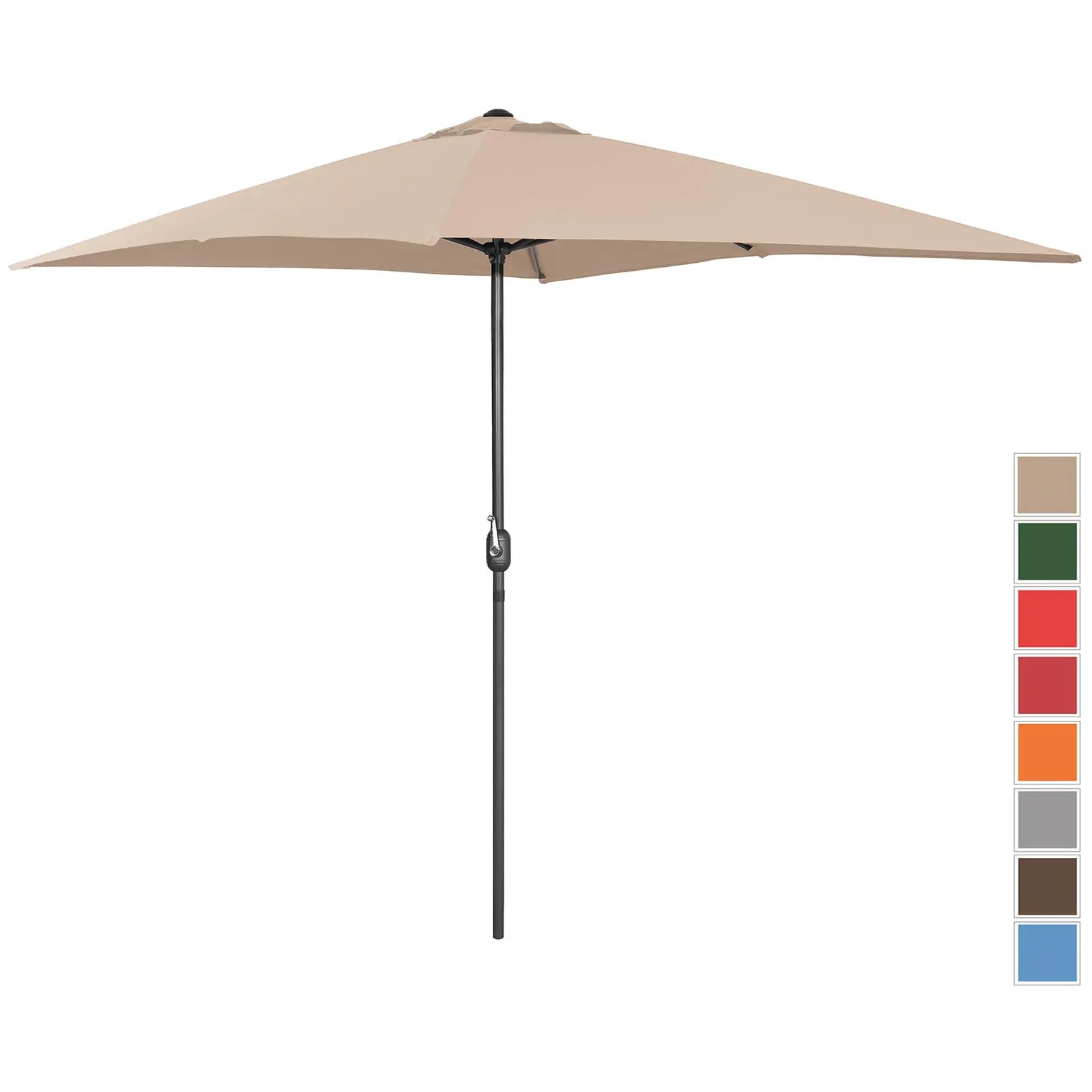 Suuri aurinkovarjo suojaa sinua kuumuudelta ja UV-säteilyltä rentoutuessasi kesällä terassilla tai puutarhassa. Uniprodon ammattilaitevalikoimasta löytyvät puutarhalaitteisiin lukeutuvat aurinkovarjot terassille, puutarhaan tai parvekkeelle vakuuttavat laadukkaalla, modernilla suunnittelullaan ja erityisellä pitkäikäisyydellään. Etsitkö suurta aurinkovarjoa? Suorakulmainen, jänneväliltään 200 x 300 cm oleva kermanvärinen aurinkovarjo luo reilun, auringolta ja kuumuudelta luotettavasti suojaavan varjon. Ajattoman muotoilunsa ansiosta tämä tilava aurinkovarjo on myös houkutteleva katseenvangitsija. Laadukkaat materiaalit ja huolellinen valmistustapa korostavat hienovaraisesti sen vakuuttavaa ulkonäköä! Aurinkovarjo tarjoaa viileän paikan lisäksi myös ennen kaikkea luotettavan suojan haitallisilta auringonsäteiltä. Varjon UV-suojakerroin on UPF 50+, joten se suojaa jopa 98 prosenttisesti kaikelta UV-säteilyltä. Täten voit nauttia vieraidesi kanssa ruuasta ja juomasta turvallisesti ja huoletta. Aurinkovarjo on pystytetty nopeasti ja yksilöllisesti vain muutamalla yksinkertaisella toimenpiteellä. Varjon avaaminen ja sulkeminen käy aivan yhtä helposti käsikammella. Vankalla, tiheydeltään 180 g/m² olevalla polyesterikankaallaan varjo luo varjoisen paikan sinulle ja vieraillesi monen kesän ajan. Materiaalilla on suuri veto- ja repäisylujuus, se on pitkäikäinen, UV-kestävä ja erittäin helppo puhdistaa. Halkaisijaltaan 38 mm oleva aurinkovarjon tanko on valmistettu kevyestä ja murtumattomasta alumiinista ja ruoteet ovat terästä. Tuulensuojausjärjestelmä takaa paremman ilmankierron lisäksi myös vakauden tuulisella säällä. Voit käyttää aurinkovarjoa vapaasti seisovana tai pöytävarjona sen keskitetyn tukitangon ansiosta. Valitse alustaksi aina kiinteä tasainen pinta. Lisää vankkuutta sekä joustavuutta varjon pystytykseen antavat sopivat aurinkovarjon jalat, jotka löydät expondon valikoimasta.