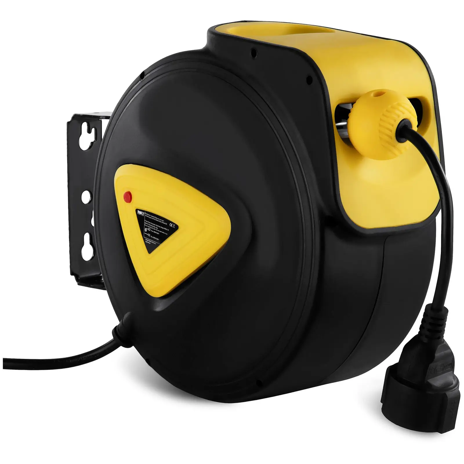 Jos lähin pistorasia ei olekaan lähellä, joudut vetämään pitkiä jatkojohtoja verstaan tai työpajan läpi. Tuloksena on kompastumisvaaran muodostava sekamelska johtoja. Tähän on käytännöllinen ratkaisu: automaattinen kaapelikela, jonka voit kiinnittää kattoon tai seinään. Käytä ilmatila optimaalisesti hyväksesi ja varusta sähköjohdot aina käden ulottuville. Kaapelikelassa on yksi sähköjohto pistorasiaa varten ja 15 m pitkä ulos vedettävä jatkojohto laitteitasi varten. Kaapelikelan voi kiinnittää pidikkeestään kattoon tai seinään paikan päällä vallitsevien olosuhteiden mukaisesti. Näin sinulla on käytettävissäsi joustava virtalähde, joka ei synnytä turhaa sotkua lattialle. Voit vetää kelalta juuri sen verran johtoa, kuin tarvitset. Jokaisella johtometrillä on yksi tai kaksi lukituspistettä, joiden avulla voit määrittää johdon pituuden. Koska kaapelikela kiinnitetään kattoon tai seinään, voit käyttää johtoa myös vastakkaisessa suunnassa lukitsemalla johdon tiettyyn pituuteen. Johtojen kelaaminen vaatii harjoittelua ja siitä huolimatta niillä on taipumus kiertyä. Tämä työ voisi olla niin yksinkertaista: Kun kelassa on jousikäyttöinen sisäänvetomekanismi, johto asettuu kelalle sananmukaisesti käden käänteessä. Automaattinen kaapelikela lisää työpisteesi siisteyttä ja turvallisuutta. Sinulla on aina käytettävissäsi joustava virranlähde ilman, että lattialla mutkittelevat jatkojohdot ovat tielläsi. Vaikka tarvitsisit tätä ylimääräistä virranlähdettä vain ajoittain, sen johto on turvallisesti kelalla odottamassa seuraavaa käyttökertaa. Tätä automaattista kaapelikelaa ei ole tarkoitettu ammattikäyttöön.