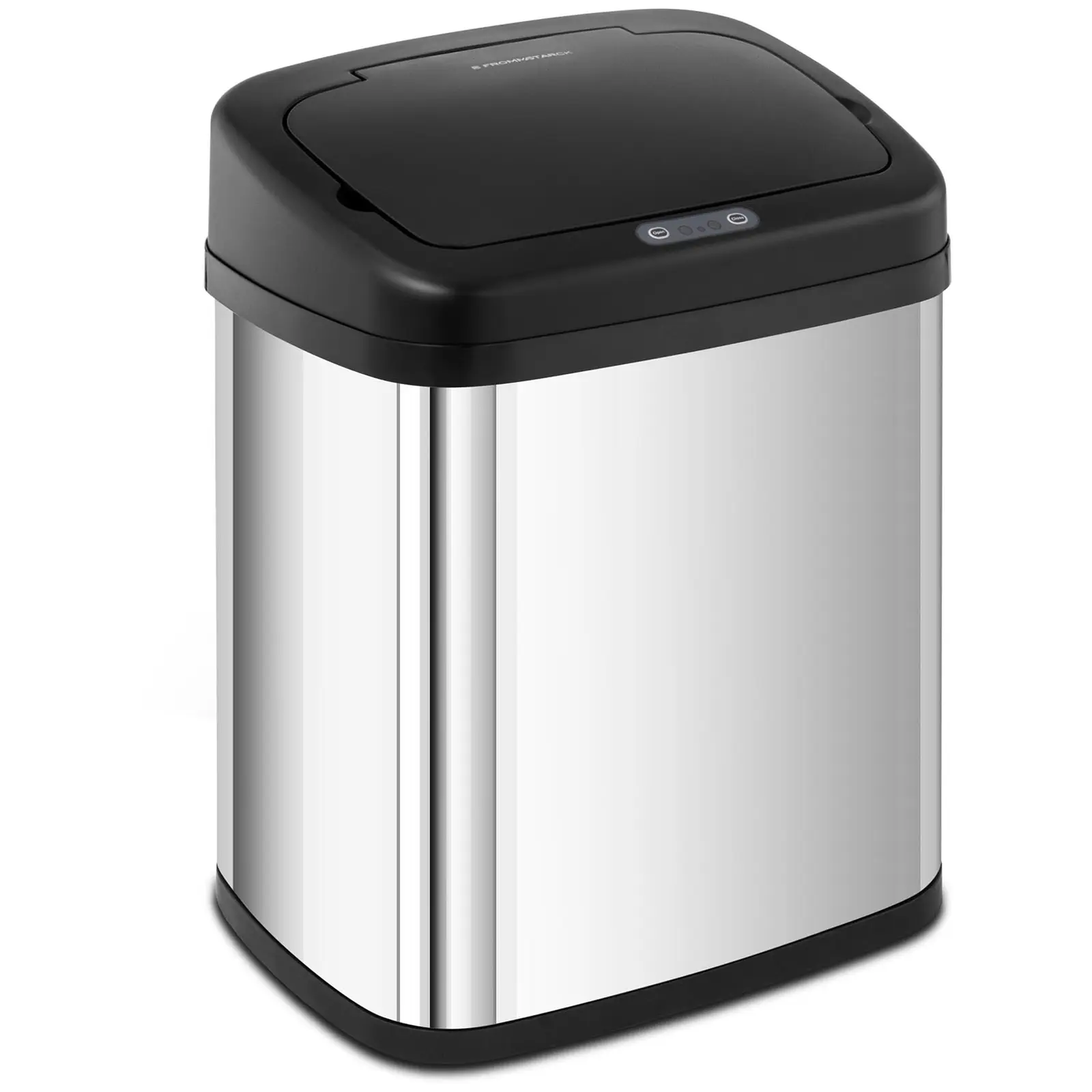 Roskasäiliön tulisi olla ennen kaikkea hygieeninen. Siksi automaattinen roska-astia STAR_ BIN_43 avautuu heti, kun lähestyt sitä ja sulkeutuu myös automaattisesti. Sinun ei tarvitse koskea mihinkään avataksesi kannen. Kätevää ja puhdasta samanaikaisesti. Roskien kerääminen voi olla näin helppoa! Roska-astian kansi pysyy tiiviisti kiinni sulkien hajut sisälleen, kunnes poisheitettävä roska on noin 15 cm etäisyydellä siitä. Silloin etäisyystunnistin avaa kannen automaattisesti. Sinun ei tarvitse muuta kuin heittää roskat astiaan. Kun tunnistin ei enää havaitse roskia, automatiikka odottaa viisi sekuntia ja sulkee kannen uudelleen. Oleskelun pituus näytetään ja lasketaan LED-diodilla. Etäisyystunnistimeen perustuvalla automatiikalla on paljon etuja. Roska-astian kansi on auki vain silloin, kun haluat heittää siihen jotain, loppuajan se pysyy kiinni. Tästä on suurta hyötyä varsinkin, jos astiassa on pilaantuvia elintarvikkeita. Sinun ei tarvitse koskea kantta, joka on tavallisissa roska-astioissa huomattavan likainen. Tämä on tärkeää oman terveytesi kannalta. Ja tietysti on kätevää, kun kansi avautuu automaattisesti. 20 l:n koteloon voidaan kiinnittää suuri kiinnitysrungollinen jätepussi. Roska-astia voidaan avata ja sulkea pidempään napin painalluksella, jotta voit ottaa ämpärin sangasta kiinni. Kestävä korkealaatuisesta ruostumattomasta teräksestä valmistettu kotelo on erityisen helppo puhdistaa sileiden pintojensa ansiosta. Tunnistimen voi kytkeä päälle ja pois päältä suojatussa paikassa olevasta katkaisimesta. Kannen automatiikan käyttövoima tulee neljältä AA-paristolta (eivät kuulu toimitukseen), joten et tarvitse ulkoista virranlähdettä. Tarvittaessa ämpärin kansi voidaan avata myös manuaalisesti. Huomio: tunnistin ei reagoi vain liikkeeseen, vaan myös toisen kohteen etäisyyteen. Tämän vuoksi et voi sijoittaa sitä suljettuun tilaan, kuten pesualtaan alle, koska kansi pysyy silloin auki.