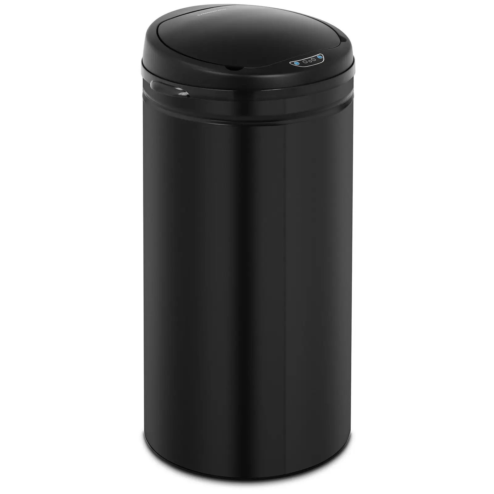 Roskasäiliön tulisi olla ennen kaikkea hygieeninen. Siksi automaattinen roska-astia STAR_ BIN_25 avautuu heti, kun lähestyt sitä ja sulkeutuu myös automaattisesti. Sinun ei tarvitse koskea mihinkään avataksesi kannen. Kätevää ja puhdasta samanaikaisesti. Roskien kerääminen voi olla näin helppoa! Roska-astian kansi pysyy tiiviisti kiinni sulkien hajut sisälleen, kunnes olet noin 30 cm:n etäisyydellä. Silloin liiketunnistin havaitsee lähestymisesi ja avaa kannen. Sinun ei tarvitse muuta kuin heittää roskat astiaan. Kun tunnistin ei enää havaitse mitään liikkeitä, automatiikka odottaa viisi sekuntia ja sulkee kannen uudelleen. Liiketunnistimeen perustuvalla automatiikalla on paljon etuja. Roska-astian kansi on auki vain silloin, kun haluat heittää siihen jotain, loppuajan se pysyy kiinni. Tästä on suurta hyötyä varsinkin, jos astiassa on pilaantuvia elintarvikkeita. Sinun ei tarvitse koskea kantta, joka on tavallisissa roska-astioissa huomattavan likainen. Tämä on tärkeää oman terveytesi kannalta. Ja tietysti on kätevää, kun kansi avautuu automaattisesti. 42 litran astiassa on muovinen sisä-ämpäri, joten et tarvitse ylimääräistä jätepussia. Roska-astia voidaan avata ja sulkea pidemmäksi ajaksi napin painalluksella, jotta voit ottaa ämpärin sangasta kiinni. Kestävä kotelo on valmistettu hiiliteräksestä, joka on erityisen kestävä päivittäisessä käytössä. Tunnistimen voi kytkeä päälle ja pois päältä suojatussa paikassa olevasta katkaisimesta. Kannen automatiikan käyttövoima tulee neljältä AA-paristolta (eivät kuulu toimitukseen), joten et tarvitse ulkoista virranlähdettä.