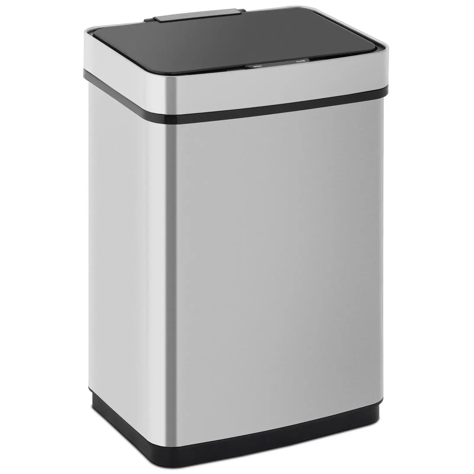 Roskasäiliön tulisi olla ennen kaikkea hygieeninen. Siksi automaattinen roska-astia STAR_ BIN_39 avautuu heti, kun lähestyt sitä ja sulkeutuu myös automaattisesti. Sinun ei tarvitse koskea mihinkään avataksesi kannen. Kätevää ja puhdasta samanaikaisesti. Roskien kerääminen voi olla näin helppoa! Roska-astian kansi pysyy tiiviisti kiinni sulkien hajut sisälleen, kunnes olet noin 30 cm:n etäisyydellä. Silloin liiketunnistin havaitsee lähestymisesi ja avaa kannen. Sinun ei tarvitse muuta kuin heittää roskat astiaan. Kun tunnistin ei enää havaitse mitään liikkeitä, automatiikka odottaa viisi sekuntia ja sulkee kannen uudelleen. Oleskelun pituus näytetään ja lasketaan LED-diodilla. Liiketunnistimeen perustuvalla automatiikalla on paljon etuja. Roska-astian kansi on auki vain silloin, kun haluat heittää siihen jotain, loppuajan se pysyy kiinni. Tästä on suurta hyötyä varsinkin, jos astiassa on pilaantuvia elintarvikkeita. Sinun ei tarvitse koskea kantta, joka on tavallisissa roska-astioissa huomattavan likainen. Tämä on tärkeää oman terveytesi kannalta. Ja tietysti on kätevää, kun kansi avautuu automaattisesti. 50 l: n koteloon voidaan kiinnittää suuri kiinnitysrungollinen jätepussi. Roska-astia voidaan avata ja sulkea pidemmäksi aikaa napin painalluksella. Kestävä korkealaatuisesta ruostumattomasta teräksestä valmistettu kotelo on erityisen helppo puhdistaa sileiden pintojensa ansiosta. Tunnistimen voi kytkeä päälle ja pois päältä suojatussa paikassa olevasta katkaisimesta. Kannen automatiikan käyttövoima tulee kuudelta AA-paristolta (eivät kuulu toimitukseen), joten et tarvitse ulkoista virranlähdettä. Tarvittaessa ämpärin kansi voidaan avata myös manuaalisesti.