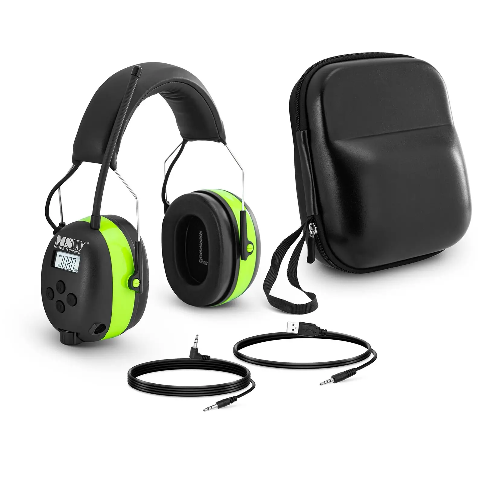 MSW:n Bluetooth-kuulosuojaimet eivät vain suojaa korviasi, vaan niiden avulla kuuntelet myös radiota, suosikkiartistiasi tai podcasteja parhaalla äänenlaadulla. Nämä mikrofonilla varustetut aktiivikuulosuojaimet toimivat myös kuulokkeina, jotka lisäävät työturvallisuutta. Ladattavien akkujen ansiosta kuulosuojaimet ovat ihanteellisia työskentelyyn meluisten koneiden kanssa puutarhassa, rakennustyömailla, teollisuudessa tai maataloudessa. Työ- ja vapaa-ajan vastamelukuulokkeet istuvat mukavasti ja tukevasti korvissa koko ajan säädettävän, pehmustetun ruostumattomasta teräksestä valmistetun sangan ja pehmeiden korvatyynyjen ansiosta. Samalla tämä istuvuus varmistaa ympäristön melun maksimaalisen vaimennuksen ja täydellisen äänen syvällä bassolla ja erinomaisilla stereotehosteilla. Tarvittaessa voit vaihtaa verhoilun helposti intuitiivisen napsautustoiminnon ansiosta. Löydät sopivat vaihtotyynyt MSW:ltä käsityötarvikkeiden kategoriastamme. Metsästys-, työ- ja muiden käyttöalueiden kuulosuojaimet Bluetooth-liitännällä osaavat vielä tätäkin enemmän: LCD-näytöllä varustetun ohjauselementin avulla voit etsiä ja tallentaa jopa kymmenen radioasemaa taajuusalueella 87,5-108 MHz. Vaihtoehtoisesti voit käyttää älypuhelinta toistolaitteena Bluetoothin kautta tai AUX-tuloliitännällä (3,5 mm). Samalla aktiivikuulosuojaimet tarjoavat pitkän käyttöiän korkealaatuisten materiaalien, tarkan työstön ja tehokkaan kosteuden ja pölyn suojan ansiosta.