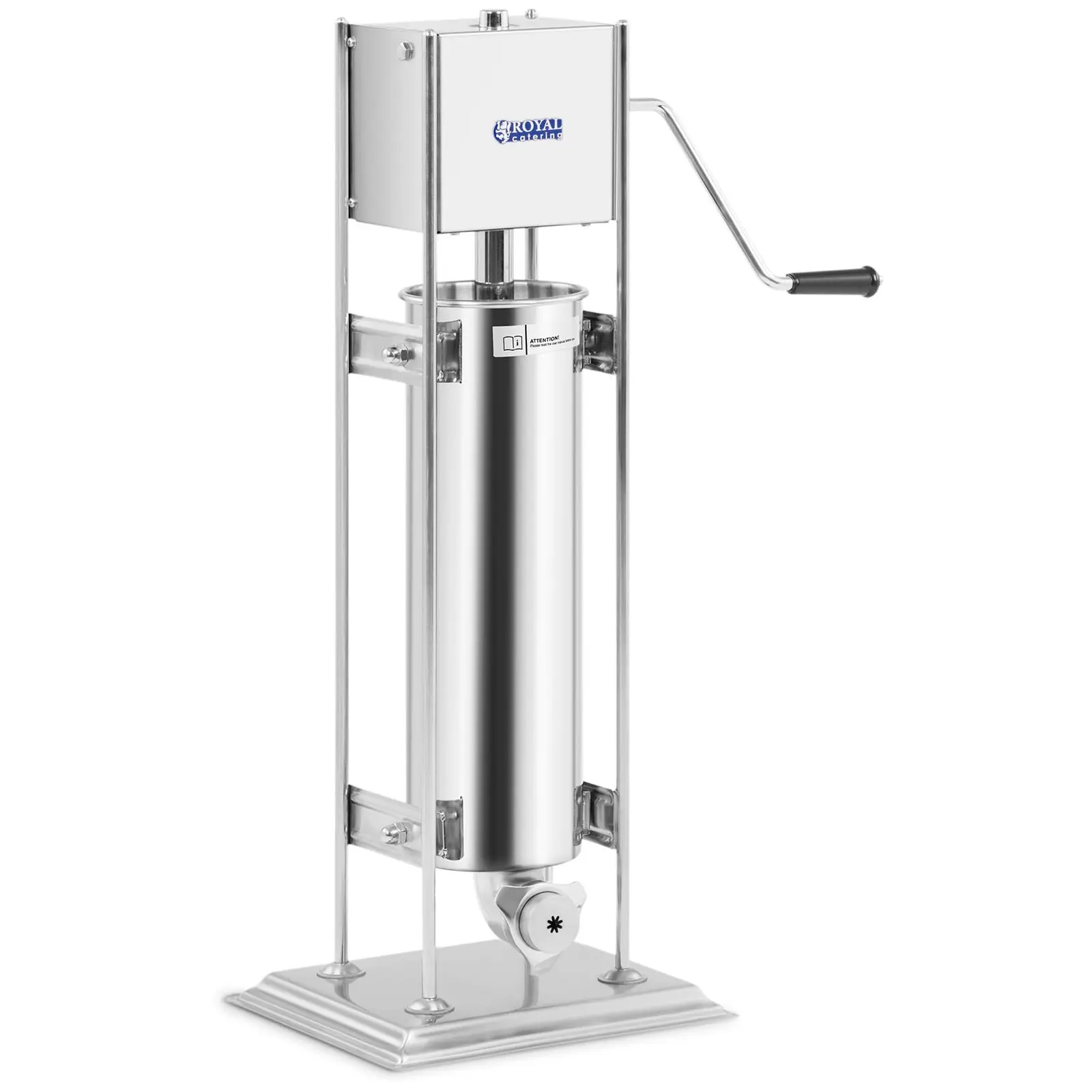 Onko sinulla ruokarekka, snackbaari, leipomo tai ravintola ja haluatko tarjota jotain uutta ja erikoista? Tällöin Royal Cateringin churro-kone RC-CMM290 juuri oikea väline sinulle! Churro-koneella loihdit laadukkaita leivonnaisia hetkessä! Herkullinen katseenvangitsija joka tilanteessa niin ruokafestivaaleilla kuin myös ravintolassa! Churro-koneen käyttö on yhtä helppoa kuin tehokasta. Sylinteriin voidaan laittaa enintään 7 l taikinaa. Taikina puristetaan tämän jälkeen muotoon ergonomisella vivulla. Tuloksena oleva churro-taikinarulla on valmis paistettavaksi. Sylinterin halkaisija on 140 mm ja korkeus 460 mm. Toimitus sisältää 5 erilaista täyttösuulaketta. Ergonomisen vivun ansiosta churro-puristinta voi käyttää erittäin mukavasti vaikka koko pitkän työpäivän. Valmistusmateriaalinsa, ruostumaton teräs, ansiosta churro-kone ei vain täytä tiukkoja ravintola-alan sille asettamia vaatimuksia, vaan se on lisäksi erityisen kestävä ja helppo puhdistaa. Pystysuuntainen muotoilu on tilaa säästävä ja mahtuu käytettäväksi myös ahtaissa tiloissa, koska työtasolla ei tarvita juurikaan tilaa. Täten se on ihanteellinen käytettäväksi ruokarekoissa tai snackbaareissa.