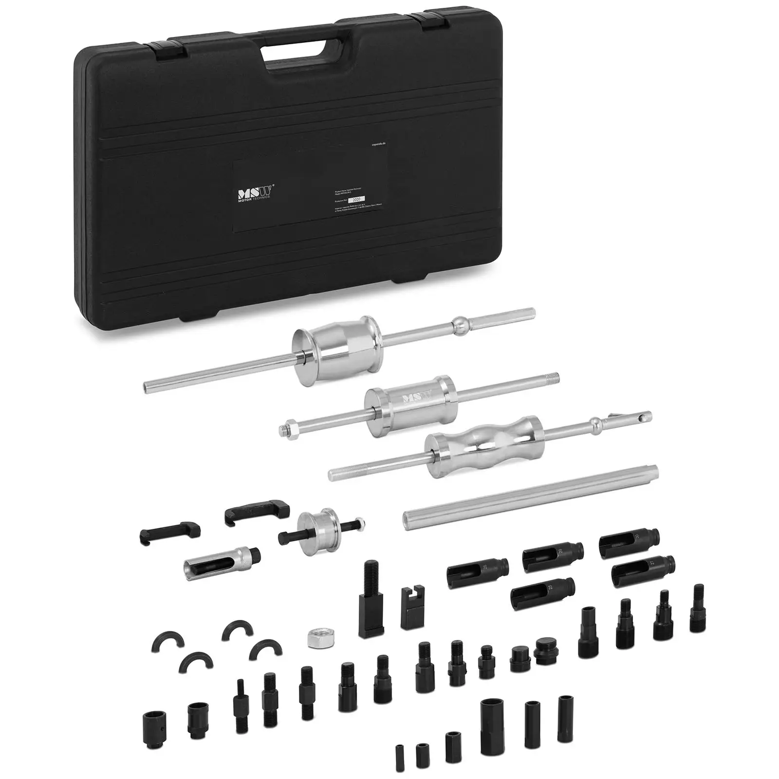 MSW:n dieselsuuttimen ulosvedinsarja MSW-IE-3H. 2 on kokoelma erityistyökaluja dieselsuuttimien turvalliseen irrotukseen sylinterinkantta purkamatta. Tämä sarja soveltuu lukuisten adapteriensa ansiosta useimmille ajoneuvojen dieselsuuttimille ja on arvokas apuväline etenkin ammattikäyttöön. Mutta myös itseoppineet autonkorjaajat pystyvät irrottamaan dieselsuuttimet tämän 40-osaisen sarjan työkaluilla aiheuttamatta vaurioita. Tähän ruiskutussuuttimen ulosvedinsarjaan kuuluu kolme erityyppisille venttiileille sopivaa liukuvasaraa. Liukuvasarat ovat eripituisia ja -painoisia ja soveltuvat erilaisille moottoreille ja erilaisia voimia vaativiin töihin. Koska tässä työkalusarjassa on lukuisia osia ja adaptereita, se soveltuu useimpiin dieselmoottoreihin. Tämän ammattikäyttöön tarkoitetun dieselsuuttimien ulosvedinsarjan ansiosta olet täydellisesti varustettu korjaamaan erityyppisiä ja -kokoisia suuttimia. Kaikki työkalut ja niiden osat ovat kestävää terästä, mikä takaa luotettavuuden silloinkin, kun työssä käytetään paljon voimaa. Voit irrottaa kiinni pikeentyneetkin suuttimet ammattimaisesti. Kolmen erikokoisen liukuvasaran materiaali on teräs. Ne vakuuttavat suurella korroosionkestävyydellään. Ammattitason ulosvedinsarjalla dieselsuuttimien irrotus on taatusti turvallista. Jos ei käytetä erikoistyökaluja, suutin ja moottori voivat helposti vaurioitua ja lisäksi työntekijä altistuu huomattavalle loukkaantumisvaaralle. Työskentele turvallisesti: käytä MSW:n dieselsuuttimen ulosvedinsarjaa. Sarja toimitetaan käytännöllisessä muovisalkussa, jossa on oma syvennyksensä jokaiselle yksittäiselle osalle. Näin kaikki pysyy hyvässä järjestyksessä käyttökertojen välillä. Salkussa on mukava kantokahva.