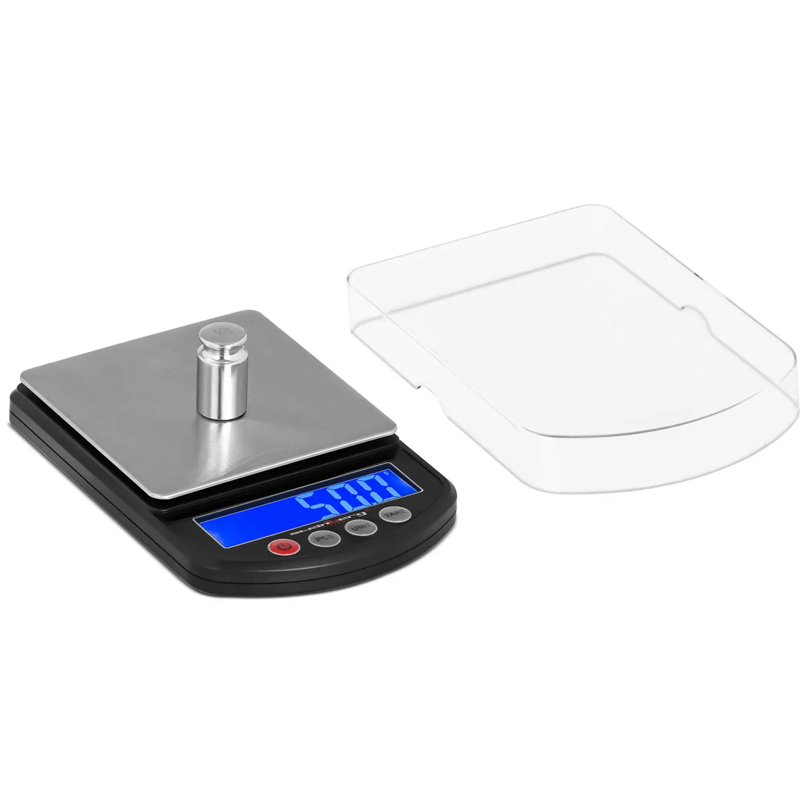 Steinberg Systemsin litteän taskuvaa’an avulla saat selville kullan, kolikoiden, jalokivien, teen, mausteiden ja monien muiden esineiden tarkan painon. Tukevan kotelon ja taittokannen ansiosta digitaalinen asteikko on aina hyvin suojattu naarmuilta ja iskuilta, ja sitä voidaan helposti säilyttää missä tahansa laukussa. Liikkuvan käytön lisäksi pientä vaakaa voidaan käyttää ihanteellisesti myös kouluissa, koruliikkeissä, laboratorioissa tai keittiöissä. Tarkat vaa’at muihin käyttötarkoituksiin sekä laadukkaat teolliset tuotteet löydät Steinberg Systemsin valikoimasta. Vaa´an tarkkuus on -0,5 g/1000 g ja enimmäispunnituskapasiteetti 3000 g. Paino ilmestyy näyttöön 2 s:n sisällä 0,01 g :n välein. Tarpeistasi riippuen voit valita myös yksiköistä dwt, T, g, oz, gn tai ct. Lukuisten yksiköiden lisäksi vaa´asta löytyy laaja valikoima toimintoja, kuten nollaus, itsekalibrointi, taaraus, yksikönmuutos, pito ja automaattinen sammutus sekä toiminto yksittäisten esineiden laskemiseen. 100 x 100 mm suuri punnitustaso on valmistettu korkealaatuisesta ruostumattomasta teräksestä, se on helppo puhdistaa ja yhdessä ABS-muovikotelon kanssa se on erityisen kestävä. 18,6 mm suuret taustavalaistut LCD-näytön numerot mahdollistavat arvojen optimaalisen luettavuuden myös hämärässä. Näytön kaksi symbolia varoittavat sekä ylilataamisesta että akun alhaisesta lataustasosta. Keveän painonsa, kestävän taittosuojuksen ja jopa 6 tunnin akun keston ansiosta tämä kompakti digitaalinen vaaka on käytettävissä missä tahansa verkkovirrasta riippumatta.