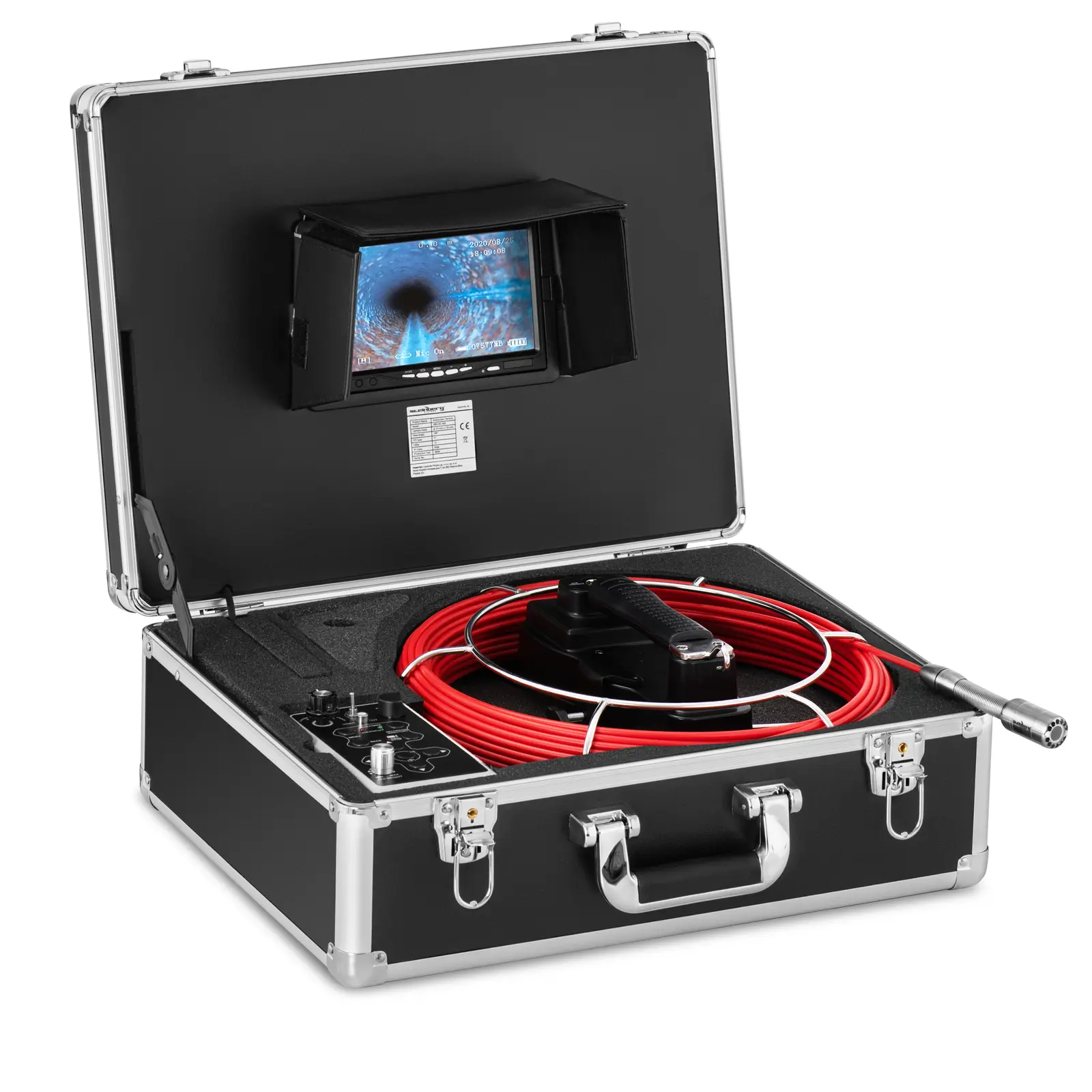 Tukoksen tai vesivahingon syy löytyy usein syvältä putkistosta. Steinberg Systemsin tarkastuskamera on ensimmäinen valinta, jolla voit ottaa kuvan putkilinjoista ja tarkastaa vaurioituneet alueet tarkasti. Alumiiniseoksesta valmistettu kamerapää työnnetään putkeen 20 m lasikuitujohdolla. Tarkastuskamera soveltuu erikokoisille viemäreille; kaksi erikokoista väliohjainta mukauttaa kameran putken halkaisijaan. Johto rullataan ruostumattomasta teräksestä valmistetusta kelasta, jossa on kampi ja jarru. Kamerapää ja johto ovat vedenpitäviä (IP68), joten niitä voidaan käyttää myös kosteissa ympäristöissä. Kulmikkaissa putkistoissa johto seuraa vaivattomasti jopa 90° haarautumia. Joustavaa kamerapäätä voidaan kiertää 90° ja sen katselukulma on 105°. Tarvittavan valon tuottavat 12 LED-lamppua, jotka on integroitu kameran päähän. Laadukas safiirilinssi sopeutuu jopa karkeisiin olosuhteisiin ja tuottaa teräviä kuvia LCD-TFT-näytölle. Lisäksi 10-kertainen digitaalinen zoom ja automaattinen kuvan suuntaus näyttävät myös putken pienimmät yksityiskohdat. Kameraa ohjataan peruskäyttöyksikön kautta ja vaihtoehtoisesti voidaan käyttää mukana toimitettua kaukosäädintä. Yksinkertaisen katselun lisäksi voit tallentaa myös videoita ja kuvia, jotka antavat sinulle arvokasta tietoa halkeamien tai tukosten analysoinnissa. Endoskooppi on varustettu SD-korttipaikalla, jotta voit käyttää jopa 256 GB:n SD-kortteja kuvien tallentamiseen. 8 GB:n SD-kortti sisältyy jo toimitukseen. Endoskooppikamera toimii ladattavalla akulla, joten sitä voidaan käyttää missä tahansa ilman ulkoista virtalähdettä. Kuljetuksen ja säilytyksen ajaksi endoskooppi voidaan sijoittaa tukevaan, vedenpitävään alumiinikoteloon.