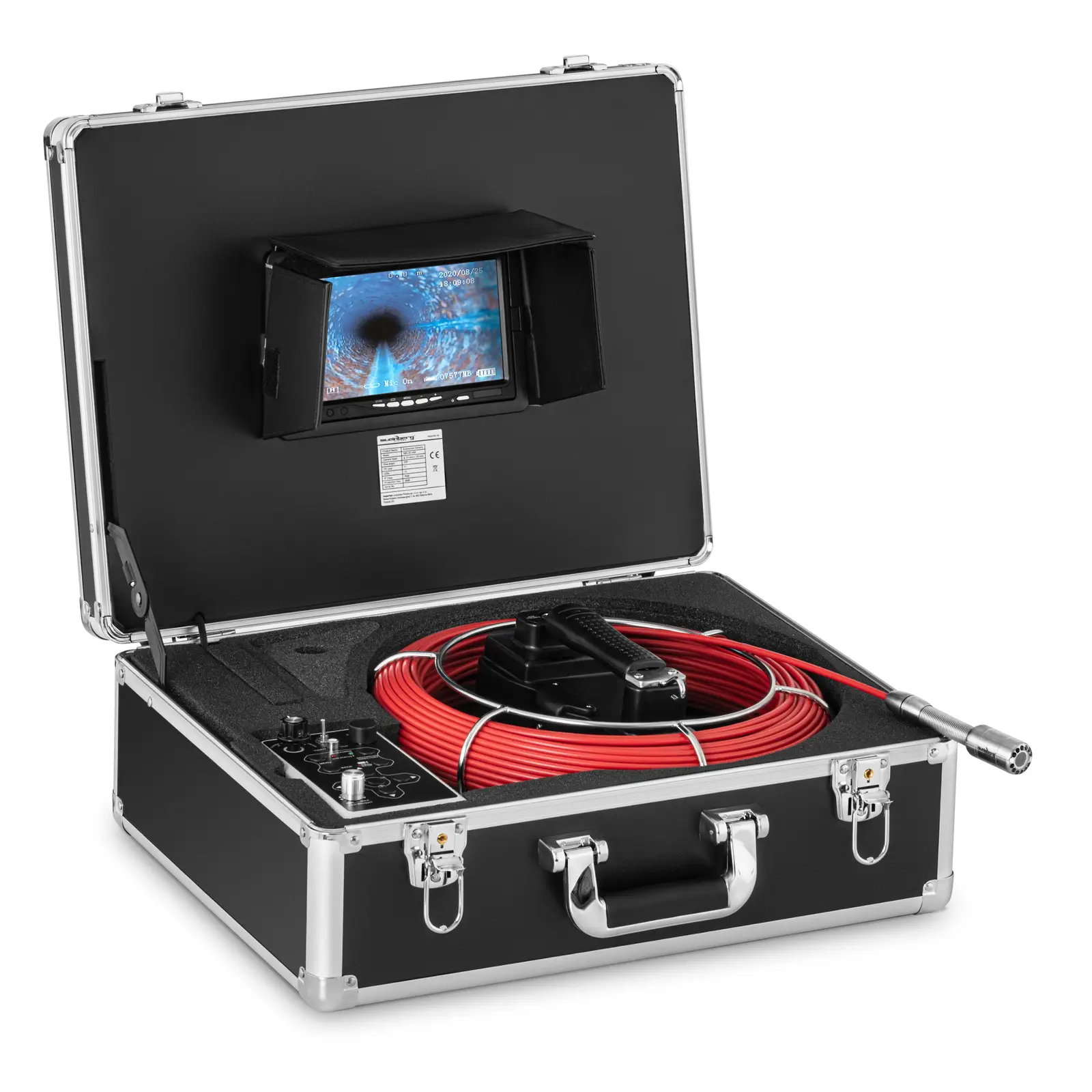 Tukos tai onnettomuus on usein piilossa syvällä putkistossa. Steinberg Systemsin endoskooppi on ensimmäinen valinta, putkistojen kuvaamiseen ja vahingoittuneiden alueiden tarkastamiseen yksityiskohtaisesti. Alumiiniseoksesta valmistettu kameran pää syötetään putkeen 50 metrin lasikuitukaapelilla. Endoskooppi sopii halkaisijaltaan erikokoisiin viemäreihin ja kaksi erikokoista ohjainta säätävät kameran putken halkaisijan mukaan. Kaapeli on rullattu ruostumattomasta teräksestä valmistetun kammellisen ja jarrullisen kaapelirummun ympärille. Kameran pää ja kaapeli ovat vedenpitäviä (IP68), joten niitä voidaan käyttää myös kosteissa ympäristöissä. Kulmikkaissa putkijärjestelmissä kaapeli seuraa vaivattomasti jopa 90° mutkissa. Joustava kamerapää on käännettävissä 90° ja sen katselukulma on 105°. Kamerapäähän integroitu 12 LED-lamppua tarjoavat tarvittavan valon. Laadukas safiirilinssi soveltuu jopa vaativiin ympäristöihin ja tuottaa veitsenteräviä kuvia LCD TFT -näytöllä 16:9- tai 4:3-muodossa. Lisäksi 8x digitaalinen zoom ja itsenäinen kuvan kohdistus paljastavat pienimmätkin yksityiskohdat putkessa. Kameraa ohjataan perusohjausyksiköllä, mutta vaihtoehtoisesti voidaan käyttää myös mukana tulevaa kaukosäädintä Reaaliaikaisen tarkastelun lisäksi voit myös tallentaa videokuvaa MP4-muodossa sekä kuvia, jotka antavat sinulle arvokasta tietoa analysoitaessa katkoksia tai tukoksia. Tarkastuskamerassa on paikka SD-muistikortille, joten voit tallentaa kortille kuvia jopa 256 GB edestä, 8 GB SD-kortti sisältyy jo toimitukseen. Endoskooppikamera toimii ladattavalla akulla, joten sitä voi käyttää missä tahansa ilman ulkoista virtalähdettä. Akku kestää yhdellä latauksella 7 tuntia ja on ladattavissa täyteen 5 tunnissa. Kuljetuksen ajan endoskooppia voidaan säilyttää tukevassa, vedenkestävässä muovikotelossa (ABS).