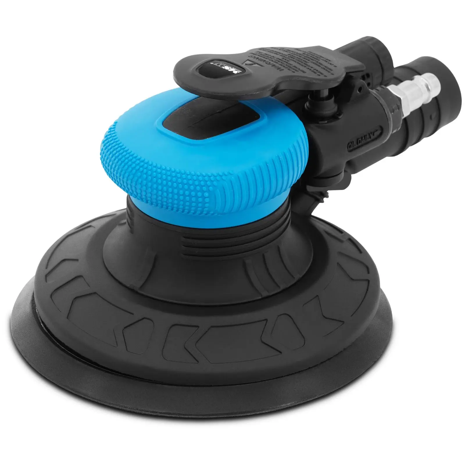 MSW-epäkeskohiomakone on korvaamaton apulainen, kun hiot puu-, metalli- tai kivipintoja. Koneessa on tärinäsuoja, jonka ansiosta käytät tätä kätevää laitetta kevyesti pitkänkin aikaa – myös korkealla oleviin pintoihin. Poistoimun ansiosta työympäristösi pysyy myös pölyttömänä! Tämän paineilmahiomakoneen 6,3 baarin paineen ja 10 500 r/min asti portaattomasti säädettävän nopeuden ansiosta saavutat aina optimaaliset hiomatulokset. Suuri pyörimisnopeus sopii karkeampien epätasaisuuksien poistoon ja pienemmät nopeudet viimeistelevään hienohiontaan. Käytä normaalissa hiontatyössä halkaisijaltaan 5 mm värähtelyliikettä. Hienompaa jälkeä vaativissa töissä voit puolestaan vaihtaa käyttöön 2,5 m värähtelyliikkeen. Koneessa on Ø 150 mm kokoinen hiontalevy, jolla työstät suuriakin pintoja tehokkaasti. Koneen pölynimu pitää automaattisesti huolen terveydelle haitallisen hiomapölyn poistosta. Voit kääntää imua 360 asteen kulmassa tarpeidesi mukaan. Tämä suojelee hengitysteitäsi ja pidentää samalla hiomalaikkojen käyttöikää. Hiomakoneen kytkeminen paineilmaan on helppoa. Käytä siihen koneen 1/4″-liitäntää, jonka ilmankulutus on 84 l/min. Tässä paineilma-epäkeskohiomakoneessa on symmetrinen rakenne, joka sopii loistavasti käteesi – olit sitten oikea- tai vasenkätinen. Ergonomisesta, liukumattomasta kahvasta saa tukevan ja varman otteen. Tällä tärinävaimennetulla hiomakoneella työsi sujuukin turvallisesti ja väsymättä.