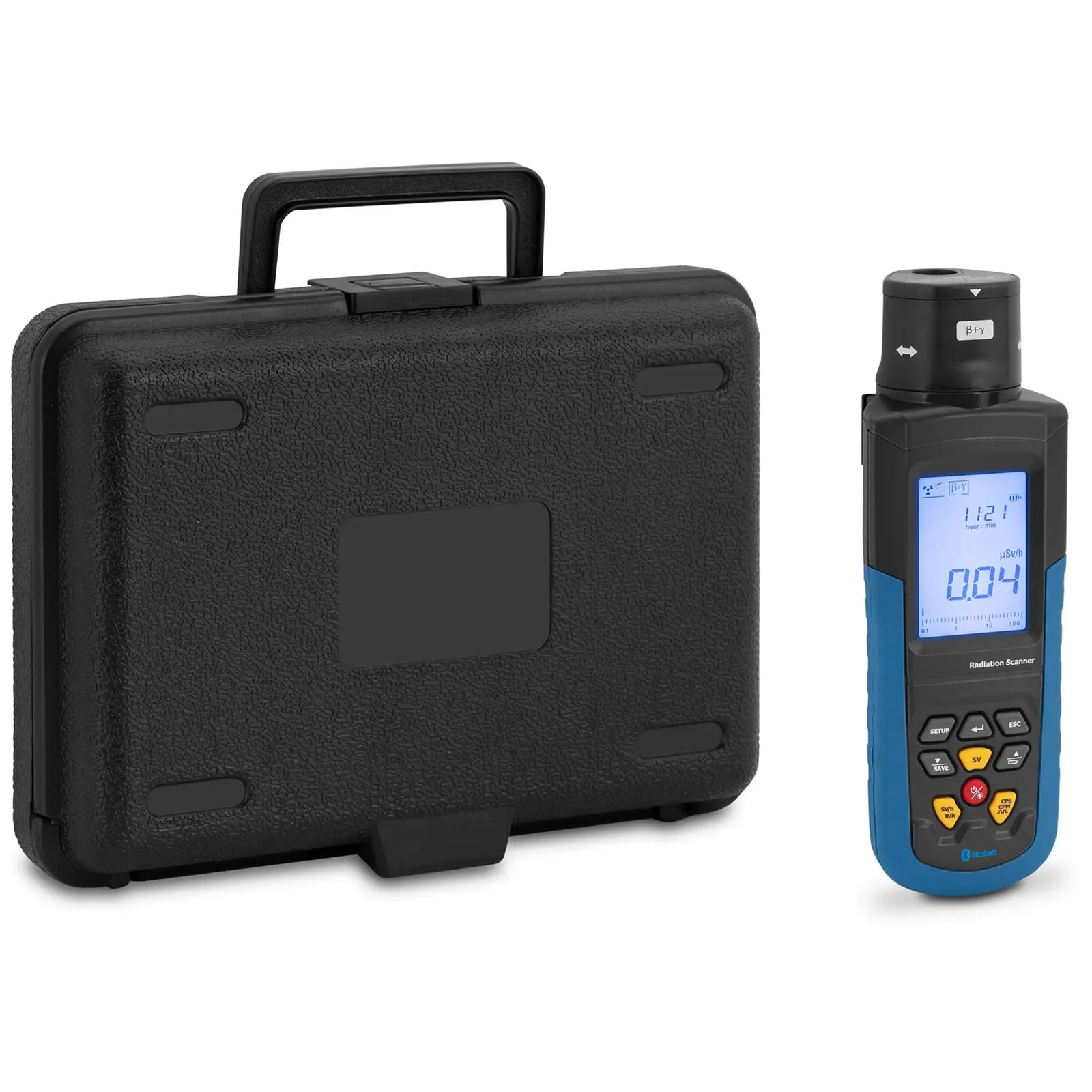 Radioaktiivisuutta on kaikkialla, et vain voi maistaa, tuntea tai haistaa sitä. Onneksi vaarallista säteilyä on alueella vain pieninä annoksina. Haluatko olla varmuudella tai tarvitsetko mitattuja arvoja työhösi, käytä sitten Steinberg Systems:n Geiger-laskuria! Geiger-Müller-laskuri havaitsee pienetkin annokset korkealla mittaustarkkuudella. He käyttävät sitä geologiassa, ympäristöteknologiassa, lääketeollisuudessa, ydinvoimaloissa ja kaikkialla, missä epäillään liiallista radioaktiivisuutta. Mittausalueella 0,001 μSv – 9999 Sv voit tallentaa ympäristösi radioaktiivisuuden luotettavasti ja tarkasti. Näet selkeästi kaikki säteilymittarin tallentamat arvot LCD-näytöllä, jossa on pylväsdiagrammi. Valitse α-, β- ja γ-säteilyn sekä röntgensäteiden välillä. Koboltti-60-säteiden ympäristössä laite tarjoaa herkkyyden 4 MeV α-säteille, 0,2 MeV β-säteille, 0,02 MeV γ-säteille ja 0,02 MeV röntgensäteille. Aseta kynnys, joka ylittäessä ilmoitetaan selvästi hälytysäänellä. Käytä Geiger-laskurin sisäistä muistia jopa 4000 tallennetun radioaktiivisuuden lukemiseen. Määrität mittausajan 2 – 12 s. Kerättyjen tietojen arvioimiseksi Geiger-laskuri tarjoaa Bluetooth-liitännän, jonka kantama on 10 m. CD-levyllä olevan ohjelmiston avulla voit siirtää tietoja nopeasti, suorittaa kattavia analyyseja ja tallentaa kaikki kerätyt tiedot. Ulkokäytössä säteilymittari tekee vaikutuksen kestävällä muovista ja kumista valmistetulla kotelolla. Neljä 1,5 V AA-akkua varmistavat luotettavan toiminnan, ja voit tarkistaa lataustason näytöltä milloin tahansa. Ergonomisen muotonsa ansiosta Geiger-laskuri istuu turvallisesti käteesi. Hallitset kaikkia toimintoja tehokkaasti selkeästi järjestetyn ohjauspaneelin painikkeilla. Radioaktiivinen säteily on siis aina hallinnassa!