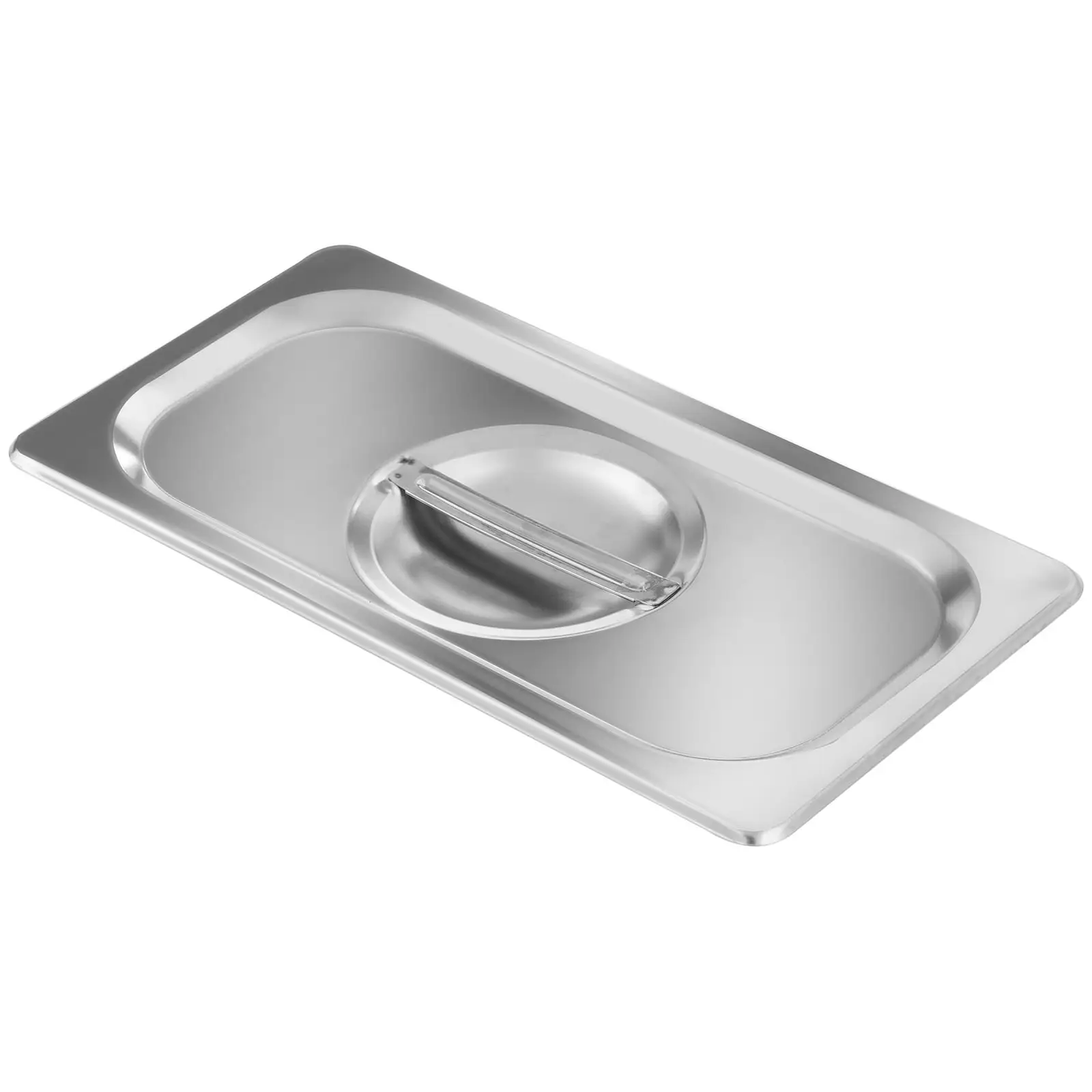 Royal Cateringin Gastronorm (GN) 1/3 -kansi RCGN-1/3-LID-1 on suunniteltu ammattimaiseen gastronomiseen käyttöön ja soveltuu ravintoloihin, ruokaloihin, herkkukojuihin, salaattibaareihin, kahviloihin, pizzerioihin, hotelleihin yms. Tällä kannella suojatussa vastaavan kokoisessa GN-astiassa ruoka säilyy lämpimänä lämpöhauteessa tai tuoreena ja viileänä kylmävitriinissä. Tämä GN 1/3-kansi on tukeva, säilyttää muotonsa ja ei naarmuunnu. Näin se täyttää loistavasti gastronomisen käytön asettamat korkeat vaatimukset ja vakuuttaa samalla monipuolisuudellaan: se käy yhtä hyvin sekä lämpimänä että kylmänä säilytykseen. GN 1/3-astia on valmistettu laadukkaasta haju- ja makuneutraalista ruostumattomasta teräksestä, mikä tekee siitä hyvin kestävän ja pitkäikäisen. Tämä materiaali sopii optimaalisesti käyttölämpötiloihin välillä -20 ja 300 °C, sen mukaan, halutaanko elintarvikkeet säilyttää kylminä tai lämpiminä. Aika on rahaa: GN-kannen RCGN-1/3-LID-1 materiaalin lisäksi myös sen pyöristetyt kulmat ja käytännöllinen reunus tekevät sen perusteellisen puhdistuksen helpoksi ja nopeaksi. Tämä keittiöväline on myös konepesunkestävä. Tämä GN-kansi sopii ihanteellisesti kaikkiin yleisesti myynnissä oleviin GN 1/3-astioihin. Siinä on käytännöllinen kahva, jonka käsittelyä helpottaa sen kohdalla oleva syvennys. Tämä GN-kansi on loistava täydennys lämpöhauteeseesi tai kylmävitriiniisi! GN-astioiden mitat GN-astiat GN-kannet