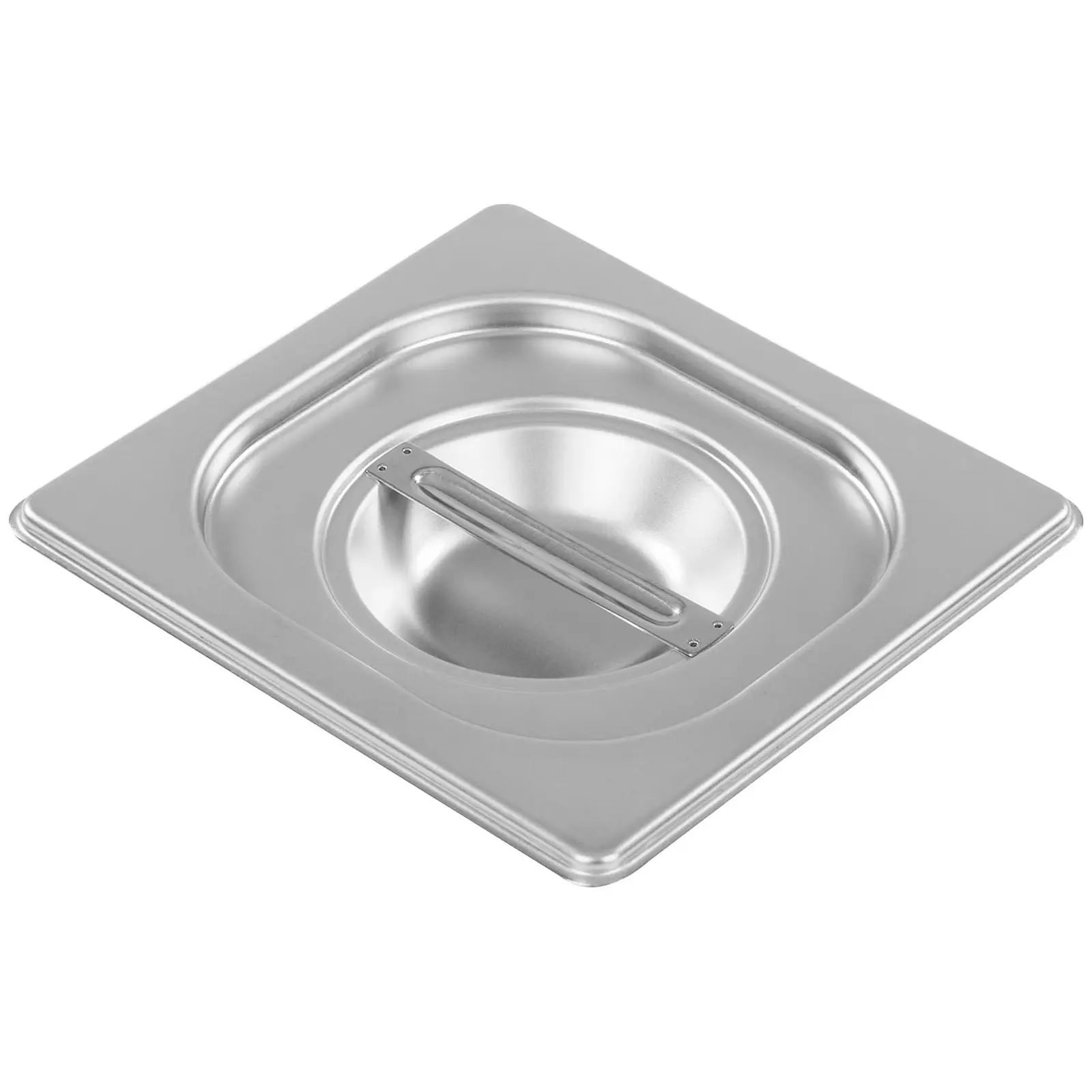 Royal Cateringin Gastronorm (GN) 1/6 -kansi RCGND-1/6 on kehitelty ammattimaista käyttöä varten ja se sopii käytettäväksi ravintoloissa, ruokaloissa, välipalabaareissa, salaattibuffeteissa, kahviloissa, pizzerioissa, hotelleissa jne. Tämän kannen avulla voit pitää GN-astiassa säilytettävät ruoat pitkään lämpiminä vesihauteessa tai tuoreina ja viileinä kylmävitriinissä. Vahvalla ja lujalla rakenteellaan GN 1/6 – kansi täyttää täydellisesti ravintola-alan korkeat vaatimukset ja tekee samalla vaikutuksen ajattomalla designillaan. GN -kansi voidaan sijoittaa helposti GN 1/6 – astiaan sen juuri sopivan muodon vuoksi. Säästä arvokasta aikaa puhdistaessasi: laadukkaaan ruostumattoman teräksen ansiosta sileän pinnan puhdistaminen käy helposti. Lisäksi pyöristetyt kulmat suosivat GN -kannen perusteellista ja nopeaa puhdistamista RCGND-1/6. Tarjotut vesihauteiden lisätarvikkeet ovat myös tiskikonepestäviä. Laadukkaan materiaalin ansiosta GN 1/6 -kansi on maku- ja hajuneutraali, erittäin kestävä ja takaa sinulle pitkän käyttöiän. Kannessa on käytännöllinen kahva. Sisään rakennettu kahvasyvennys helpottaa myös käsittelyä. Hankkiessasi tämän GN-kannen saat täydellisen lisävarusteen vesihauteeseen tai kylmävitriiniin! Huomaa: GN-kanteen sopiva astia löytyy myös myymälästämme. Lisätietoja GN- astioista löydät sivultamme. GN Container Abmessungen GN Cover