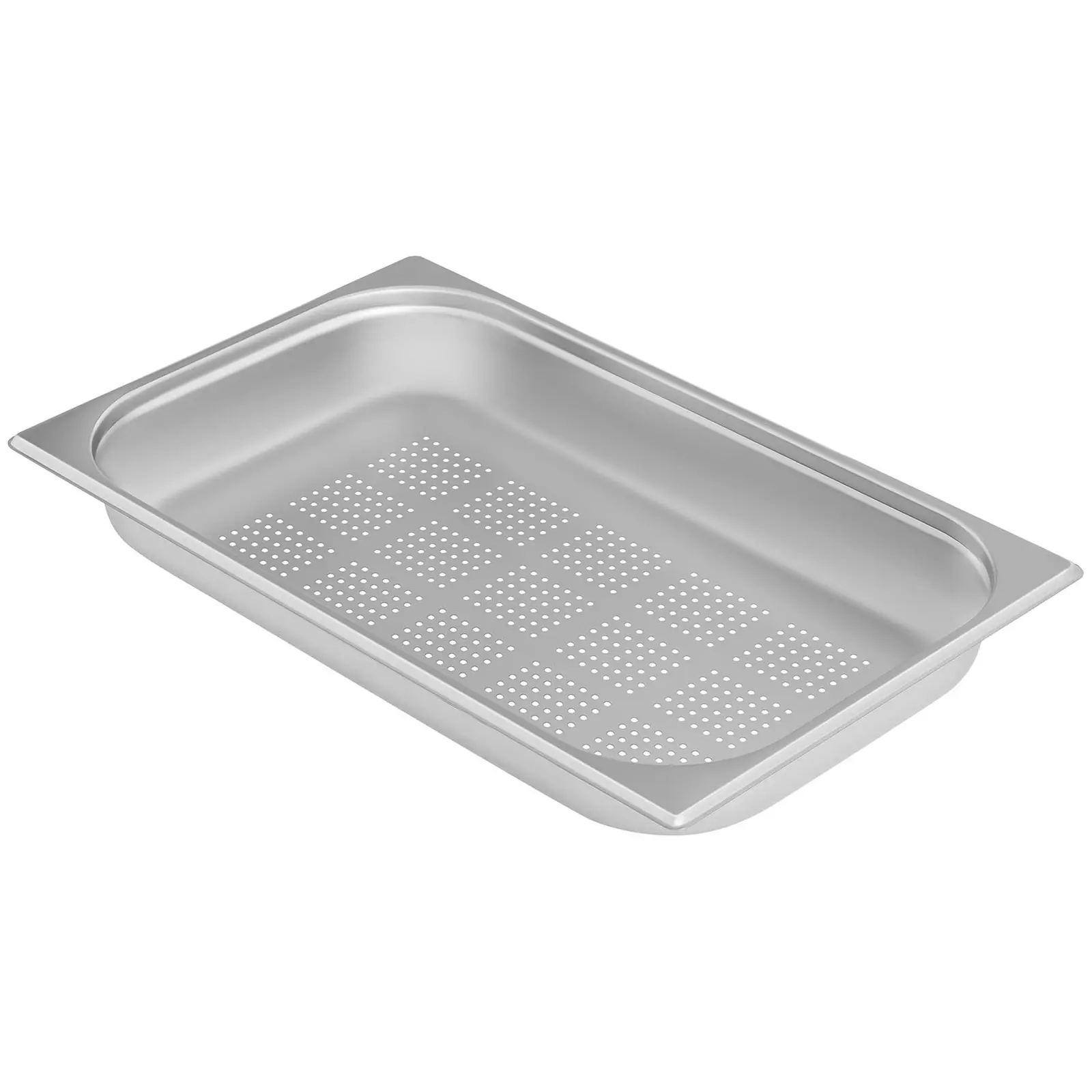 Royal Cateringin rei’itetty Gastronorm (GN) 1/1 -astia RCGN-P1/1X65 on suunniteltu ammattimaiseen gastronomiseen käyttöön ja soveltuu ravintoloihin, ruokaloihin, herkkukojuihin, salaattibaareihin, kahviloihin, pizzerioihin, hotelleihin yms. Tässä GN-vuoassa ruoka säilyy pitkään lämpimänä lämpöhauteessa tai tuoreena ja viileänä kylmävitriinissä. Tämä GN 1/1-astia on tukeva, säilyttää muotonsa ja ei naarmuunnu. Näin se täyttää loistavasti gastronomisen käytön asettamat korkeat vaatimukset ja vakuuttaa samalla monipuolisuudellaan: se käy lämpimänä ja kylmänä säilytykseen ja jopa pakastamiseen. Se on 65 mm syvä ja sen tilavuus on 8,5 litraa. Rei’itetty GN-astia vakuuttaa monipuolisuudellaan: voit valuttaa siinä liian nesteen pois vaikkapa lihasta tai käyttää sitä suoraan vihannesten kypsentämiseen. Se sopii myös loistavasti kalan tai äyriäisten tarjoiluun jääpedillä. Sulavasta vedestä syntyvä vesi voi valua rei’itetyn vuoan alle asetettuun GN-astiaan. GN-vuoassa on kookkaat kulmat ja käytännöllinen reunus. Sitä voi käyttää yhdessä kaikkien yleisesti myynnissä olevien GN 1/1-kansien kanssa. Sen litteiden reunojen ansiosta sen voi myös sijoittaa lämpöhauteeseen tai kylmävitriiniin ja ottaa sieltä taas pois puhdistusta tai täyttämistä varten. Reunukset estävät myös vesihauteesta muodostuvien höyryjen karkaamista astian laitojen kautta. Näin ollen se säilyttää lämmön paremmin kuin vastaavat astiat, joissa on kaarevat reunat. Reunojen profiili ja pohjan pyöristetyt kulmat tekevät näiden GN 1/1- vuokien pinoamisen mahdolliseksi. Niiden ei tarvitse olla yhtä syviä. Pinotut vuoat eivät takerru kiinni toisiinsa. GN 1/1-astia on valmistettu laadukkaasta haju- ja makuneutraalista ruostumattomasta teräksestä, mikä tekee siitä hyvin kestävän ja pitkäikäisen. Se sopii optimaalisesti lämpötiloille välillä -20 ja 300 °C. Vuoka ei millään tavalla muuta muotoaan tai väänny, vaikka siirtäisit sen suoraan pakastimesta kuumaan uuniin ja sieltä tarjolle. Aika on rahaa: GN-vuoan RCGN-P1/1X65 materiaali ja pyöristetyt alanurkat tekevät sen perusteellisesta puhdistamisesta helppoa ja nopeaa, mikä taas tekee astian turvalliseksi. Tämä keittiöväline on myös konepesunkestävä.
