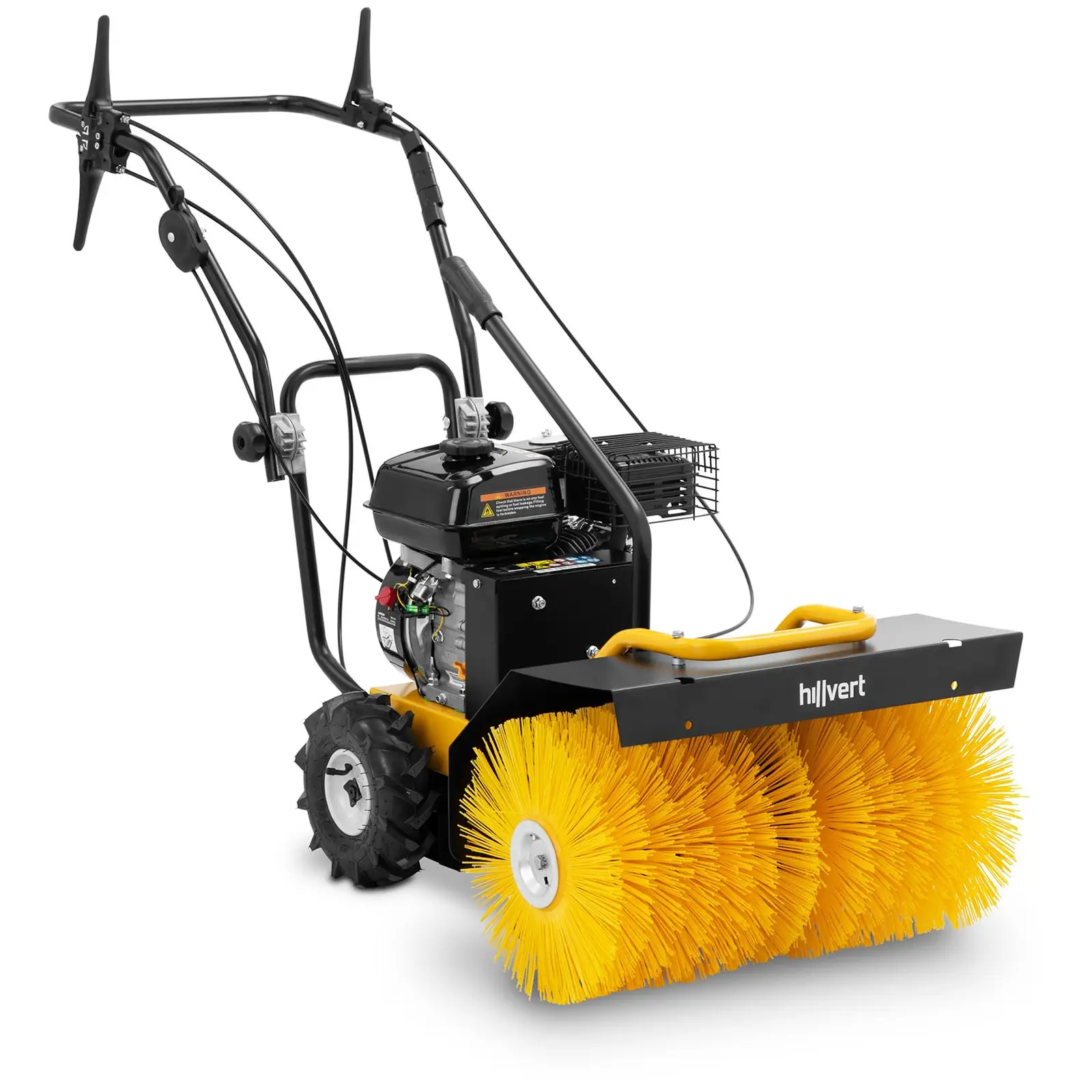 Poista roskat, lehdet, hiekka, sora sekä muu lika tai jopa ohuet lumikerrokset pihoilta ja kulkuväyliltä nopeasti ja perusteellisesti kaikkina vuodenaikoina hillvertin polttomoottorikäyttöisellä harjakoneella! Tehokkuutensa ansiosta harjakone ei ole aikaa säästävä apuväline ainoastaan katujen puhdistuksessa. Puhdistat sen 700 mm työleveyden ansiosta sillä kätevästi myös työpajat, varastohallit tai muut suuret tilat. Moottoriharja tuottaa 208 cm³:n iskutilavuudellaan 4,1 kW tehoa. Korkean suorituskyvyn ansiosta puhdistat monenlaiset pinnat todella nopeasti. Käytössä harja kulkee 3 km/h sekä eteen- että taaksepäin. Tämän varmistaa myös halkaisijaltaan 35 cm oleva harjaspää, joka saavuttaa pyörimisnopeuden 415. 3 r/min. Isoilla pyörillä ja profiloidulla sekä tärinää vaimentamalla kaaren muotoisella kahvalla voit ohjata harjakonetta turvallisesti ja vaivattomasti. Harjaan sovitettu suojalevy varmistaa myös turvallisen käytön. Se estää luotettavasti kivien tai muiden irtokappaleiden sinkoutumisen harjasta ulos ja minimoi näin loukkaantumisriskin. Tämä työnnettävä harjakone sopii monenlaisten pintojen perusteelliseen puhdistamiseen. Tiheät harjakset on valmistettu muovista (PP). Materiaali on erittäin kestävää, eikä siihen muodostu kerrostumia tai ruostetta. Lakaisukone on vakaan runkonsa ansiosta erittäin kestävä ja selviytyy hyvin raskaistakin töistä.