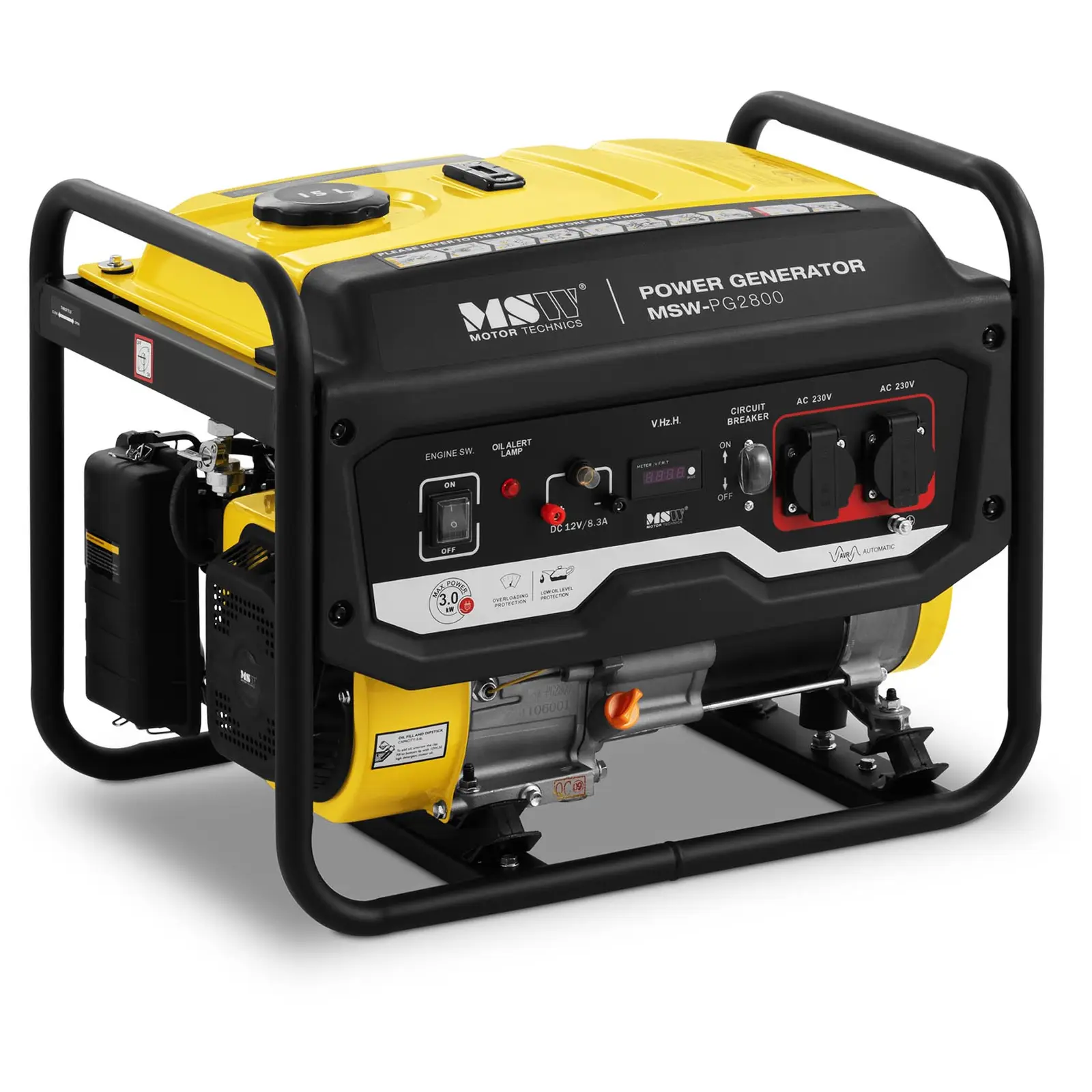 Rakennustyömaalla, suuressa työpajassa tai laivanrakennuksessa: kiinteää virtalähdettä ei aina ole saatavilla, vaikka sähkölaitteita on käytettävä. MSW tarjoaa hätägeneraattorillaan luotettavan virtalähteen 230 V AC, joka on aina lähellä. Pienikokoinen hätägeneraattori on täydellinen kannettava virtalähde kompaktin koon ja vankan rakenteensa ansiosta. 2800 W:n moottori toimii bensiinillä ja bensiiniä varten laitteessa on tilava 15 bensatankki. Bensiinimoottorille on ominaista korkea energiatehokkuus, joten se kuluttaa vain ≤ 395 g / kWh. 7 hv:n moottori käynnistetään manuaalisesti ja CDI-sytytyksen ansiosta se on heti käyttövalmis. Hyvästä suorituskyvystään huolimatta laitteelle on ominaista matala melutaso. LED-näyttö tarjoaa tietoa kaikista suorituskykyarvoista. Voit liittää hätägeneraattoriin 230 V AC jännitteen omaavia laitteita, kuten sähköporia, hiomakoneita, mutta myös keittiökoneita tai valonlähteitä. AVR-jännitesäätimellä varustettu generaattori tekee vaikutuksen vakaalla lähtötehollaan ilman suuria jännitevaihteluja. Virtalähdettä voidaan käyttää kahdella liitännällään useille laitteille samanaikaisesti. Oikosulkusuojaus ja ylikuormitussuoja takaavat turvallisen käytön. Pienen rakenteensa ansiosta hätägeneraattoria on helppo kuljettaa. Tämä tekee siitä erityisen sopivan käytettäväksi työmaalla, viikomarkkinoilla tai vastaavissa ympäristöissä. Laitteessa on tukeva teräskehys, jota voidaan käyttää yksikön siirtämiseen.
