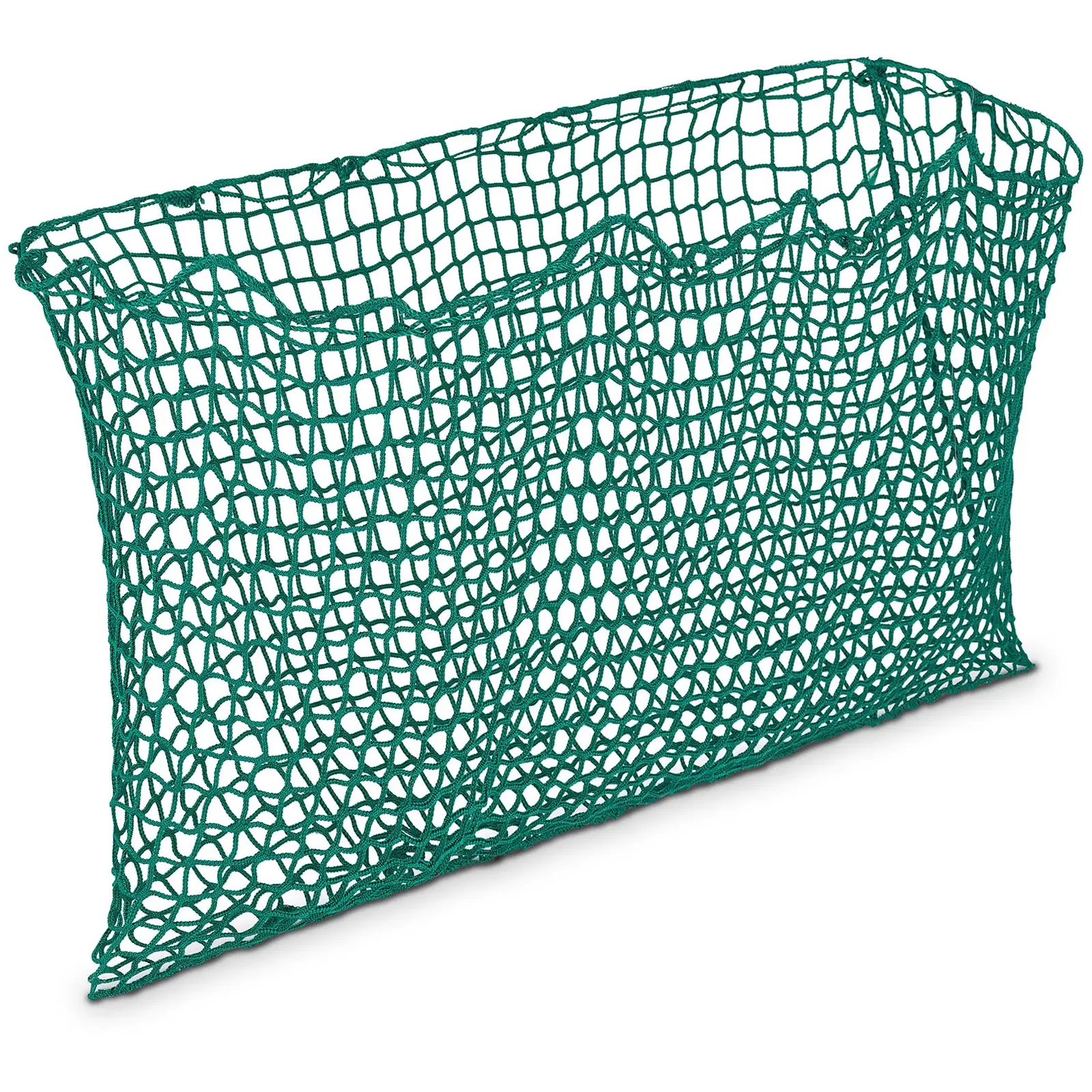 Ruoki eläimiäsi WIE-NET-13-heinäverkolla ilman, että ruoka pääsee leviämään ja likaantumaan. Heinäverkko estää luotettavasti märän tai pilaantuneen rehun syömisen. Lisäksi eläinten syöntiaika pitenee, mikä vastaa luonnollista syömiskäyttäytymistä. Näin voidaan myös estää koliikin, ylipainon tai diabeteksen syntymistä. Wiesenfieldin maataloustarvikkeisiin kuuluva vankka pyöröpaaliverkko on välttämätön apuri jokaiselle ratsastustallille, maatilalle tai ponitilalle. 2 000 x 900 mm: n heinäverkko voidaan täyttää suurella määrällä heinää. Säänkestävä verkko on valmistettu kudotusta muovista, ja sen 5 mm: n paksuus tekee siitä erittäin vetoa kestävän. Käytetty polypropeeni on UV- ja pakkasenkestävää, joten hevosten vihreä heinäverkko voidaan helposti sijoittaa ulos, esimerkiksi eläinten talviruokintaa varten. Koska materiaaliin ei imeydy vesi, se pysyy aina puhtaana ja siitä ei tule raskasta. 4,6 metrin pituisilla ja 5 mm paksuilla langoilla voit kiinnittää säkin muotoisen heinäverkon tiukasti kiinni asettaaksesi sen joko alas tai ripustaaksesi sen ylös. Ruokintaverkko, jonka neliömäiset silmät ovat 45 x 45 mm kokoisia, on ihanteellinen hevosten, aasien tai muulien ruokintaan. Eläimet eivät voi koskaan nykiä liikaa heinää heinäverkosta kerralla, ja levittää sitä talliin tai karsinaan. Tämä saastuttaisi kallista heinää ja tekisi siitä käyttökelvotonta. Lisäksi eläimet syövät näin hitaammin ja pureskelevat heinän perusteellisemmin, mikä puolestaan on erittäin hyvä niiden ruuansulatukselle. Pehmeä mutta erittäin kestävä verkko suojaa myös hevosen hampaita, koska kova materiaali kuluttaisi hampaita. Toinen etu hevosten terveydelle: heinän verkossa säilyttäminen estää eläimiä hengittämästä heinää syödessään sieraintensa kautta.