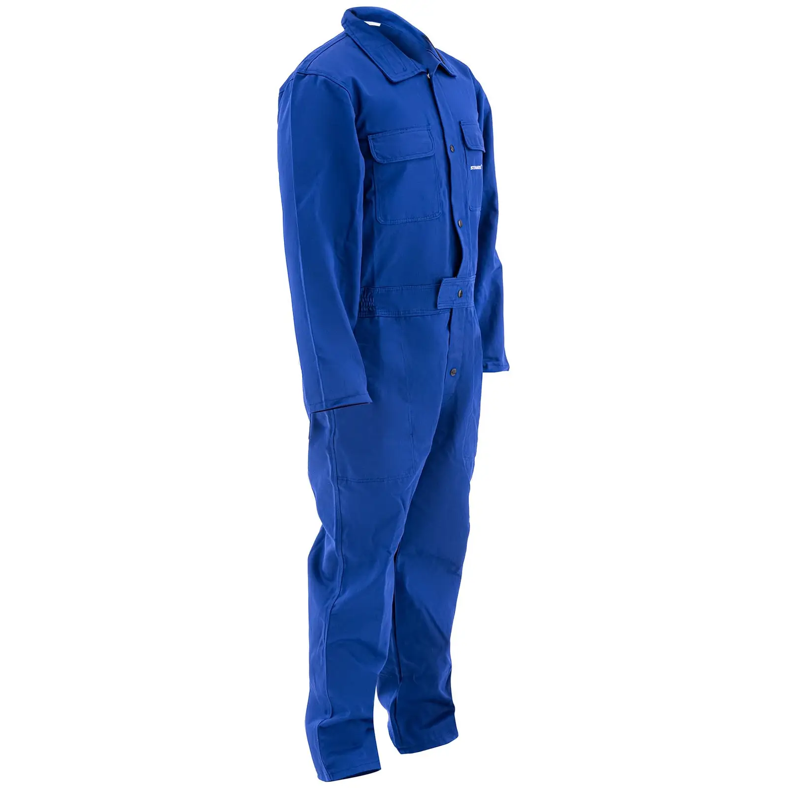 Hitsaushaalari suojaa sinua niskasta nilkkoihin hitsaustöitä suorittaessasi. Kattava suojapuku ei ainoastaan tarjoa sinulle luotettavaa suojaa, vaan myös korkeatasoista mukavuutta, joka mahdollistaa maksimaalisen liikkumisvapauden. Lisäksi se tekee vaikutuksen monilla tarkkaan harkituilla yksityiskohdillaan, jotka helpottavat työtäsi! Tämä työhaalari tarjoaa sinulle useita paloa hidastavia ominaisuuksia, jotka suojaavat sinua työskennellessäsi hitsauskoneen kanssa tai muissa vastaavissa tulitöissä. Palonkestävästä puuvillasta (OZ 11) valmistettu materiaali peittää koko vartalosi. Se antaa erittäin hyvän perussuojan hitsaustöille, mutta sitä kannattaa myös täydentää erityisillä suojavarusteilla, kuten hitsausesiliinalla, hitsauskäsineillä tai päänsuojalla. Tämä sininen työhaalari on kattava suojapuku moniin erilaisiin töihin, joissa syntyy tai käytetään tulta ja kipinöitä. Hitsaajan haalarin nepparit ovat eristettyjä ja peitetty paloa hidastavalla suojakerroksella. Lisäksi se suojaa niskaasi tehokkaasti taitettavalla kauluksella, jonka suljet turvallisesti tarrakiinnitteillä. Neppareilla säädettävät hihanhelmat ovat tulen- ja lämmönkestäviä. Tämä tarkoittaa, että olet suojattu liekkien vaikutuksilta päästä varpaisiin. Jos luotettavan suojan lisäksi myös korkea mukavuus on sinulle tärkeää, tämä hitsaushaalari on juuri oikea valinta sinulle. Mukavan puuvillan lisäksi haalarin leikkaus tarjoaa riittävästi liikkumisvapautta kaikenlaisten työtehtävien suorittamiseen esteettä. Positiivista kokonaisvaikutelmaa täydentävät neppareiden ja tarrakiinnitysten vaivaton käyttö, samoin kuin neppareilla säädettävät hihansuut ja joustava vyötärönauha. Haalarin tarkkaan harkittu muotoilu on viimeistelty ylävartalon läppätaskuilla, joissa voit säilyttää pieniä varusteita tai henkilökohtaisia tavaroitasi. Vinkki: Kun valitset sopivaa kokoa, huomioi teknisessä taulukossa annetut mitat!