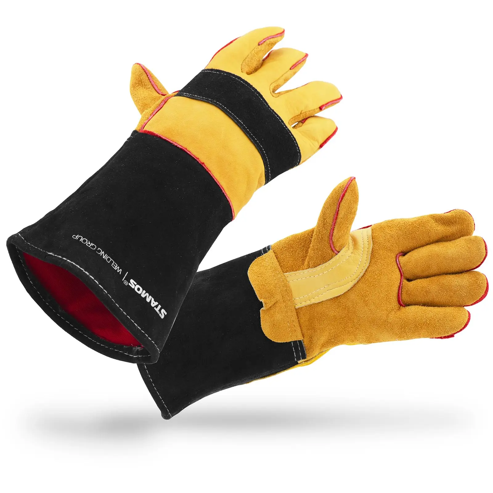 Stamos Welding Groupin korkealaatuiset hitsauskäsineet on suunniteltu erityisesti MIG/TIG-hitsaustöihin. Korkean suojaustason ansiosta tärkeimmät työkalusi ja kätesi ovat suojassa mekaanisilta ja lämmön aiheuttamilta vaaroilta. Siksi lämpösuojakäsineet sopivat täydellisesti moniin kuumuutta vaativiin töihin, kuten hiomiseen. Nämä ensiluokkaiset hitsauskäsineet tarjoavat 5-sormen muotoilullaan erittäin hyvän tuntuman. Pehmeä mokkanahka mahdollistaa tarkan työn. Hanskojen etusormet on valmistettu joustavasta nahasta, ja ne ovat siksi saumattomia. Tämä tarkoittaa, että voit käsitellä myös TIG-elektrodeja tarkasti.