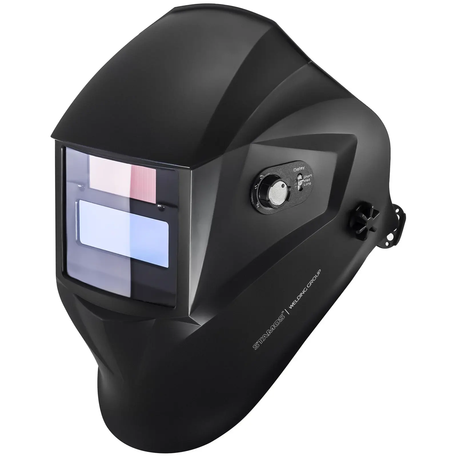 Stamos Germanyn Easy – sarjan Operator hitsausmaski – paras valinta sekä ammattimaiseen että harrastelijakäyttöön. Stamos Germanyn automaattinen Easy – sarjan Operator hitsausmaski vakuuttaa kevyellä painollaan ja hyvällä reaktionopeudellaan. Hitsausmaski on erittäin monipuolinen ja soveltuu käytettäväksi kaikenlaisissa hitsaustöissä. (MIG-hitsaukseen, MAG/CO2-hitsaukseen, valokaarikäsihitsaukseen, TIG-hitsaukseen, plasmaleikkaukseen ja mikroplasmaleikkaukseen). Lisäksi automaattinen Operator hitsausmaski on tunnettu pitkäikäisestä näkösuojastaan (kasetti). Kasetit toimivat aurinkopaneeleilla ja tarjoavat täten häiriöttömän ja suojatun työskentelyn hitsauksessa. Hitsausmaski ei tarvitse kalliita paristoja tai akkuja, jolloin rahaa säästyy eikä näin ollen maskissa ole paristojen tai akun kulumisen aiheuttavia katkosaikoja. Maskissa on DIN 9 – 13 mukainen valosuoja. Näkösuoja on jopa 95 x 36 mm. Näin ollen näet juuri kaiken olennaisen työskenneltäessä tällä hitsausmaskilla. Hitsausmaski on valmistettu kestävästä muovista. Näin ollen voidaan taata, että vain 500 grammaa painava maski ei millään tavalla rajoita työskentelyä tai aiheuta särkyä. Maskin erityisen hyvä ominaisuus on, että se on helposti säädettävissä sopivasti jokaisen päänmuodon mukaan. Lisäksi visiirin ja kasvojen välinen etäisyys on säädeltävissä. Näin voidaan taata, että maski on erityisen turvallinen ja sitä voidaan käyttää ensiluokkaisessa työskentelyssä. Easy -sarjan hitsausmaskeissa on erityisen hyvä reaktioaika, 1/25. 000 sekuntia kirkkaasta pimeään. Tämä tarkoittaa sitä, että olet koko ajan suojattuna vaaralliselta valokaarisäteilyltä. Erityinen reaktioaika mahdollistaa aukottoman siirtymän, ilman että silmäsi rasittuvat tai tarvitsevat pitkän sopeutumisajan. Automaattinen Operator hitsausmaski soveltuu käytettäväksi kaikenlaisissa hitsaustöissä ja siinä on lisäksi käytännöllinen hiomatoiminto (Grinding). Näin ollen maskia voidaan käyttää myös puhtaasti hankaus-, leikkaus- ja hiomatöihin. Hitsausmaski vakuuttaa laadullaan ja pitkäikäisyydellään sekä tarjoaa kaikki tarvittavat suojamekanismit niin käsitöihin, harrastelijakäyttöön kuin myös verstastyöskentelyyn.