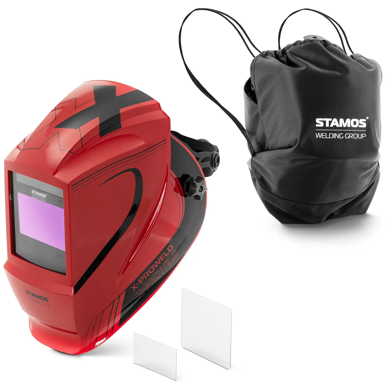 Hyödynnä hyvät optiset ominaisuudet, erittäin nopea siirtymäaika sekä rakenteen keveys. Hitsausmaski X-PROWELD sopii kaikenlaisiin hitsaustöihin. Hitsasit sitten puikolla tai suojakaasulla, automaattinen hitsausmaski suojaa sinua aina luotettavasti. Hitsausmaski tarjoaa säädettävän valosuojausalueen DIN 5-9 / 9-13 ja DIN 4. Testipainikkeen avulla voit säätää valosuojan juuri tarpeidesi mukaiseksi. 100 x 60 mm:n kokoinen näkökenttä pitää kaikki tärkeät yksityiskohdat hyvin näkyvissä. X-PROWELD hitsauskypärä saa virtansa aurinkopaneeleista ja sisältää vaihdettavan CR2032-akun, jonka käyttöikä on jopa 5 000 tuntia. Tämä erittäin kevyt muovinen automaattimaski painaa vain 0. 6 kg, joten työskentelet sen kanssa mukavasti pitkiäkin aikoja. Voit helposti säätää sen juuri sinun päähäsi sopivaksi. Maskissa on lisäksi myös niskasuoja. Hitsausmaskiin käytetty TECAMID 66 -materiaaliseos on valmistettu polyamidi 66:sta ja nylon 66:sta. Materiaalille on tunnusomaista hyvä jäykkyys ja kovuus sekä korkea kulutuksen- ja lämmönkestävyys. Nailon 66 on myös erittäin pitkäikäinen materiaali, joka ei naarmuunnu herkästi. Laadukkaat lämmöltä ja kemikaaleilta suojaavat ominaisuudet yhdistettynä hyvään iskunkestävyyteen takaavat, että tämä automaatti hitsausmaski tukee sinua myös ankarissa työolosuhteissa. Erittäin nopea siirtymäaika 1/25000 s kirkkaasta tummaan suojaa sinua luotettavasti valokaaren säteilyltä. Se ei myöskään rasita silmiäsi tarpeettomasti, eikä sinun tarvitse jatkuvasti keskeyttää hitsausta säätöjen asettamiseksi. Automaattimaski on optisen luokan, hajavalon, valon läpäisyn vaihtelun ja kulmariippuvuuden osalta erittäin laadukas. Se sopiikin käyttöön kaikissa ammattimaista otetta vaativissa työkohteissa. Kattavan valosuojan ansiosta voit käyttää hitsauskypärää kaikkiin yleisiin hitsausprosesseihin. Säädä valoherkkyys, siirtymisaika ja tummumisaste erikseen kulloisenkin hitsausprosessin mukaan. Jos haluat tehdä muita metallitöitä, kuten hiontaa, ottamatta maskia pois päästä, aseta se GRIND-tilaan. Stamos Welding Groupin automaattinen hitsauskypärä tarjoa sinulle ratkaisun kaikkiin tilanteisiin – turvallisesti ja laadukkaasti!