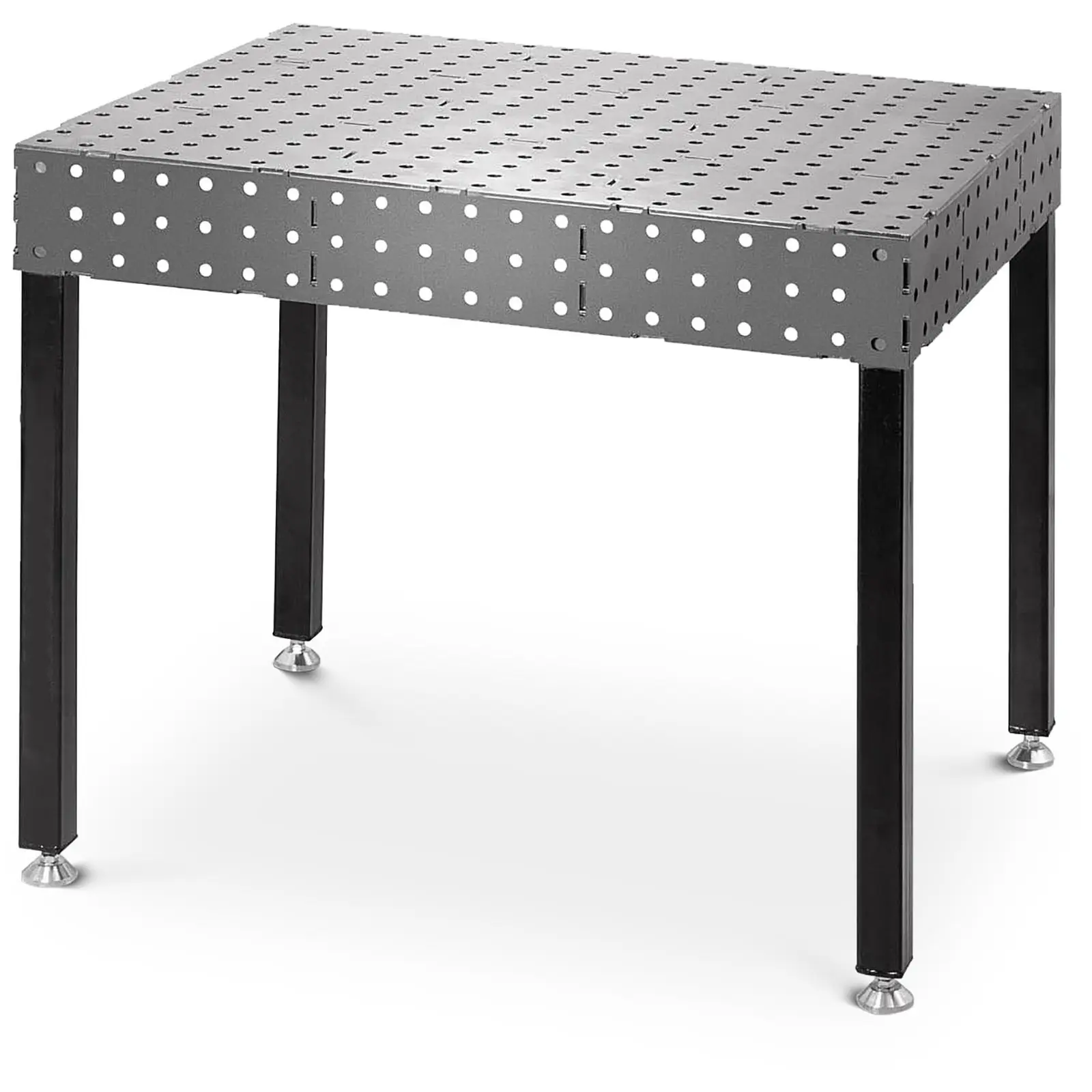 Vaaditko hitsaustöissä korkeaa suorituskykyä ja tarkkoja tuloksia? Aseta sitten hitsattavat kappaleet täydelliselle korkeudelle Stamos Welding Groupin hitsauspöydällä. Raskas työpöytä hitsaukseen kantaa raskaatkin metallikappaleet turvallisesti. Työtasolla on runsaasti tilaa kaikenlaisten kappaleiden kohdistamiseen. Tarvittaessa voit asettaa myös itse hitsauslaitteen sen päälle. Neljällä erittäin tukevalla ja 50 x 50 mm:n kokoisella jalalla seisova teräksestä valmistettu jigipöytä kestää ongelmitta jopa 1000 kg:n kuormituksen. Kestävästä hiiliteräksestä valmistettu järeä hitsauspöytä ei heilu tai tärise edes täydellä teholla hitsattaessa tai työkappaletta siirrettäessä. Pöytä tarjoaakin luotettavan alustan kaikenlaiseen hitsaustyöhön. Käytä pöytälevyn reikiä kiinnittääksesi ja kohdistaaksesi työkappaleet tarkasti puristimia käyttäen. Lisäksi käytössäsi on rei’itetty reunus, joka auttaa kulmien kohdistamisessa. Vaihtoehtoisesti voit käyttää hitsausmagneetteja metalliosien kiinnittämiseen. Myös magneetit kiinnittyvät pöytälevyyn kätevästi. 120 x 80 cm:n kokoinen hitsaustaso on riittävän suuri myös kookkaammille esineille. Hitsaus pöytä tarjoaa myös reilusti liikkumisvapautta mitä moninaisimmissa hitsaustilanteissa.