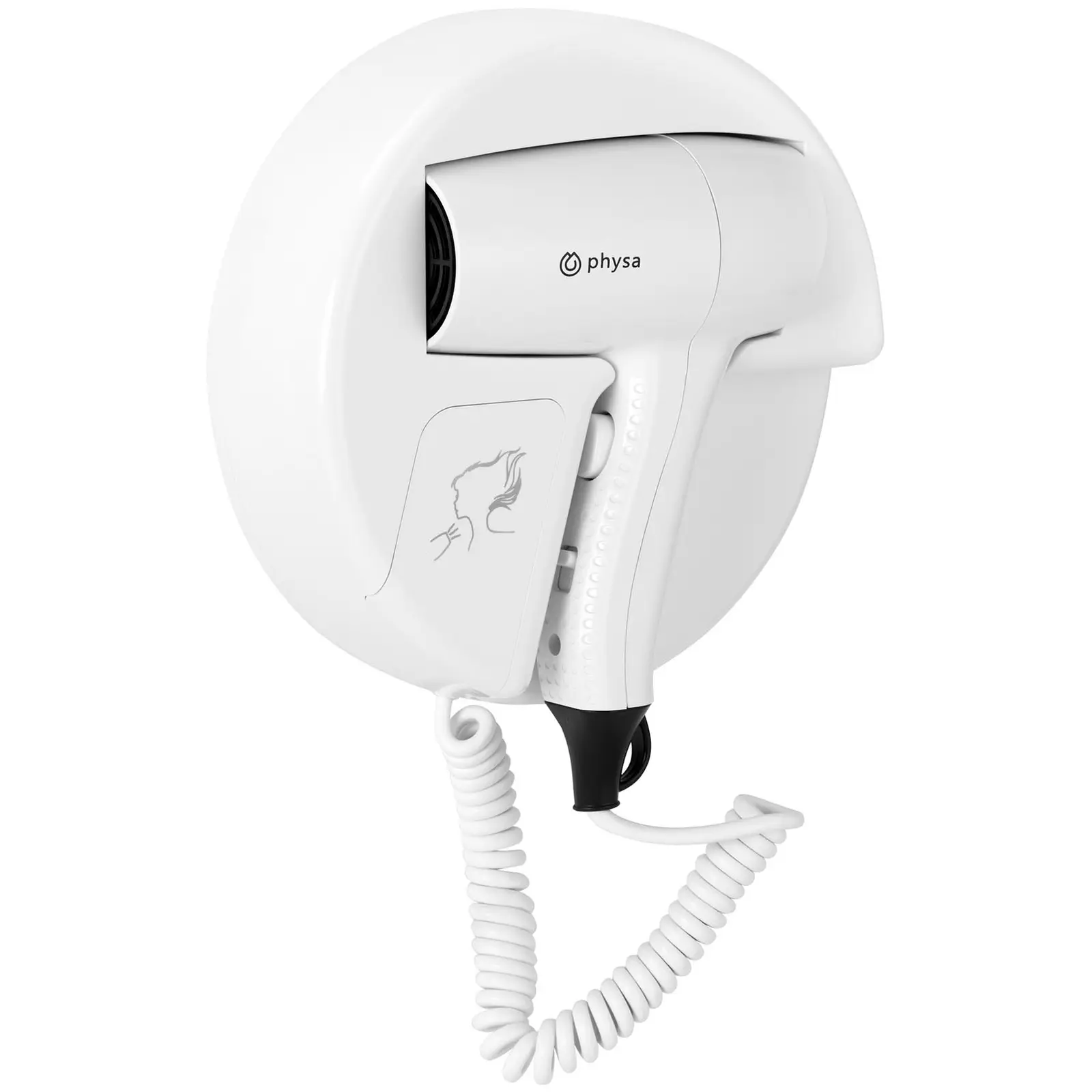Physan korkealaatuisen hotellitarvikevalikoiman seinään kiinnitettävä hiustenkuivaaja on suunniteltu kaupalliseen käyttöön hotelleihin, uimahalleihin tai kylpylöihin. Hiustenkuivaajaa voidaan käyttää kaikkialla yleisissä tiloissa, joissa hiustenkuivauksen on sujuttava helposti ja nopeasti. Tehokas moottori toimii 1 200 W teholla ja lämmittää ulos virtaavaa ilmaa kahdella valittavalla tasolla jopa 100 °C lämpötilaan. Miellyttävä ilmavirtaus saavuttaa 10 m/s olevan puhallusnopeuden. Tämä lämpötila ja nopeus ovat ihanteellisia hiustenkuivaukseen hiuksia vaurioittamatta. 0,9 m pitkä spiraalijohto tarjoaa riittävän liikkumavapauden, kun taas ritilä suojaa laitetta ja hiuksia vaurioilta. Tämä hiustenkuivain hotelliin voidaan kiinnittää helposti haluttuun seinään. Näin se pysyy aina paikallaan ja on kätevä ratkaisu pieniinkin tiloihin. Hiustenkuivaajan kiinnike ja kuivaaja itse on valmistettu kestävästä ABS-muovista, jonka ansiosta se kestää ulkoisia vaikutuksia erityisen hyvin.