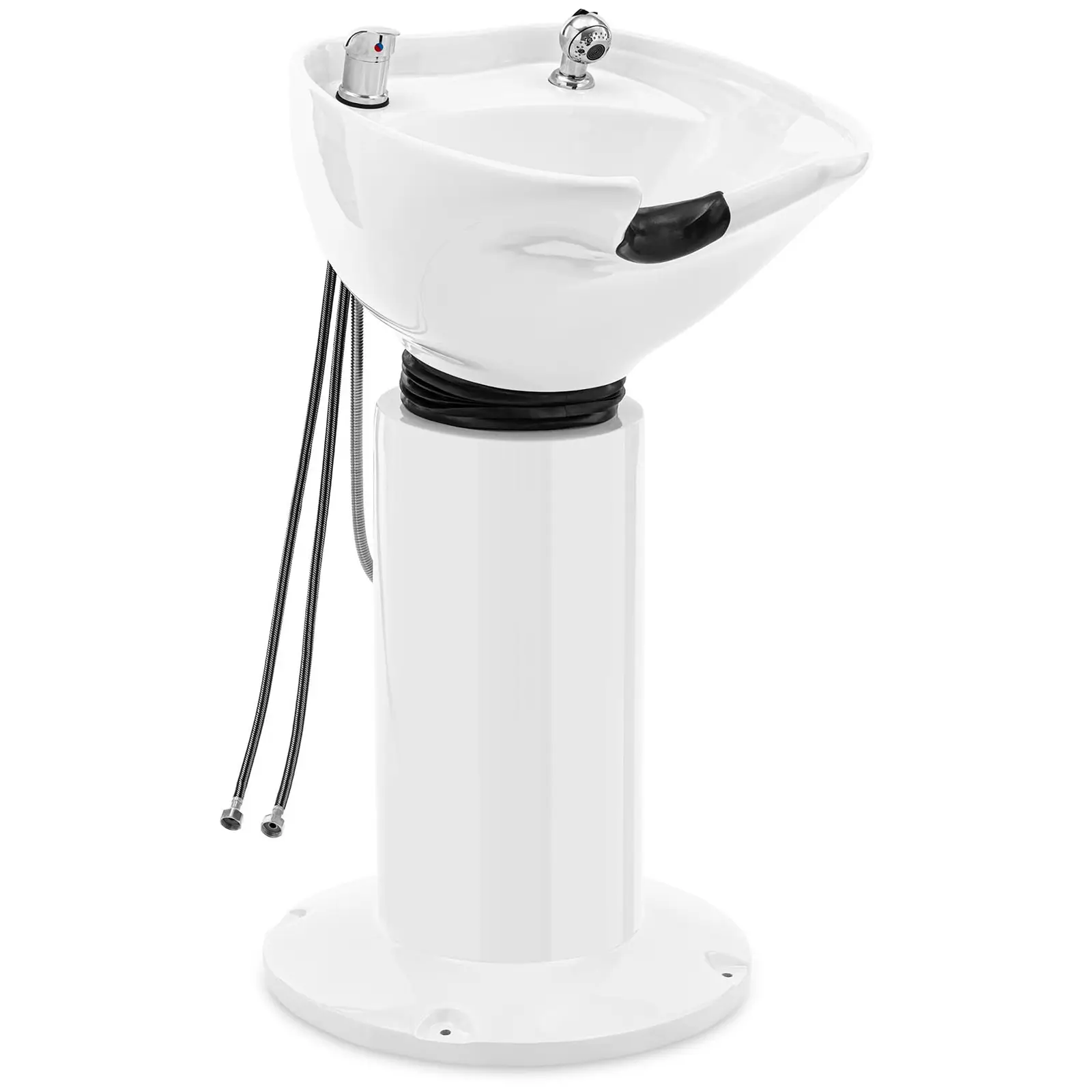 Physan kampaamotarvikkeiden vapaasti seisova hiustenpesuallas on ihanteellinen ratkaisu kampaamosi tarpeisiin! Allas tarjoaa asiakkaillesi mukavuutta hiustenpesun ajaksi. Tukeva keraaminen pesuallas silikonisyvennyksellä niskalle on luotettava ja houkuttelevan näköinen apuväline salonkiisi. Tämä 560 x 505 x 309 mm:n kokoinen valkoinen kampaamon pesupaikka tarjoaa runsaasti tilaa perusteelliseen hiustenpesuun. Altaaseen integroitu suihkuletku on ulosvedettävä, ja veden voimakkuus on säädettävissä nopeasti ja helposti sekoitushanasta. Vankka ruostumattomasta teräksestä valmistettu jalusta tarjoaa vakautta sekä houkuttelevan ja modernin ulkonäön. Pesuallas on kallistettavissa välillä 35 – 40°. Näin voit mukauttaa sen jokaisen asiakkaasi yksilöllisiin tarpeisiin. Veden poistoaukon sihti on nopea ja helppo puhdistaa. Lisäksi se ehkäisee tehokkaasti altaan tukkeutumisen. Toimitukseen sisältyvä tulppa on kumipintainen ja estää pesuveden valumisen altaasta. Myös altaan silikonipehmuste on helppo irrottaa puhdistusta varten.