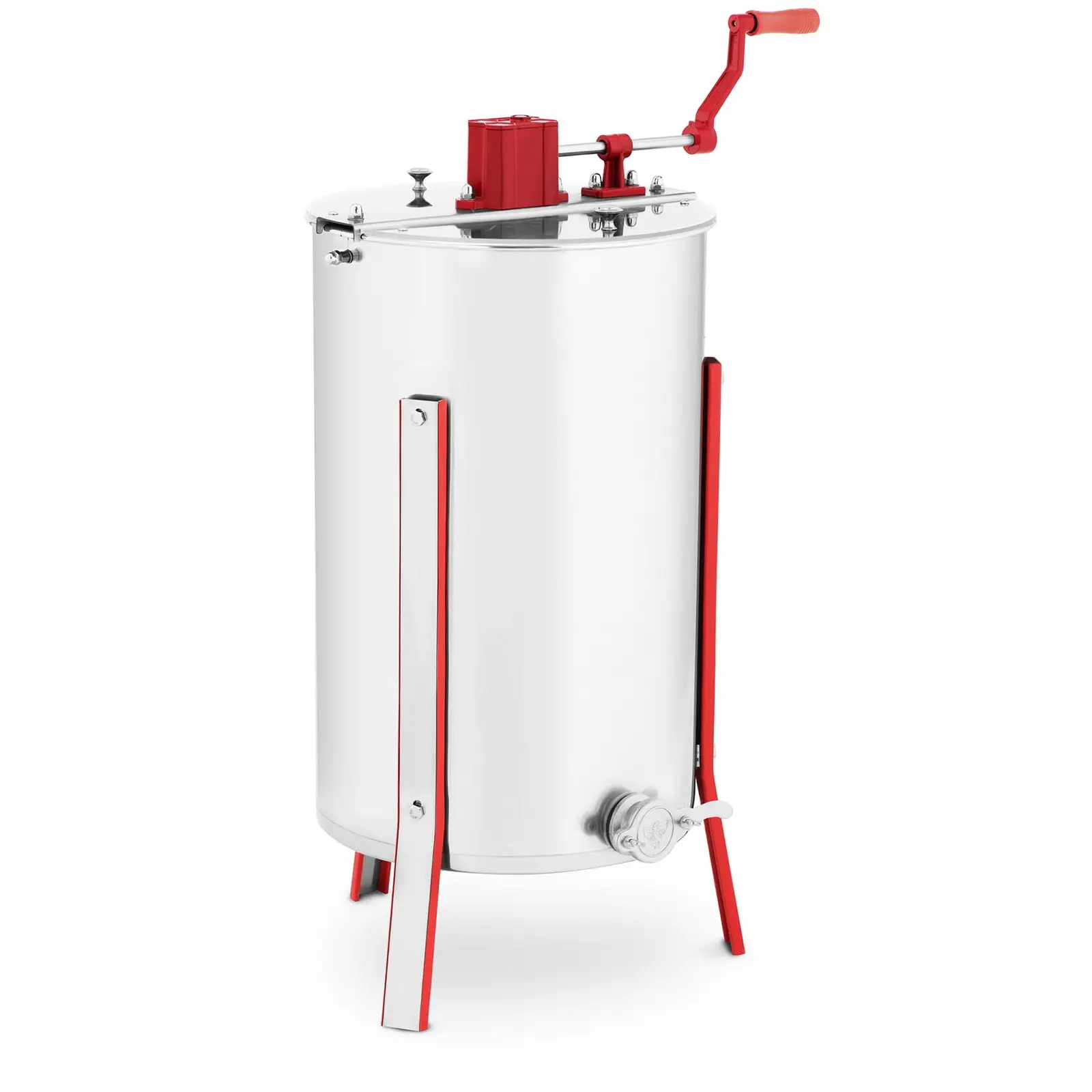 Hunajalinko on yksi mehiläishoitajan tärkeimmistä työkaluista. Wiesenfieldin mehiläishoitotarvikkeiden käsikäyttöinen, tangentiaalinen hunajalinko pitää sisällään 3 kehää ja on ihanteellinen hunajan keruuseen yksityisessä tai pienessä mittakaavassa. Tangentiaaliset linkouslaitteet, kuten WIHE-03201 -malli, mahdollistavat hunajan helpon valumisen helposti sekä suurempien hunajakennojen erottamisen. Kolmen, jopa 245 x 430 mm kehän ansiosta hunajankeruu voidaan tehdä vain muutamalla linkouskierroksella. Suuri kulhohalkaisija tuottaa riittävän keskipakoisvoiman tehokkaan hunajan kennoista poistamiseksi. 3-kehäistä hunajalinkoa käytetään manuaalisesti käyttämällä kovetetusta teräksestä valmistettua käsiveiviä, jota voidaan käyttää myös lingon nopeuden säätelemiseen. Lingon runko ja kehäkori on valmistettu korkealaatuisesta ruostumattomasta teräksestä ja ne täyttävät hygieenisen hunajan tuotannon vaatimukset. Materiaali on myös erityisen kestävää ja helposti puhdistettava käytön jälkeen. Ruostumattomasta teräksestä valmistettu hunajalinko seisoo hiukan korkeammalla kolmen tukevan jalan ansiosta, mikä helpottaa hunajan täyttämistä. Tyhjennyshana mahdollistaa lingon puhtaan ja täsmällisen tyhjentämisen.