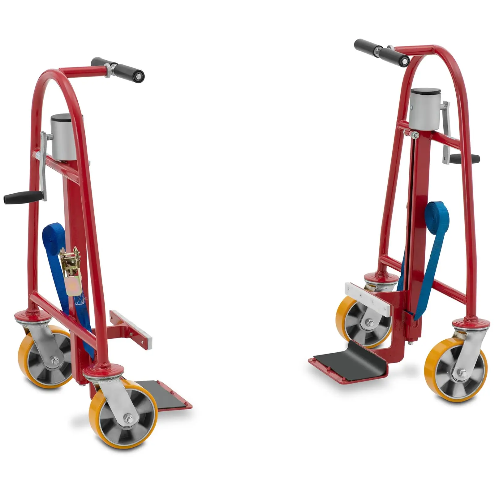 Huonekalujen kuljetus, nosto ja siirtäminen – siirtorullat tekevät raskaidenkin kuormien liikuttelusta vaivatonta. Steinberg Systemsin käytännöllinen nostojärjestelmä on loistava apuväline myös yksin työskennellessä. Tämän takaavat yksinkertainen käyttö ja tarkkaan harkittu muotoilu. Käytä huonekalujen kuljetusvaunua, kun haluat siirtää raskaita ja suurikokoisia kuormia. Nostaaksesi huonekalut, siirrä vain molemmat vaunut lieden, kaapin tai muun siirrettävän tavaran molemmille puolille ja aseta 22. 5 x 11. 5 cm:n kokoiset alustat sen alle. Kiinnityshihnat auttavat sinua kuljettamaan tavarat turvallisesti. Siirtorullilla voit nostaa huonekalut 330 mm:n korkeuteen. Liukumattomat lastausalustat pitävät kuorman tukevasti kyydissä. Kun olet kiinnittänyt siirrettävän huonekalun oikein, voit rullata sen kevyesti haluamaasi paikkaan. 150 mm suurten pyörien ansiosta voit liikuttaa kuormaa vaivattomasti. Huonekalunostimen tangot on valmistettu tukevasta terkäsestä, joka tekee siitä erittäin kestävän.
