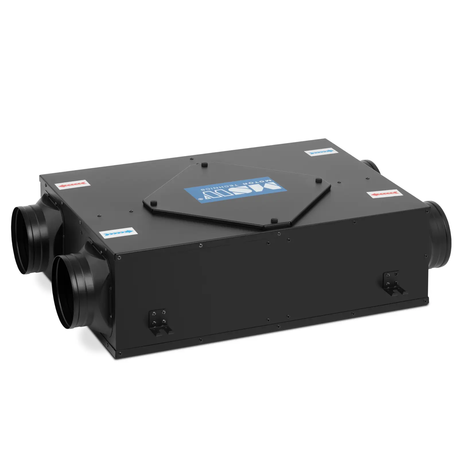 Käytetty poistoilma energianlähteeksi? Ilmanvaihtokone lämmöntalteenotolla sopii viileän ja raikkaan tuloilman lämmittämiseen poistoilman avulla. Tämä fiksu järjestelmä on energiaa säästävä ja kustannustehokas lämmitysratkaisu. Erittäin kompakti ristivirtauslämmönvaihdin tekee vaikutuksen paitsi tehokkailla teknisillä ominaisuuksillaan myös näppärällä muotoilullaan. Ilma-lämmönvaihtimen ydin on sen sisällä oleva grafeenimoduuli, jonka läpi sekä tulo- että poistoilma johdetaan. Uusinta teknologiaa edustavan moduulin rakenne mahdollistaa jopa 78 %:n lämmönvaihdon. Lisäksi molemmat ilmavirrat kulkevat kahden suodattimen läpi, mikä takaa raikkaan ilman ja miellyttävän mikroilmaston. Sisään- ja ulostuloaukot poisto- ja tuloilmalle ovat halkaisijaltaan 146 mm:n kokoiset ja varmistavat ilman optimaalisen virtauksen lämmönvaihtimen läpi. Tämä lämmön talteenottojärjestelmä sopii käytettäväksi enintään 120 m² suurissa tiloissa, jotka eivät ole korkeampia kuin 3 m. Kiertosäätimen avulla voit ottaa käyttöön haluamaasi tilaan sopivan ilmavirran tason 350, 300 tai 250 m³/h. Näin varmistat tasaisen ilmanvaihdon sekä optimaalisen lämmön- ja kosteudensiiron. Puhaltimen pitkäikäinen moottori toimii vähän huoltoa vaativalla vaihtovirtakuparikäämillä, joka tekee vaikutuksen luotettavalla toiminnallaan. Lisäksi ilmanvaihtolaite on varustettu ylikuumenemissuojalla. Kotelon sisäpuolella oleva vaahtomuovipanelointi takaa myös hiljaisen toiminnan.