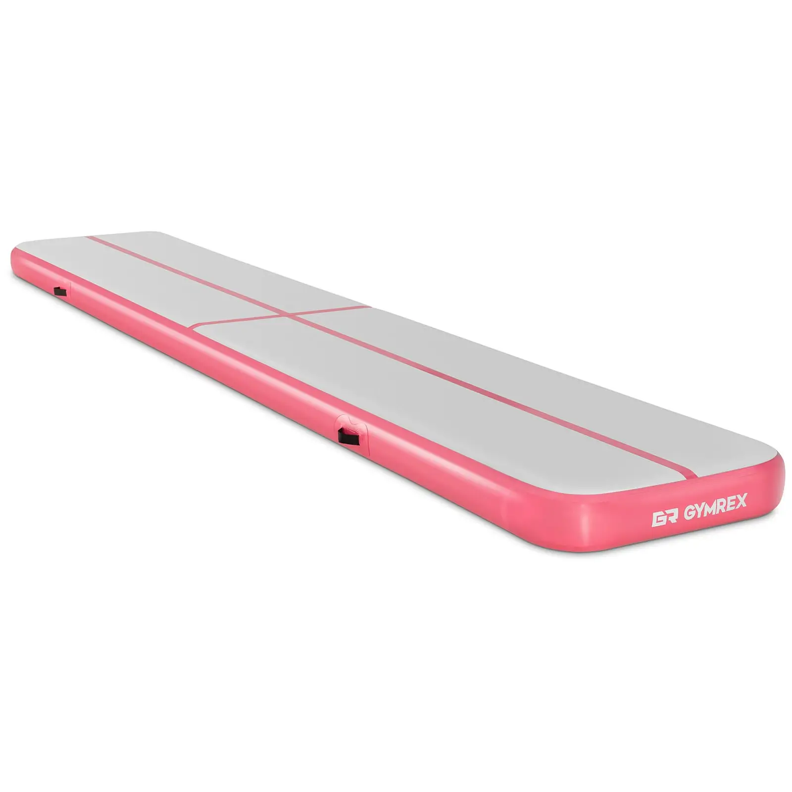 Gymrexin ilmapatja voimisteluun sopii käytettäväksi niin fitnessstudioilla, tanssikouluissa ja taistelulajikursseilla sekä voimisteluseuroissa. Lisäksi voit käyttää ilmavolttirataa monipuolisena harjoitteluvälineenä kotonasi. Olipa kyseessä sitten koululiikunta, jooga, cheerleading, voimistelu tai kungfu: liukumattomalla ilmatäytteisellä voimistelupatjalla voit harjoitella turvallisesti loukkaantumatta. Ilmapatja voidaan täyttää 30 sekunnissa ja sen kovuutta voidaan säätää yksilöllisesti ilmanpaineella enintään 0,7 baarilla ja mukauttaa se täten sopivaksi erilaisille harjoituksille. Ilmatäytteisen voimistelupatjan mitat ovat 600 x 100 cm ja korkeus 20 cm. 210 kg kuormitettavuudellaan se sopii optimaalisesti niin lapsillle kuin myös aikuisille ja kestää voimakkaimmankin rasituksen. Tämän takaa ilmapatjan kaksinkertainen PVC-kangas; se ei ole vain lujatekoinen vaan 1 000 denierillään myös erittäin paksu ja täten kestävä. Lisäksi maton huolellinen työstö takaa sen, että ilmavolttirata säilyttää muotonsa, turvallisuutensa sekä säilyy tiiviinä myös äärimmäisessä käytössä. Vuodon sattuessa toimitukseen sisältyy kaksi itseliimautuvaa paikkaa mutkatonta korjausta varten. Ilmatäytteinen voimistelurata voidaan täyttää sähköisellä ilmapumpulla vain 30 sekunnissa. Ilmapatja voimisteluun voidaan tiivistää luotettavasti mukana toimitettavalla venttiiliavaimella, mikä takaa pitkät harjoitteluajat ilman, että patjaa täytyy välillä täyttää uudestaan. Patjassa on kaksi mustaa nailonia olevaa kahvaa, joista sitä voidaan kantaa ilmatäytteisenä. Harjoittelun jälkeen voimistelupatja on nopeasti tyhjennetty. Tämän jälkeen patjaa voidaan ongelmitta kantaa ja varastoida tilaa säästävästi.
