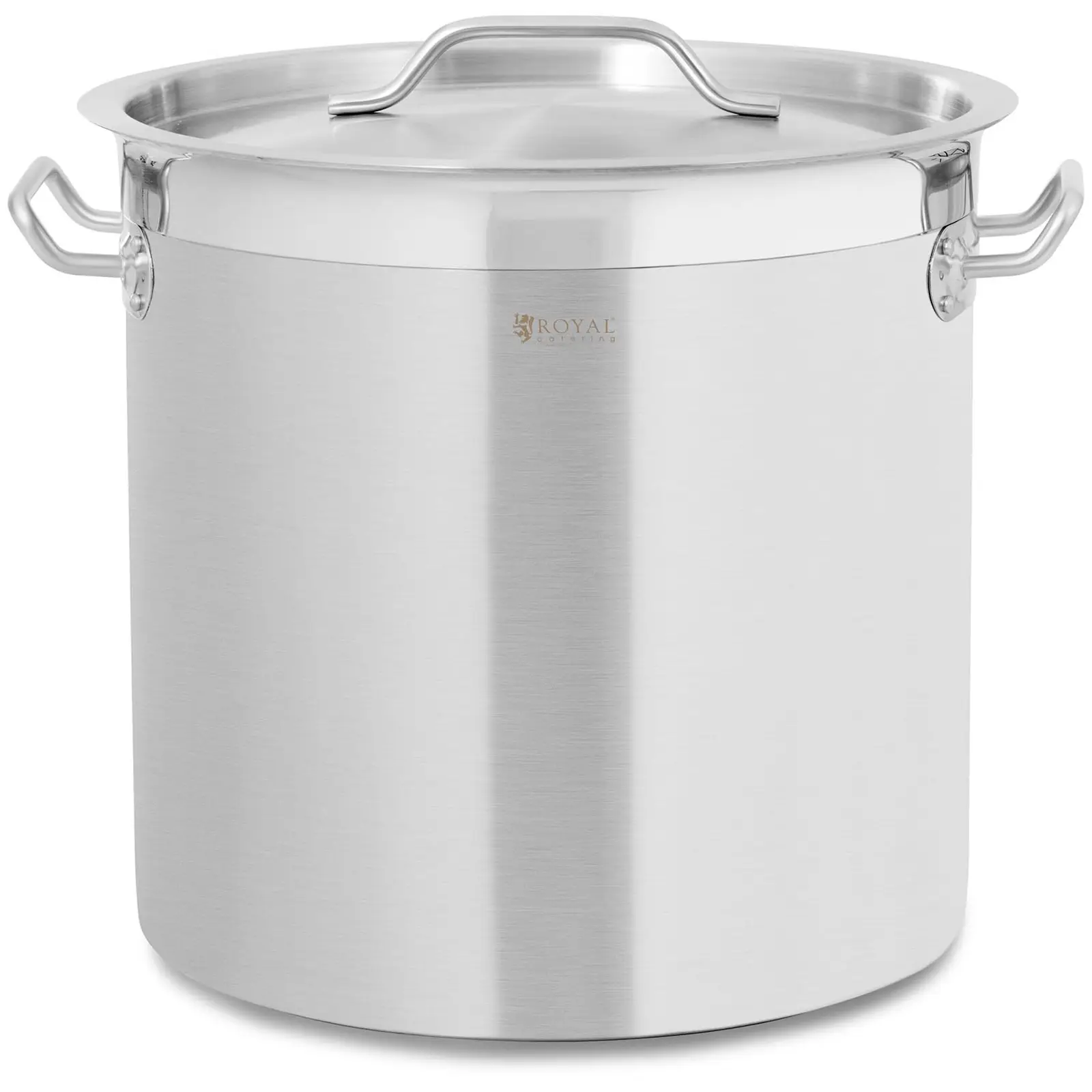 Royal Cateringin ravintolalaitteisiin kuuluva induktiokattila 21 l tilavuudella on lämpöeristetty, korkealaatuinen keittiöväline. Tämä ruostumaton teräskattila tarjoaa mahdollisuuden valmistaa suuria määriä ruokaa vaivattomasti niin suurkeittiöissä kuin myös ulkoilmatapahtumissa. Kotikokeille tai ammattikäyttöön ravintoloihin, baareihin tai ruokaloihin: Royal Cateringin valikoimasta löydät ensiluokkaiset kattilat. Kattila kuumenee optimaalisesti kolmikerroksisen kapselipohjansa ansiosta. Kaksi ulointa ruostumaton teräskerrosta ympäröi keskellä olevaa alumiinikerrosta, joka takaa tehokkaan lämmönjakaantumisen kattilassa ja pitää ruoan lämpimänä pidempään ilman ylimääräistä energiankulutusta. Keittoaika lyhenee siis jopa 20 prosenttia ja energiankulutus jopa 30 prosenttia, mikä on erityisen edullista toistuvassa ja jatkuvassa käytössä. Kattilaan kuuluva kansi pitää ruoan lämpimänä, tuoreena ja maukkaana. Kattila sopii sähkö- ja kaasuliesille sekä keraamisille keittolevyille, halogeenilevyille ja induktiolevyille. Kauttaaltaan taivutettu reuna takaa helpon, roiskeettoman ja tipattoman kaatamisen. Kattilassa ja kannessa on ergonomisesti muotoillut kahvat, joten voit helposti siirtää keittoastioita. Suojaa käsiäsi palovammoilta patalapuilla tai -kintailla kantaessasi kuumaa kattilaa. Kattila ja kansi on valmistettu erittäin kestävästä ruostumattomasta teräksestä, joka on suunniteltu erityisesti ammattikäyttöön. Ne eivät ainoastaan vakuuta erinomaisella valmistuksellaan ja pitkäikäisyydellään, vaan myös kiiltävän tyylikkäällä ulkomuodollaan. Materiaaliin ei tartu hajuja ja se on erityisen hygieeninen, mikä tekee ruoanlaitosta terveydelle vaaratonta. Lisäksi materiaali on helppoa puhdistaa.