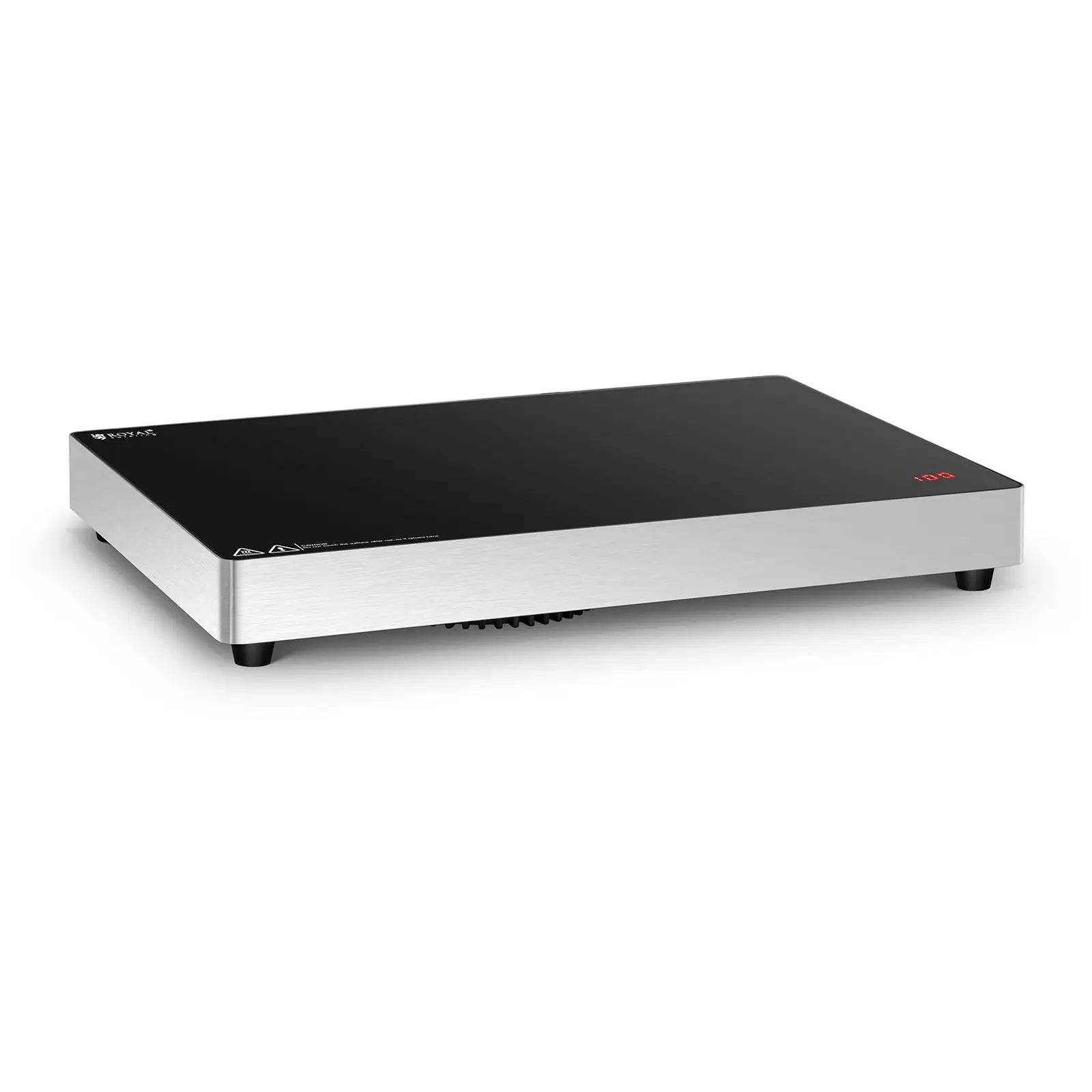RCIC-1000P9-induktiokeittolevyllä voit kokata nopeasti, helposti ja turvallisesti. Induktioliedessä keittolevyn alla on virtakäämi, joka aikaansaa magneettisen vaihtokentän. Täten vain kattilat ja pannut kuumenevat itse levyn pysyessä viileänä. Koska liesi voidaan vaivatta siirtää paikasta toiseen, se on täydellinen leirintäalueille, ruokarekkoihin tai järkevä lisä kotikeittiöösi. Induktiokeittolevyn pinta on keraaminen ja sen halkaisija on 26 cm. Täten sillä voidaan kuumentaa kattiloita ja pannuja, joiden pohjan halkaisija on 12-26 cm. Lämmitysprosessi induktiolla on energiatehokkaampi kuin sähköllä tai kaasulla. Erityinen kuumennus säästää paljon aikaa ja energiatehokkuus saa sähkönkulutuksesi laskuun! Ajastin, lämpötila ja lämmitysteho asetetaan intuitiivisen ohjauspaneelin kautta. Tehokkaan 1000 W lämpövastuksen ansiosta induktiolevy saavuttaa lyhyessä ajassa halutun käyttölämpötilan. Induktiokeittolevyn lämpötila on valittavissa 40 – 100 °C välillä ja säädettävissä 5 °C:n portaissa. Levyssä on lisäksi ylikuumenemissuoja. Induktiolevyn kuori on ruostumatonta terästä, joka on yhtä vaivatonta puhdistaa kuin keraaminen levykin. Materiaalit erottuvat edukseen myös pitkäikäisyydellään Levyn pohjassa sijaitsevat liukumattomat kumitassut ehkäisevät liukumisen sileillä pinnoilla.