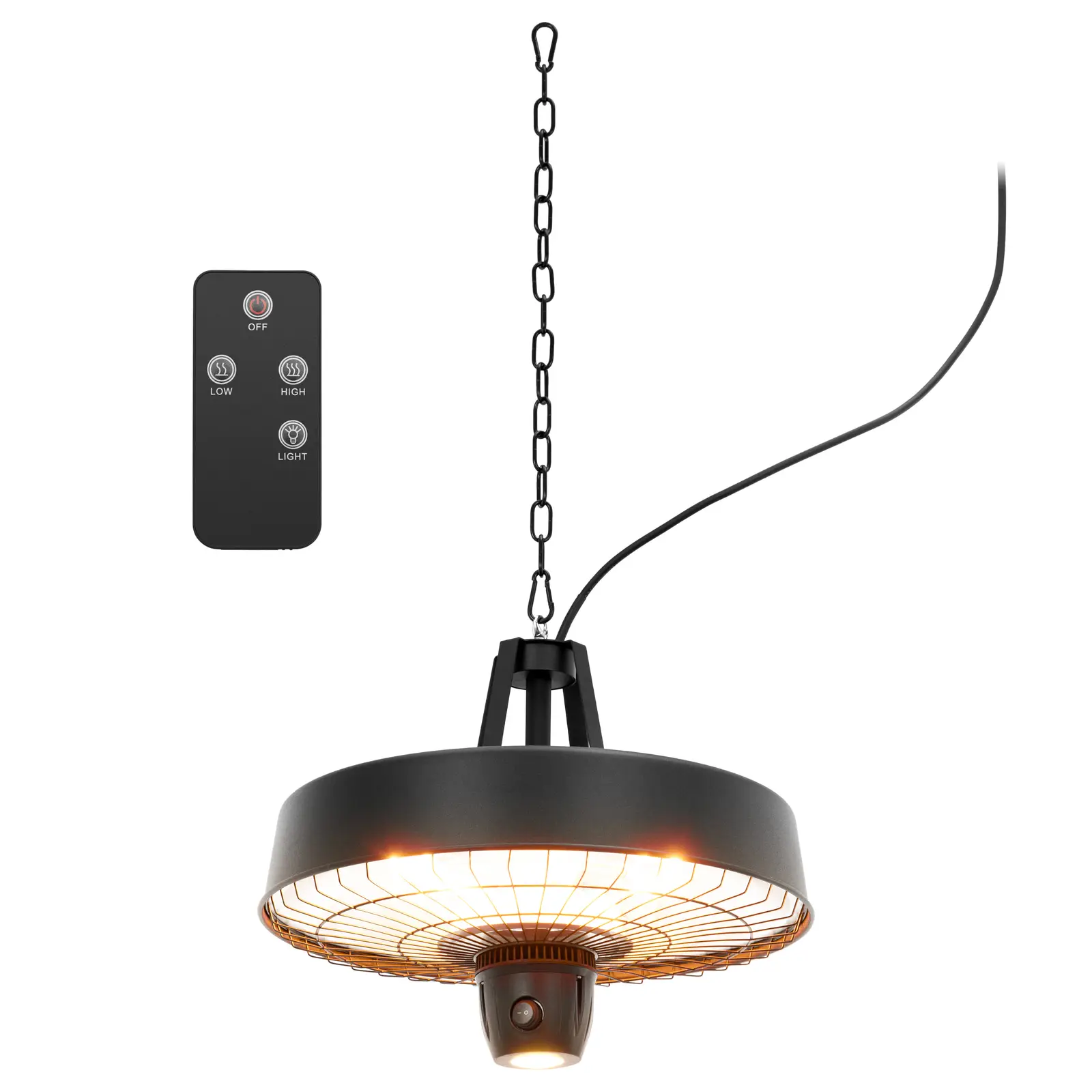 Pidennä kesäkautta Uniprodon infrapunakattolämmittimellä! Tehokas säteilylämmitin takaa kodikkaat lämpötilat lyhyessä ajassa säilytystilaa viemättä. Siksi se sopii erinomaisesti ahtaille terasseille ja katukahviloihin, jolloin voit palvella asiakkaitasi ulkona myös kylmempinä kuukausina! Kattolämmitin yhdistää 2100 W:n tehon ja infrapunatekniikan luotettavuuteen. Näin luot viihtyisää lämpöä ja miellyttävän valaistuksen pimeisiin iltoihin myös viileinä vuodenaikoina. Teollisen muotoilun moderni ilme erottuu muista säteilylämmittimistä ja luo tunnelmallisen ilmapiirin. Alumiinirunko korostaa lämmittimen selkeää ulkomuotoa ja takaa samalla pitkän käyttöiän. Voit kiinnittää säteilylämmittimen kattoon tilaa säästävästi sen 54 cm pitkällä ketjulla. Tämän jälkeen voit liittää sen verkkovirtaan 1,90 m pitkällä virtajohdolla. Kaukosäätimen avulla lämmitin on myös helppo kytkeä päälle ja pois päältä. Käytön aikana suojaritilä estää tahattoman kosketuksen lämmityselementtiin ja ehkäisee näin onnettomuuksia. Terassilämmitin suojausluokalla IP44 on suojattu pölyltä ja roiskevedeltä, joten voit käyttää sitä ongelmitta kaikenlaisissa sääolosuhteissa.