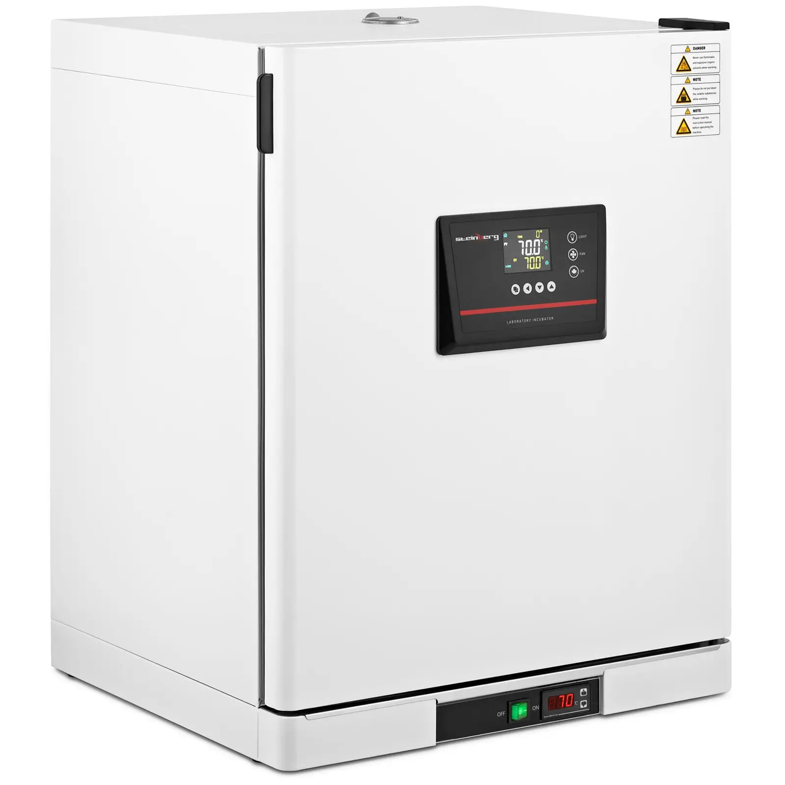 Mikro-organismeilla, soluviljelmillä ja itiöillä on yksi yhteinen piirre: ne tarvitsevat vakiolämpötiloja kehittyäkseen optimaalisesti laboratoriossa. Tämän varmistaa Steinberg Systemsin inkubaattori SBS-LI-125. Optimaalisen lämpötilan hallinnan ja kestävän kotelon ansiosta se on luotettava työkalu jokaisessa lääketieteen, elintarvikeanalytiikan tai biologian laboratoriossa, jossa sitä voidaan käyttää helposti ja tehokkaasti. Inkubaattori varmistaa optimaaliset olosuhteet viljelmille PID-ohjelmiensa avulla, jotka voidaan asettaa kosketusohjauspaneelilta ja tarkistaa LCD-näytöltä. Se tarjoaa toimintoja, kuten ajan- ja lämpötilan säädön, ylikuumenemissuojan, ajastimen ja automaattisen sammutuksen. Lämpötilan säädin ylläpitää tarkasti asetettua, maksimissaan 70 °C lämpötilaa ajastimeen asetetun ajan 0 – 9 999 min. Anturit tarkistavat lämpötilan jatkuvasti ja korjaavat automaattisesti mahdolliset poikkeamat. Tämän seurauksena inkubaattori ylläpitää lämpötilaa ± 1. 5 °C:n tarkkuudella. Lämpötila jakautuu sisätilassa erittäin tasaisesti kiertoilman avulla, mikä estää lämpötilamuutokset. Lämpötilan voi rajoittaa kätevästi digitaaliselta näytöltä. Lisäksi laitteessa on UV-valolla toimiva sterilisaatiotoiminto. Ovi tilavaan sisätilaan on ilmatiivistetty silikonikumitiivisteellä ja varmistaa siten minimaalisen lämpötilahäviön viljelmien tai bakteerien inkuboinnin aikana. Lisäksi karkaistu lasi-ikkuna on lämmönkestävä ja se mahdollistaa tarvittaessa inkuboinnin seuraamista. Sisus on valmistettu ruostumattomasta teräksestä ja on siksi erittäin helppohoitoinen ja kestää hyvin korroosiota ja muita ympäristövaikutuksia. Inkubaattori on 125 l tilavuudellaan erittäin tilava. Säädettävän korkeutensa ansiosta sisäosaa voidaan käyttää optimaalisesti ja mukauttaa eri näytteille tai viljelmille sopivaksi. Kotelo on valmistettu tukevasta, valssatusta teräksestä, joka on varustettu sähköstaattisella pinnoitteella tehden ulkokuoresta erittäin kestävän. Tämä tarkoittaa, että inkubointikaappi kestää myös raskaita kuormia ja se voidaan puhdistaa vaivattomasti.