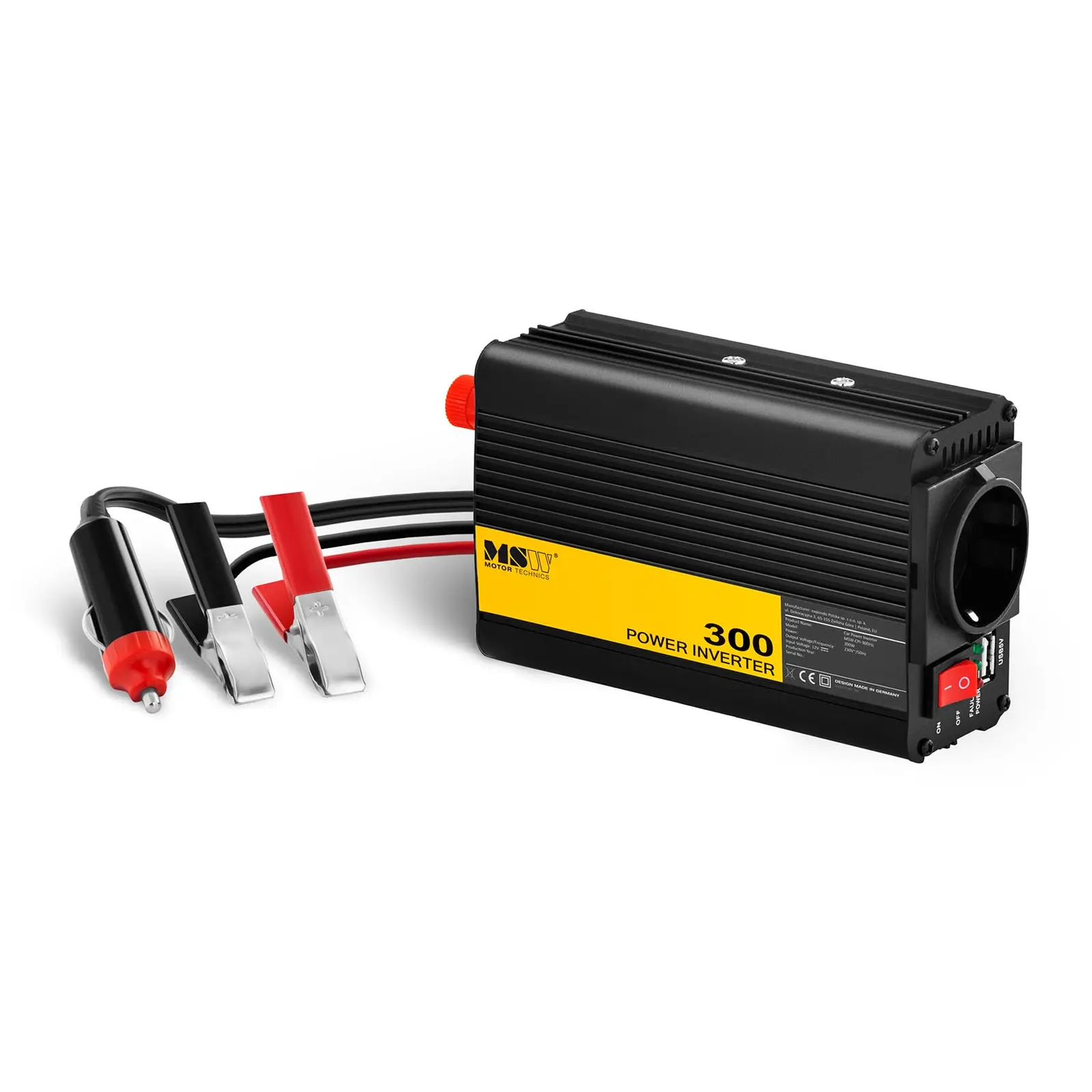 MSW:n invertteri MSW-CPI-300PSL on ammattimainen laite tasavirran muuntamiseksi vaihtovirraksi modifioidun siniaallon avulla. Tasavirran tuottajat, kuten auton akut ja aurinkokennot, voidaan kiinnittää invertteriin vaihtovirran toimittamiseksi erityisesti suurille sähkölaitteille. Ihanteellinen liikkuvaan käyttöön ajoneuvoissa, lomalla tai leirintäalueilla. Invertteri tuottaa 100 % puhdasta siniaaltoa, joka muuntaa tasavirran vaihtovirraksi. Monet modernit laitteet, kuten kannettavat tietokoneet, tabletit ja älypuhelimet, mutta myös herkät mittalaitteet tai lääketieteelliset laitteet vaativat virranlähteenä puhdasta siniaaltoa toimiakseen moitteettomasti. Erittäin suuren, yli 90 % olevan tehokkuutensa ansiosta virranmuunnin tuottaa riittävästi virtaa erilaisille, jopa 300 watin käyttötehon vaativille sähkölaitteille. Näin invertteri tuottaa riittävästi virtaa kodinkoneille- ja viihdelaitteille sekä sähkötyökaluille. Muuntaja tarjoaa täten lähes universaalin ratkaisun vaihtovirtalähteeksi. Invertteri on varustettu modernilla 5 voltin ja 2,4 ampeerin USB-portilla, joka mahdollistaa erilaisten sähkölaitteiden lataamisen nopeasti. Erityisesti modernit työ- ja vapaa-ajan laitteet, kuten digikamerat tai älypuhelimet voidaan varustaa erittäin yksinkertaisesti ja mukavasti virralla UBS-portin ansiosta. Näin mobiili jännitemuunnin takaa aina nopean ja mutkattoman virranlähteen. MSW:n invertterillä saat erittäin turvallisen laitteen: virranmuunnin on varustettu kätevällä ylikuumenemissuojalla, suojalla yli- ja alijännitettä vastaan ja oikosulku- sekä ylikuormitussuojauksella. Automaattinen ja lämpötilasääteinen jäähdytin pitää laitteen käyttölämpötilan optimaalisena. Liikkuvana vaihtovirtalähteenä muunnin tarjoaa täten kaksi joustavaa ratkaisua yhdellä kertaa. Invertteri on varustettu virtaporttiin (tupakansytytin) sopivalla adapterilla, joten se voidaan yhdistää ajoneuvoon ilman, että vaaditaan suora liitäntä auton akkuun. Settiin sisältyy kuitenkin myös akkujohto puristimella, invertterin liittämiseksi suoraan akkuun. Liikkuvana vaihtovirtalähteenä muunnin tarjoaa täten kaksi joustavaa ratkaisua yhdellä kertaa. Jotta käynnissä olevaa virransyöttöä voidaan vaivatta tarkkailla, on virranmuuntimessa erilaisia LED-indikaattoreita ilmaisemaan vallitseva tila: Aktiivinen virransyöttö osoittaa, että ladattava sähkölaite on kiinnitetty muuntimeen asianmukaisesti, aktiivinen virranotto sen, että yhteys virtalähteeseen on kunnossa ja virheilmoitus näyttää kaikki häiriöt. Muunnin on suunniteltu täyttämään kaikki suojaluokan II turvavaatimukset. Siinä on kaksinkertainen eristys ja täten kaksinkertainen suoja vaurioita ja sähköiskuja vastaan. Invertteri erottuu edukseen kompakteilla mitoillaan ja kevyellä painollaan. Ennen kaikkea lomalla, työmatkoilla tai leirintäalueella tämä tilaasäästävä, matkalaukkuun mahtuva ja täten helposti mukaanotettava muunnin on erittäin kätevä. Täten joustava vaihtovirran käyttö on turvattu kaikkialla.