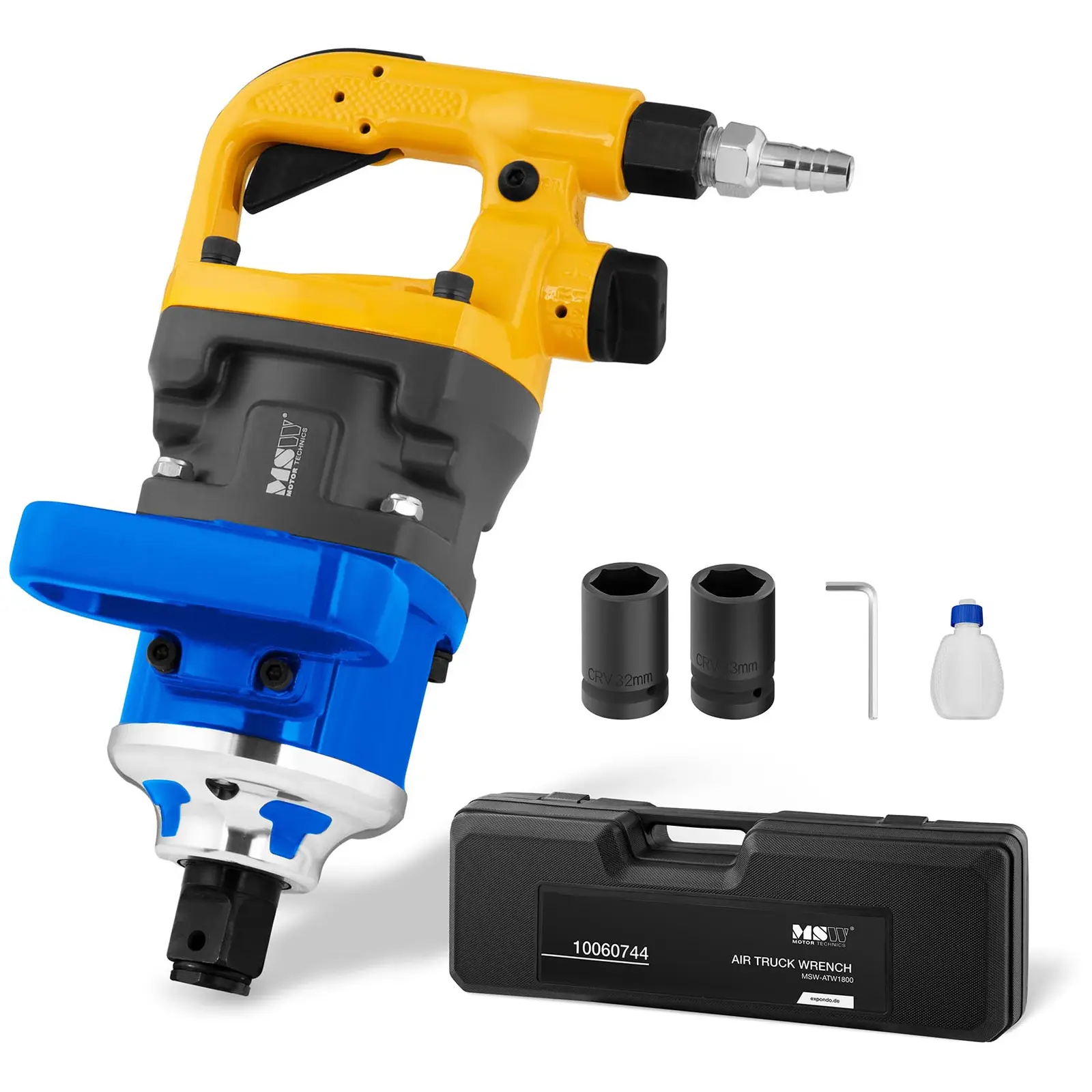 Rekoissa, traktoreissa ja linja-autoissa rakenneosat ja ruuvit ovat isompia ja täten vaikeammin irrotettavia kuin henkilöautoissa. MSW:n iskevä mutterinväännin MSW-ATW1800 tarjoaa sinulle tehokkaan työkalun, jolla ruuvaat isot ruuvit irti voimakkaasti ja luotettavasti. Täten tämä mutterinväännin on välttämätön apu korjaamoissa, linja-autojen huoltohalleissa sekä maatalousyrityksissä. Teollisuuslaatua oleva iskevä mutterinväännin työskentelee 1 800 Nm iskuteholla ja saa näin jokaisen ruuvin liikkumaan. Kiinteää kahvaa tukee 4 800 r/min oleva kierrosnopeus. Näin ruuvien irrottaminen sujuu vaivattomasti. Iskevä mutterinväännin on tehokkuudestaan huolimatta erittäin tasapainoinen. Sen kaksoisvasaramekanismi vähentää tärinää, minkä vuoksi myös pitkäaikainen työskentely onnistuu vaivattomasti. Laitteen pitkäikäisyyden takaamiseksi sen kotelo on valmistettu vankasta alumiinivalusta, joten jopa raskastyö sujuu laitteella turvallisesti. Ruuvinväännössä vääntösuunnan vaihdon lisäksi myös vääntötehokkuus voidaan valita pienen, keskisuuren ja voimakkaan väliltä helposti. Näin saavutat optimaalisen vääntötuloksen kohteesta riippumatta. Sujuvan työskentelyn takaamiseksi nopeuden ja vääntösuunnan säätimet on sijoitettu kätevään paikkaan. Paineilmatyökalu on varustettu ergonomisella, pehmustetulla kahvalla, jonka sivusta paineilma poistuu eikä se täten häiritse työskentelyä. Toisen sivulla sijaitsevan kahvan ansiosta voit ohjata konetta aina turvallisesti ja mukavasti ja kohdistaa sen tarkasti ruuviin. Vankka, 1 tuuman neliöasema turvaa optimaalisen voimansiirron ruuviavaimen hylsyyn. Mutterinvääntimeen kuuluva varustus toimitetaan kätevässä kantosalkussa. Saat ½ tuuman paineilma-adapterin, kaksi hylsyä (32, 33), kuusiokoloavaimen, neljä kahvaan kuuluvaa ruuvia, neljä jousta ja yhden öljyastian.