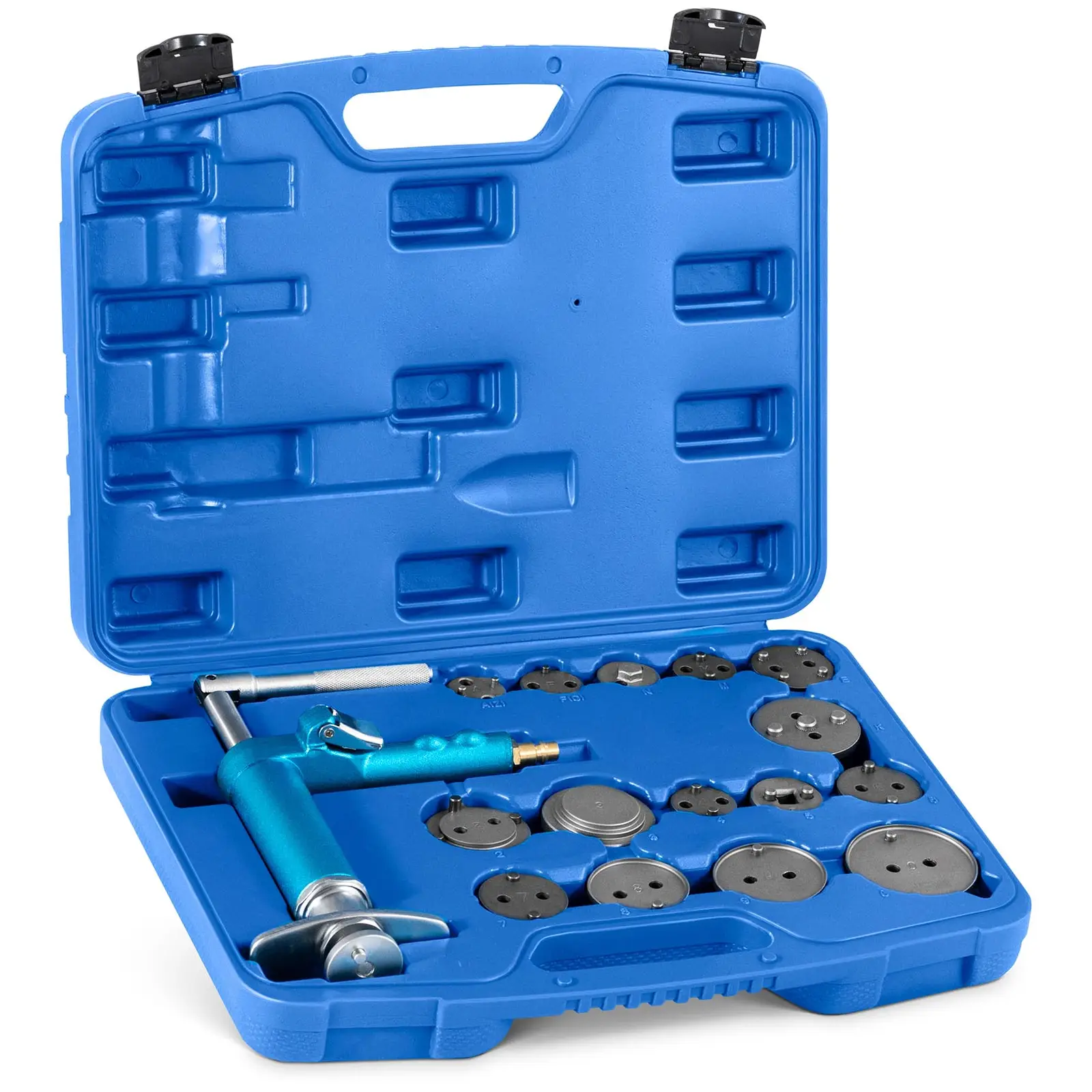 MSW:n jarrumännän palautin on ammattikäyttöön tarkoitettu työkalusarja eri automerkkien jarrumäntien ilmanpaine-avusteiseen nollaukseen. Sekä etu- että takapyöräjarruja voidaan käsitellä tällä sarjalla. Käsivipu ja 15 eri adapteria mahdollistavat vaivattoman työn erilaisten jarrumallien parissa. Autotyökalu sopii yhtä hyvin ammattikorjaamoihin kuin innokkaille autoharrastajillekin. Jarrusatulan männän palautustyökalu tarjoaa useita eri muotoisia ja kokoisia adaptereita, joiden avulla työkalu on sopiva kaikille yleisille jarrumalleille. Adapterit on merkitty kirjaimilla ja numeroilla, jotta löydät helposti oikean osan jokaiseen ajoneuvoon. Työkalusarja sopii seuraaville merkeille: Alfa Romeo, Audi, Citroën, Fiat, Ford, GM Honda, Jaguar, Lancia, Land Rover, Mazda, Nissan, Peugeot, Renault, Rover, Saab, Seat, Subaru, Toyota, Volvo, VW ja Opel. Kiertotoiminnolla varustettu käsivipu takaa vahvan ja luotettavan liitoksen yksittäisiin adaptereihin käytön aikana. Se on suunniteltu sekä vasempaan että oikeaan kiertoon – käyttöalueen ja henkilökohtaisen työskentelytavan mukaan. Männän palautinta käytetään pneumaattisesti ja se toimii 5 – 8 baarin paineessa. Tuloksena aikaansaatu voima välittyy luotettavasti jarrumäntiin – vastaava mäntä voidaan siten palauttaa vaivattomasti ja vähällä vaivalla. Kaikki tämän jarrumäntätyökalusarjan osat on valmistettu hiiliteräksestä, joten ne ovat ihanteellisia ajoneuvojen jarrujen paineintensiiviseen huoltoon. Materiaalit ovat erittäin lujatekoisia ja kestäviä ja niillä on matala loviherkkyys. Yksittäiset työkalun osat pysyvät täten pitkään ehjinä ja takaavat pitkän käyttöiän sekä kestävyyden. Koko työkalusarja toimitetaan käytännöllisessä muovisalkussa, jossa jokaisella työkalun osalla on oma syvennys ja ne voidaan siksi varastoida optimaalisesti. Ergonomisesti muotoisen kantokahvan ansiosta säilytyssalkkua voidaan kantaa mukavasti.