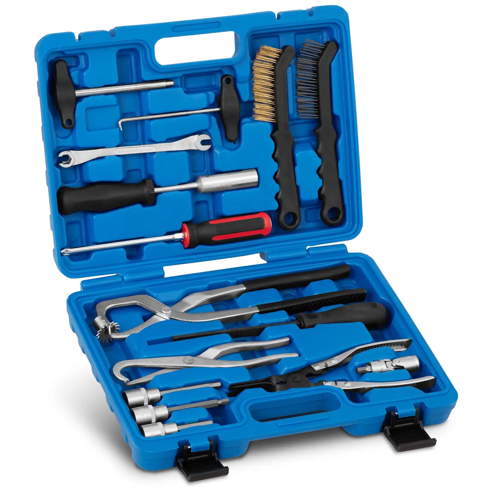 MSW:n jarrutyökalusarjan avulla voit palauttaa rumpu- ja levyjarrut kuntoon. Voit purkaa ja koota jarrut lähes kaikkiin ajoneuvoihin tällä kattavalla sarjalla. Yleiskäyttöinen jarrurumpu- ja jarrulevyn työkalusarja sisältää kaikki jarrujen puhdistamiseen ja huoltoon tarvittavat osat, mukaan lukien 2 jarruharjaa. Mukana toimitettavilla jarrujousipihdeillä voit helposti asentaa palautus- ja jarrukengän jouset. Erilaiset lisäkärjet laajentavat sarjan käyttökohteita ja mahdollistavat erilaisten autojen työstämisen. Jarrurummun ja jarrulevyn työkalusarja on valmistettu kestävästä teräksestä. Materiaali on kulutusta kestävä ja tekee vaikutuksen pitkällä käyttöiällään. Kun työkalu ei ole käytössä, voit asettaa kaikki osat siististi ja varmasti kuljetuskotelon sopiviin syvennyksiin. Näin sinulla on aina työkalut järjestyksessä ja kaikki on saatavilla heti, kun niitä tarvitaan.