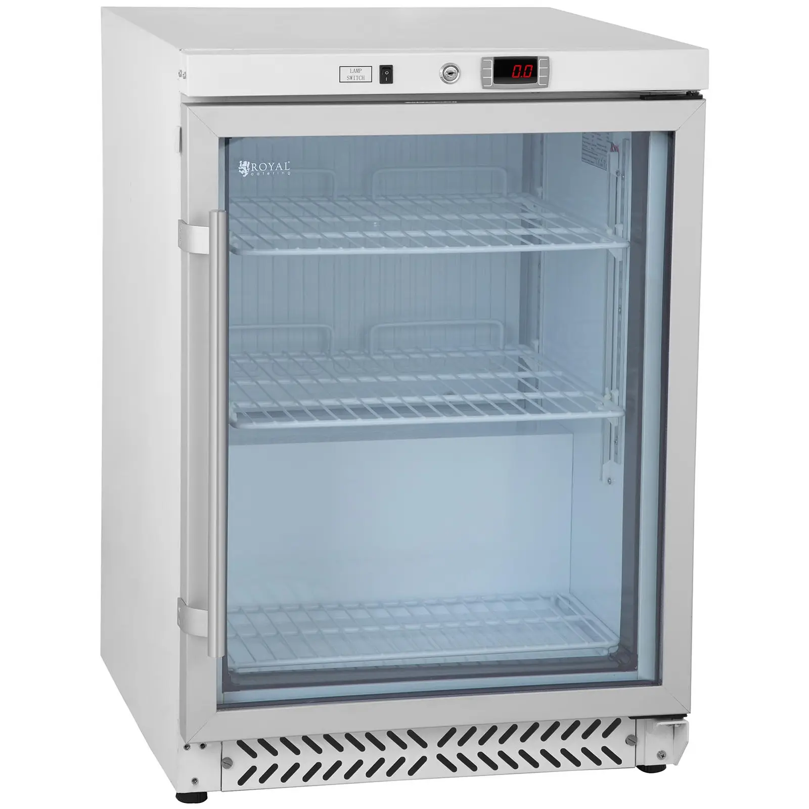 Tarjoile pikaruokalasi, hotellibaarisi tai noutopöytäsi asiakkaille kylmiä juomia, jotka ovat näyttävästi esillä lasiovellisessa juomakaapissa RCGK-W200. Lasioven ja LED-valaistuksen ansiosta juomatölkit ja -pullot ovat selkeästi näkyvillä ja houkuttelevat sammuttamaan janon kuuman tai pitkän päivän päätteeksi. Juomakaapin tilavuus on 170 litraa, mikä riittää mainiosti mitä erilaisimpien juomien säilyttämiseen viileinä ja nauttimisvalmiina. Kaapissa on kolme hyllyä, joilla on tilaa vaikkapa 120 tölkille. Hyllyt voi sijoittaa eri korkeuksille, jolloin kaappiin mahtuu vaivatta erikokoisia pulloja ja tölkkejä. Näin voit käyttää juomakaapin sisätilan tehokkaasti. Juomakaapin jäähdytykseen käytetään kylmäainetta R600a, jolla on erinomainen termodynaaminen suorituskyky ja suuri energiatehokkuus. Tällä ympäristöystävällisellä kylmäaineella ei ole haitallisia vaikutuksia otsonikerrokseen eikä se edistä kasvihuoneilmiötä. Tämän kylmälaitteen 180 W:n Zanussi-kompressori tuottaa halutun jäähdytyslämpötilan nopeasti. Kompressori vakuuttaa paitsi hiljaisella käyttöäänellään myös pitkäikäisyydellään. Digitaalinen termostaatti, jonka voit säätää ohjauspaneelista käsin välille nolla ja kahdeksan celsiusastetta, pitää lämpötilan tarkasti asetusta vastaavana. Näin voit mukauttaa jäähdytyksen optimaalisesti haluamallesi tasolle. Ohjauspaneelin avulla voit myös käyttää laitteen sulatustoimintoa, joka estää juomakaapin jäätymisen. LED-valaistuksen ansiosta juomakaappi sulautuu hämärässäkin ympäristössä tai öiseen aikaan kauniisti kaikkiin sisustustyyleihin. Lisäksi juomat näkyvät hyvin kaapin ulkopuolella vallitsevasta valaistustilanteesta riippumatta ja asiakkaasi voivat tehdä valintansa kätevästi jo ennen kaapin avaamista. LED-valot säästävät sähköä, ovat erityisen pitkäikäisiä ja vähentävät näin myös kustannuksia. Kaksoislasitettu ovi avautuu ja sulkeutuu mukavasti siinä olevalla kahvalla. Kaksinkertainen karkaistu lasi on erittäin kestävää ja pitää kylmän luotettavasti kaapin sisällä. Juomakaapin ovessa on lukko, jolla voit sulkea kaapin ja estää asiattomia pääsemästä käsiksi sen sisältöön. Jos sattuisit hävittämään oven avaimen, toimitukseen kuuluu myös vara-avain. Juomakaapin korkealuokkainen runko on jauhepinnoitettua terästä. Se on kestävää ja pitkäikäistä ja sen pinta on helppo puhdistaa. Juomakaapissa on kaksi pyörää ja kaksi säädettävää liukumatonta kumijalkaa. Niiden ansiosta sen siirtely ja jalkojen säätö lattian epätasaisuuksiin on helppoa.