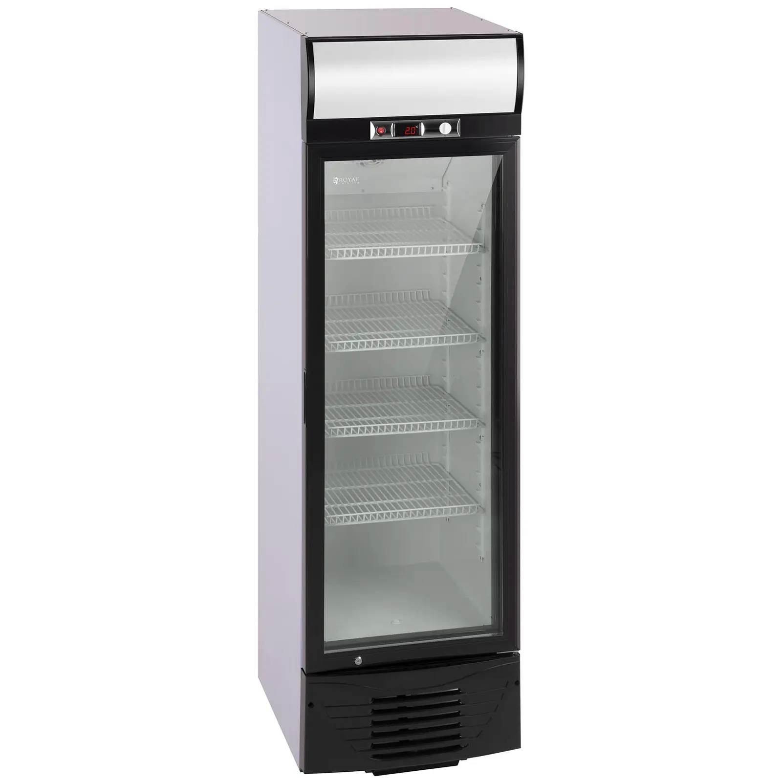 Esillä ja käsillä nautittavaksi: Tarjoile ravintolasi, hotellibaarisi tai kioskisi asiakkaille kylmiä juomia, jotka ovat näyttävästi esillä lasiovellisessa juomakaapissa RCGK-W278. Lasioven ja LED-valaistuksen ansiosta juomatölkit ja -pullot ovat selkeästi näkyvillä ja houkuttelevat sammuttamaan janon kuuman tai pitkän päivän päätteeksi. Juomakaappiin integroidun kiertoilmajäähdytyksen tuuletin ja tehokas 210 W:n kompressori takaavat ilman tasaisen jakautumisen kaapin sisällä. Tässä jäähdytystavassa kylmä ilma kiertää kaapin sisällä jäähdyttäen kaikki pullot tasaisesti. Samalla kuitenkin lasiovet pysyvät vapaina huurteesta. Kompressori on erityisen energiatehokas mutta kuitenkin hiljainen ja sopii siten optimaalisesti sisätiloihin. Juomakaapin tilavuus on 278 litraa, mikä riittää mainiosti mitä erilaisimpien juomien säilyttämiseen viileinä ja nauttimisvalmiina. Kaapissa on neljä hyllyä, joilla on tilaa vaikkapa 198 tölkille. Hyllyt voi sijoittaa eri korkeuksille, jolloin kaappiin mahtuu vaivatta erikokoisia pulloja ja tölkkejä. Näin voit aina hyödyntää juomakaapin sisätilan mahdollisimman tehokkaasti. Digitaalinen termostaatti, jonka voit säätää ohjauspaneelista käsin kahden ja kahdeksan celsiusasteen välille, pitää lämpötilan tarkasti asetusta vastaavana. Näin voit mukauttaa asiakkaille tarjottavien juomien jäähdytyksen optimaalisesti haluamallesi tasolle. Lämpötilan näkee aina selkeästi LED-näytöltä. Juomakaapin jäähdytykseen käytetään kylmäainetta R600a, jolla on erinomainen termodynaaminen suorituskyky ja suuri energiatehokkuus. Tällä ympäristöystävällisellä kylmäaineella ei ole haitallisia vaikutuksia otsonikerrokseen eikä se edistä kasvihuoneilmiötä. Lisäksi tällä kylmäaineella toimiviin laitteisiin on mahdollista asentaa pienemmät lämmönvaihtimet, mikä osaltaan auttaa säästämään energiaa. Isobutaanikaasu sopii myös hyvin yhteen muiden jäähdytyskomponenttien kanssa. LED-valaistuksen ansiosta juomakaappi sulautuu hämärässäkin ympäristössä tai öiseen aikaan kauniisti kaikkiin sisustustyyleihin. Lisäksi juomat näkyvät hyvin kaapin ulkopuolella vallitsevasta valaistustilanteesta riippumatta ja valinnan teko helpottuu. Lisäetu on LED-valojen huomattavasti pienempi sähkönkulutus tavanomaisiin valaisimiin verrattuna. Oven yläpuolella on tyhjä pinta, johon voit kiinnittää vaikkapa mainoksia. Pinnassa on miellyttävä taustavalaistus. Kaksoislasitettu mustakehyksinen veto-ovi on helppo ja mukava avata ja sulkea siinä olevasta kahvastaan. Kaksinkertainen karkaistu lasi on erittäin kestävää ja pitää kylmän luotettavasti kaapin sisällä. Juomakaapin ovessa on lukko, jolla voit sulkea kaapin ja estää asiattomia pääsemästä käsiksi sen sisältöön. Jos sattuisit hävittämään oven avaimen, toimitukseen kuuluu myös vara-avain. Juomakaapin korkealuokkainen runko on jauhepinnoitettua terästä. Tämä materiaali on erityisen kestävä ja pitkäikäinen. Sen sileä pinta on helppo puhdistaa eikä ole herkkä ulkoisille vaikutuksille. Kaappi pysyy tukevasti paikoillaan säädettävien kumijalkojensa varassa. Voit mukauttaa ne kaikenlaisiin lattioihin.