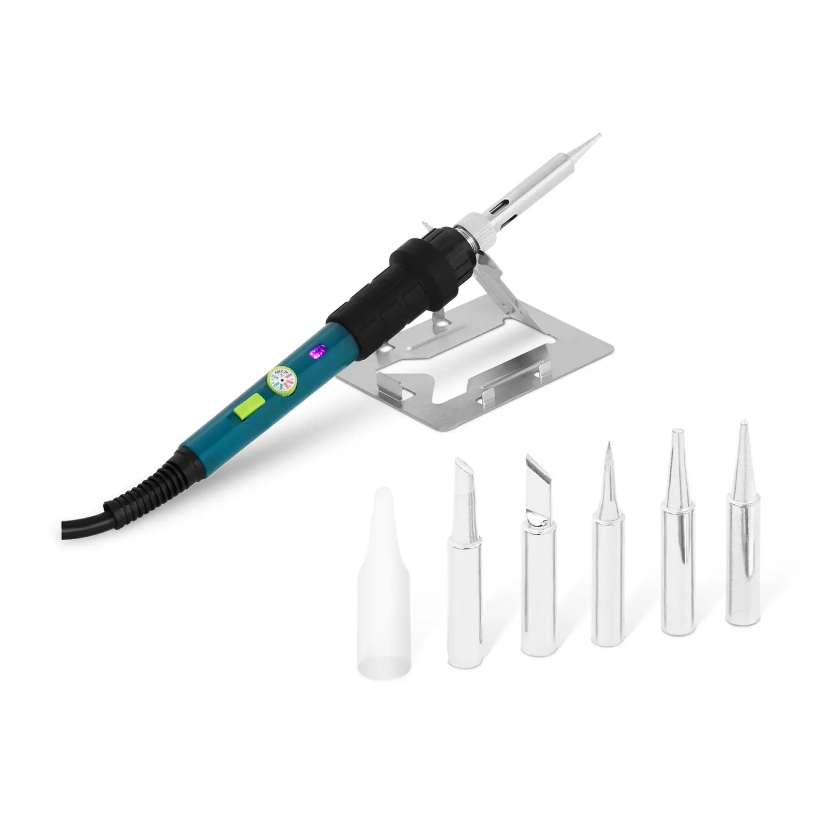 Juotoskolviin S-LS-25 voidaan nopeasti tarttua ja se on käyttövalmis, kun on jotain juotettavaa. Se täytyy kiinnittää ainoastaan pistorasiaan ja vain muutaman sekunnin kuluttua olet valmis suorittamaan erilaisia juotostöitä korjaamossa tai asiakkaiden luona. Juotoskolvi on erittäin laajasti sovellettavissa elektroniikan juottoon 220 – 480 °C lämpötilavälillään. Käyttö on helppoa ja tehokasta. Liukukytkimestä asetat juotoskolvin päälle, mikä osoitetaan LED-valolla. Voit säätää halutun lämpötilan vääntökytkimellä. Juotoskolvi kuumentaa juotoskärjen ja toimituksen sisältöön kuuluu lisäksi viisi juotoskärkeä erilaisiin juotostöihin. Juotoskärjen pidikkeessä olevat ilmaraot takaavat tasaisen lämmönjakautumisen. Kun haluat lopettaa juoton, voit asettaa juotoskolvin Y-muotoiseen pidikkeeseen. Ergonomisesti muotoiltu kumikahva parantaa käyttömukavuutta ja pysyy erittäin varmasti kädessä.