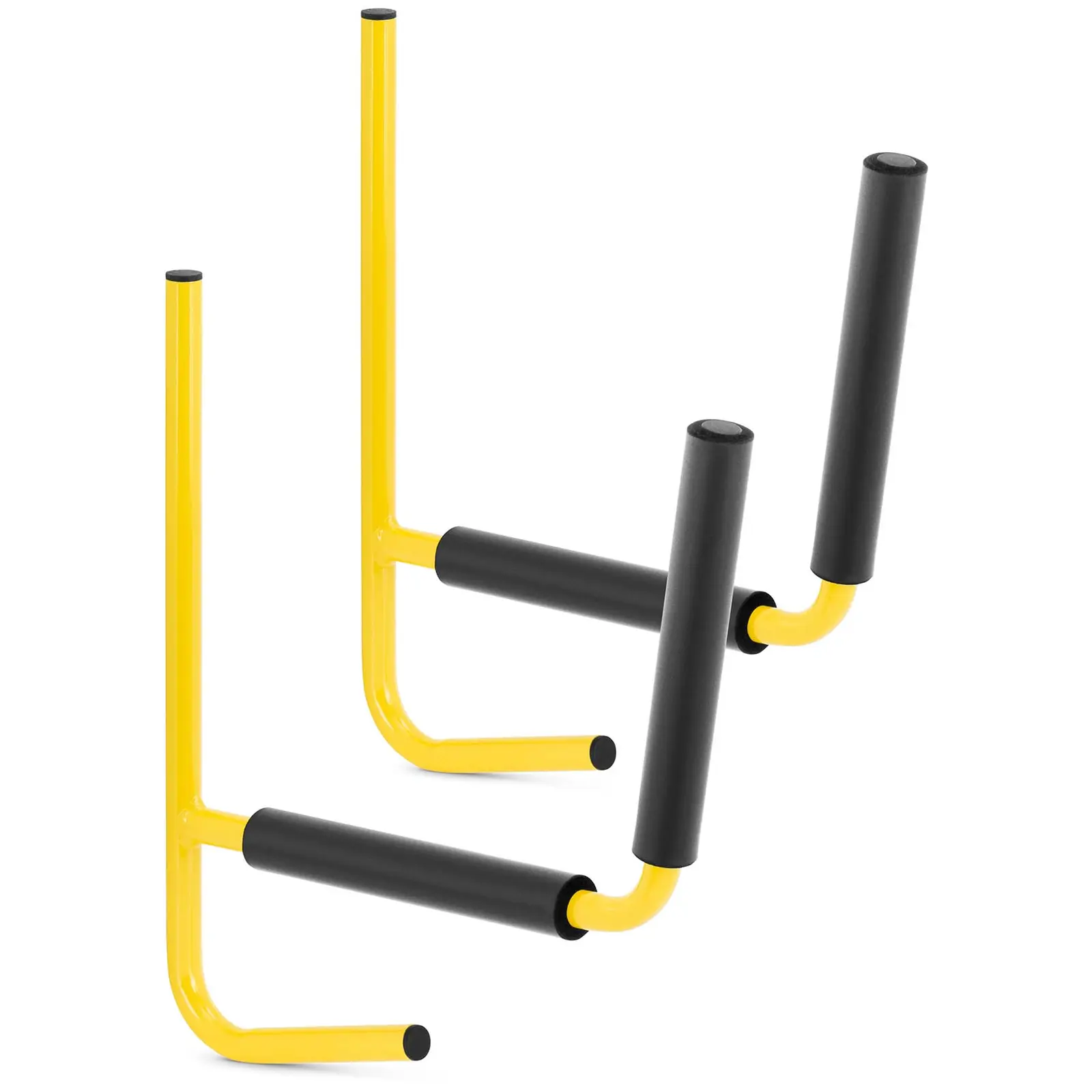 Luo tilaa: MSW-kajakin seinäteline on nopea asentaa ja kantaa helposti jopa 75 kg. Ripusta vain veneesi, surffilautasi tai polkupyöräsi seinälle ja varmista siten järjestys ja enemmän liikkumisvapautta asunnossasi tai autotallissasi mutkattomasti. Riippumatta siitä, mitä säilytät kajakinpitimessä: TPR-vaahtomuovista (termoplastisesta kumista) valmistettu laaja pehmuste suojaa säilytettävien tavaroiden pintaa naarmuilta. Voit kiinnittää näppärän, yleiskäyttöisen kajakkiseinätelineen vaihtelevalle etäisyydelle ja halutulle korkeudelle ideasi mukaan. Alahyllyssä on tilaa lisätarvikkeille, kuten airoille, tai voit käyttää sitä käytännöllisenä koukuna. Pulverimaalatusta teräksestä valmistettu kajakin seinäteline on erittäin ruosteenkestävä ja sillä on pitkä käyttöikä. Mukana tulee kaksi kajakkiseinätelinettä.