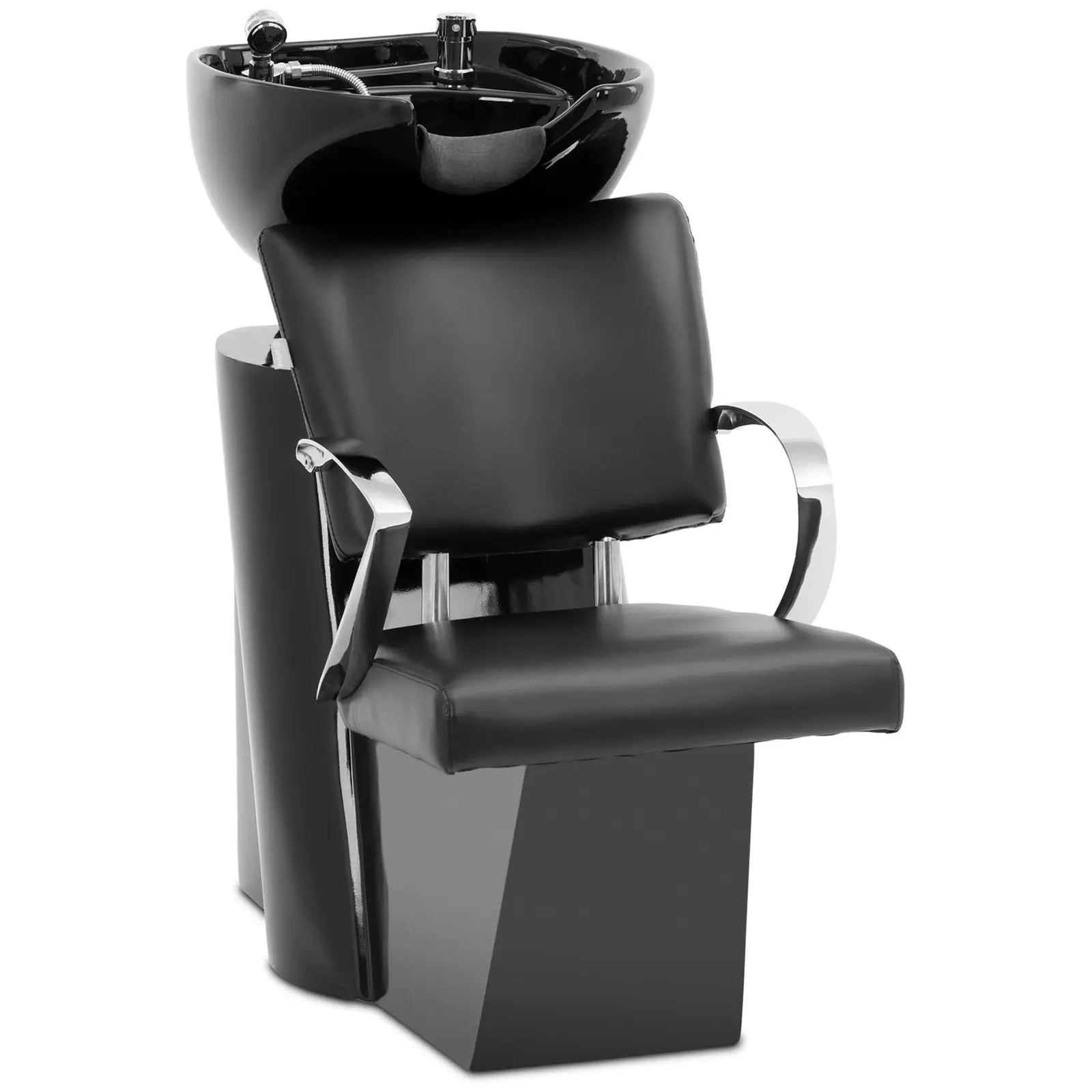 Physan kampaamotarvikkeiden vapaasti seisova hiustenpesuallas on ihanteellinen ratkaisu kampaamoosi! Asiakkaasi voivat nojata mukavasti taaksepäin tilavassa tuolissa, jossa on tyylikäs ja hygieeninen keinonahkapäällinen. Näin hiustenpesu onnistuu mukavasti ja tehokkaasti. Integroitu keraaminen pesuallas suihkulla ja sekoitushanalla sekä silikonisyvennys niskalle tekevät tästä mallista luotettavan ja houkuttelevan apuvälineen salonkiisi. Tukeva jalusta yhdistää pesualtaan ja kampaamotuolin tyylikkäästi ja houkuttelevasti yhteen pakettiin sekä tarjoaa luotettavaa vakautta. Kampaamo-pesuallas on pehmustettu mukavasti sekä istuimen että selkänojan osalta. Näin tarjoat asiakkaillesi maksimaalista mukavuutta koko hiustenpesun ajan. Tämä 600 x 505 mm:n kokoinen kampaamon pesutuoli tarjoaa runsaasti tilaa perusteelliseen hiustenpesuun. Altaaseen integroitu 470 mm pitkä suihkuletku voidaan vetää ulos tarpeidesi mukaan. Veden voimakkuutta voit puolestaan säätää kätevällä yhden käden sekoitushanalla. Pesuallas on kallistettavissa jopa 30°. Näin löydät optimaaliset ja yksilölliset asetukset jokaiselle asiakkaallesi. Parturi-pesupaikka on varustettu käytännöllisillä lisävarusteilla nopeaa mutta perusteellista työskentelyä varten: Altaan viemäriaukossa on hiussuodatin, jonka voit puhdistaa nopeasti ja helposti, ja joka estää viemärin tukkeutumisen. Aivan yhtä helposti voit myös irrottaa pesutuolin silikonisyvennyksen perusteellista puhdistusta varten.