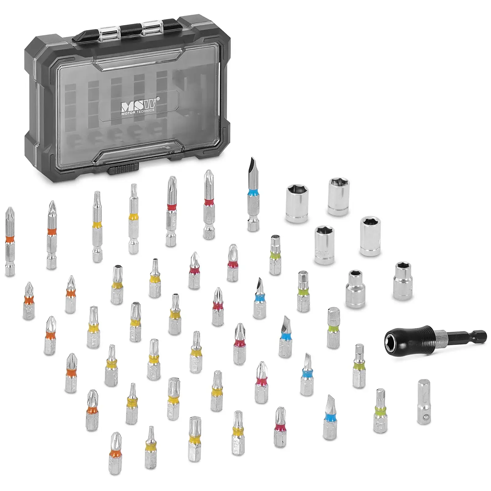 Täytyykö sinun tehdä monenlaisia töitä työpajassa tai yrityksessä? Vai oletko innokas harrastelija, joka haluaa olla täysin varustettu? MSW:n kärkisarjalla ACC-B2 sinulla on aina kaikki tarvittava käden ulottuvilla! Ei väliä mitä työtä, ei väliä mikä ruuvi! Kärkisarja tarjoaa oikean työkalun kaikkiin tilanteisiin! 42 eri osan ansiosta kärkisarja on valmistettu jokaiselle ruuville. Olipa kyseessä sitten risti, ura tai Torx koosta riippumatta. Löydät oikean työkalun kärkisarjasta. Tämä tekee tuotteesta erittäin joustavan ja sitä voidaan käyttää monilla eri alueilla sekä ammattimaisesti että yksityisesti. Tarjotun valikoiman ja nopean ja helpon vaihdon lisäksi kärkisarja on erityisen vakaa ja kestävä. Kromivanadiiniteräksestä valmistetut kärjet kestävät suuria kuormituksia ja niitä voidaan käyttää usein ilman työn laadun heikkenemistä. Kärkisarja toimitetaan käytännöllisessä kotelossa. Tämä ei ole kätevä ainoastaan siistiin säilytykseen, jotta osat löytyvät nopeasti ja helposti, vaan se takaa myös helpon ja kätevän kuljetuksen.