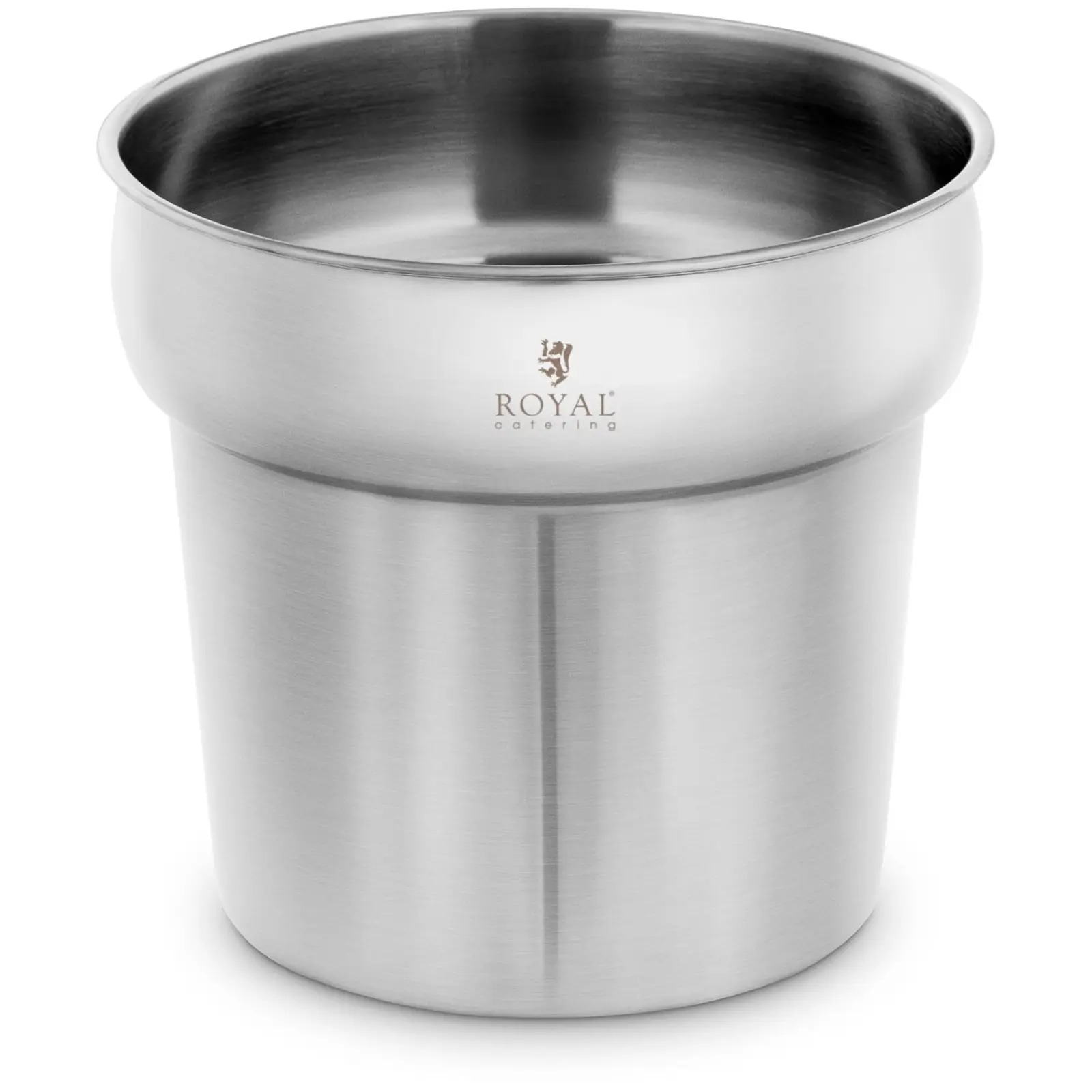 Tarvitsitpa sitten ylimääräisen astian kastikeannostelijaasi tai sisäkattilan haudutuspataasi – voit täydentää keittiötarvikkeitasi Royal Cateringin tilavalla kastikeastialla. Hygieenistä ruostumatonta terästä oleva astia on ihanteellinen ruokaloihin, ravintoloihin ja seisoviin pöytiin. Varusta buffettisi mahdollisimman helppohoitoiseksi ja tyylikkääksi. Kastikeastialla ja siihen sopivalla kastikepumpulla vieraasi ottavat itse dippejä ja kastikkeita mitä näppärimmin. 6,6 litran tilavuista astiaa täytyy täyttää vain harvoin. Näin ollen se pitää työmäärän alhaisena. Voit myös käyttää astiaa sisäkattilana haudutuspadoissa tai lämpöhauteissa. Molemmissa tapauksissa voit puhdistaa suuren aukon ansiosta ruostumattomasta teräksestä valmistetun astian käden käänteessä. Pienihuokoinen pinta on erittäin hygieeninen ja ruostumaton. Sopivan kastikepumpun löydät tuotenumerolla 10012703.