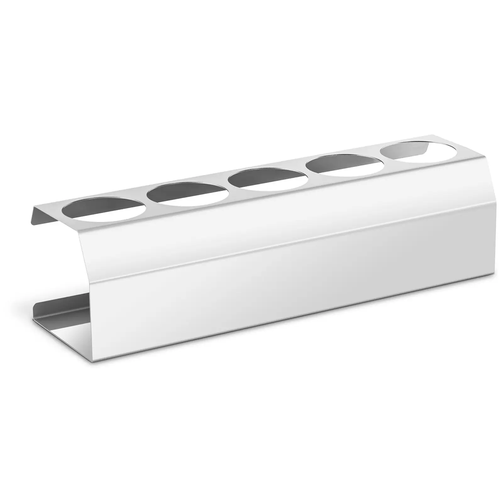 Missä se sinappi onkaan? Tietenkin Royal Cateringin, pikaruokatarvikkeiden asiantuntijan RC-SDD5-kastikkeenpitimessä. Käytännöllisellä ja tyylikkäällä pullotelineellä sinun tai asiakkaidesi ei enää tarvitse etsiä kastiketta pitkään. Käytätpä sitä sitten sinappi-, ketsuppi- tai majoneesipulloille, kastikkeet ovat aina käden ulottuvilla- ilman ärsyttävää etsimistä. Ruostumattomasta teräksestä valmistettu kastiketeline tekee vaikutuksen avoimella ja tyylikkäällä muotoilulla. Viisi syvennystä halkaisijaltaan enintään 73 mm:n pulloille, joissa kastikkeet asetetaan näytteille houkuttelevasti ja ovat näin selvästi näkyvissä. Olipa kyse ketsupista, sinappista tai majoneesista – asiakkaasi tunnistavat heti suosikkikastikkeensa ja voivat annostella kastikkeen ruokaansa muitta mutkitta. Selkeästi suunniteltu rakenne on erittäin vakaa ja takaa, että jopa täydet pullot pysyvät varmasti tukevasti paikoillaan. Jalusta-alue vakautetaan paitsi kastikepidikkeen omalla painolla myös asetettujen pullojen painolla. Käytetty ruostumaton teräs on erittäin helppohoitoinen. Ketsupista tai remouladista tehdyt kastikeroiskeet voidaan poistaa käden käänteessä. Buffetti- ja välipalatelineen sileä pinta jättää aina kiiltävän vaikutelman. Kastikkeenpidike osoittautuu tyylillä edulliseksi vaihtoehdoksi klassisille kiinteille kastikkeen annostelijoille.